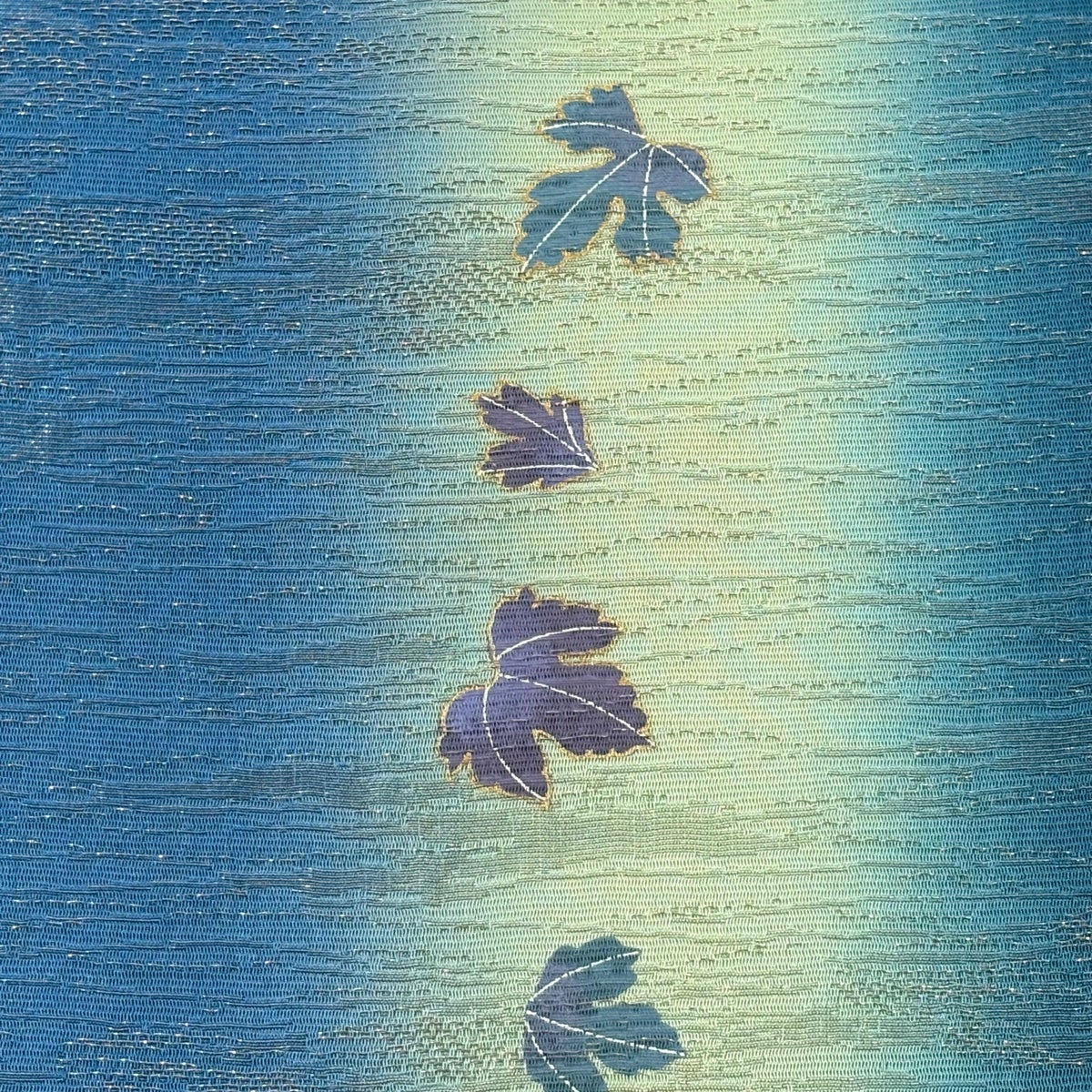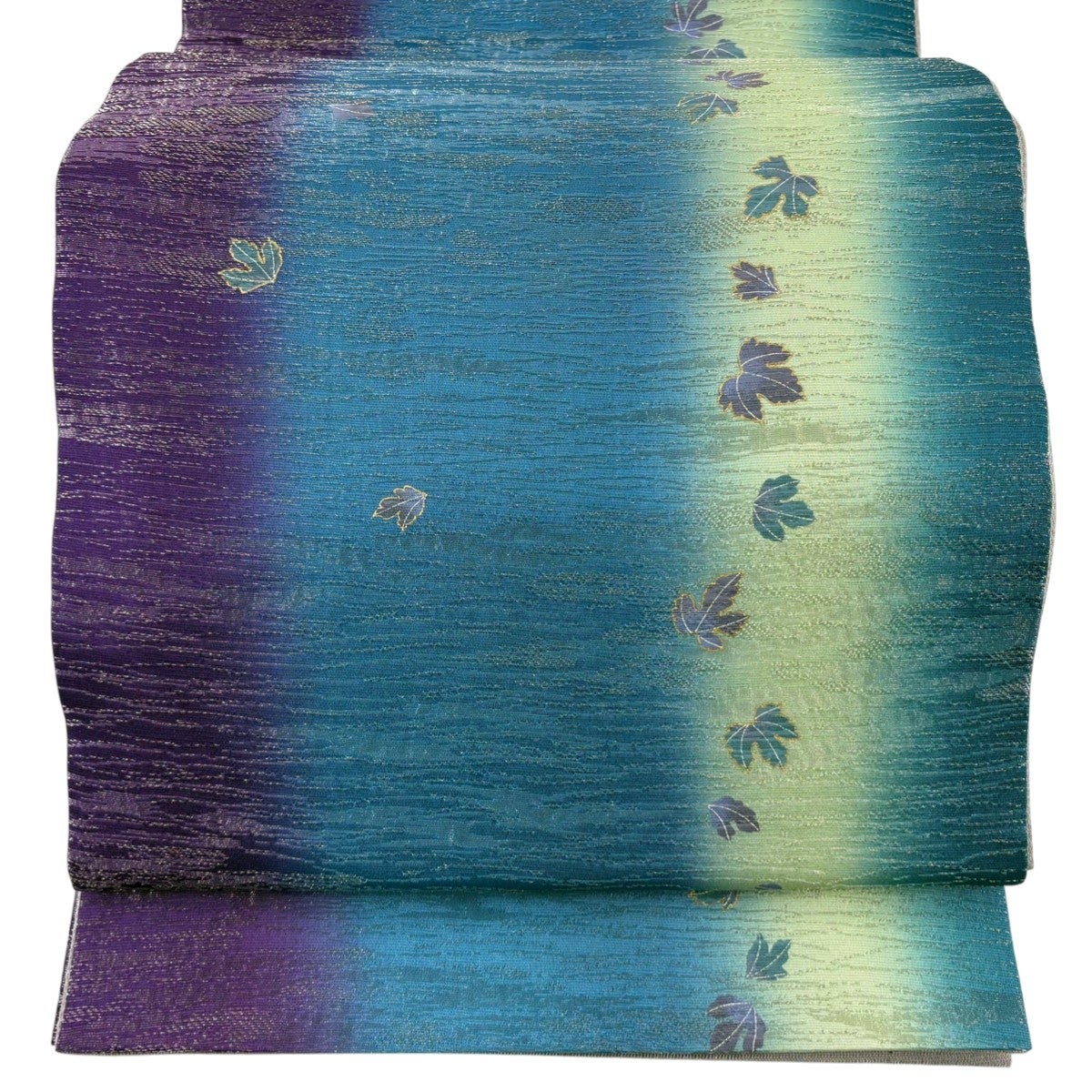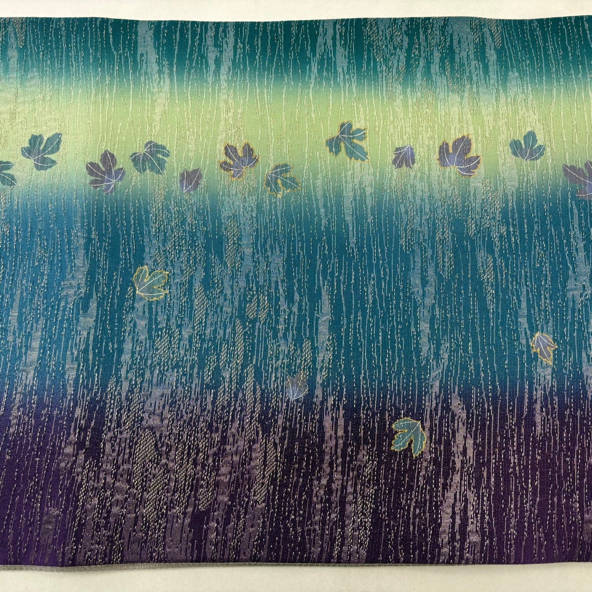 【美品】 袋帯 秀品 葉柄 霞 銀通し 金彩 青緑 お太鼓柄 正絹