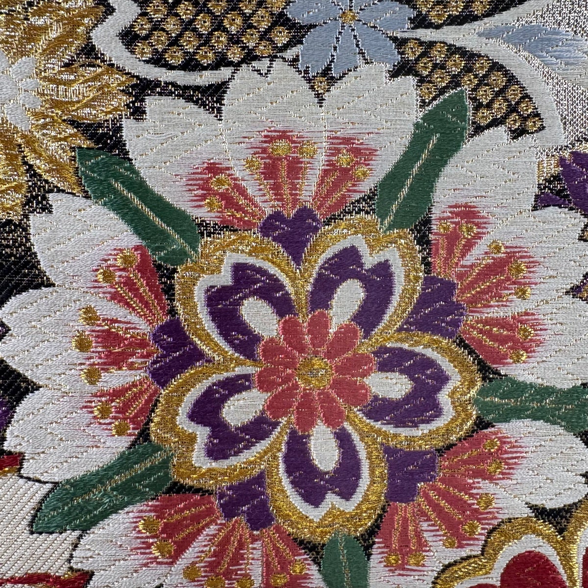 【美品】 袋帯 秀品 振袖向き 桜 華文 金糸 箔 黒 六通 正絹