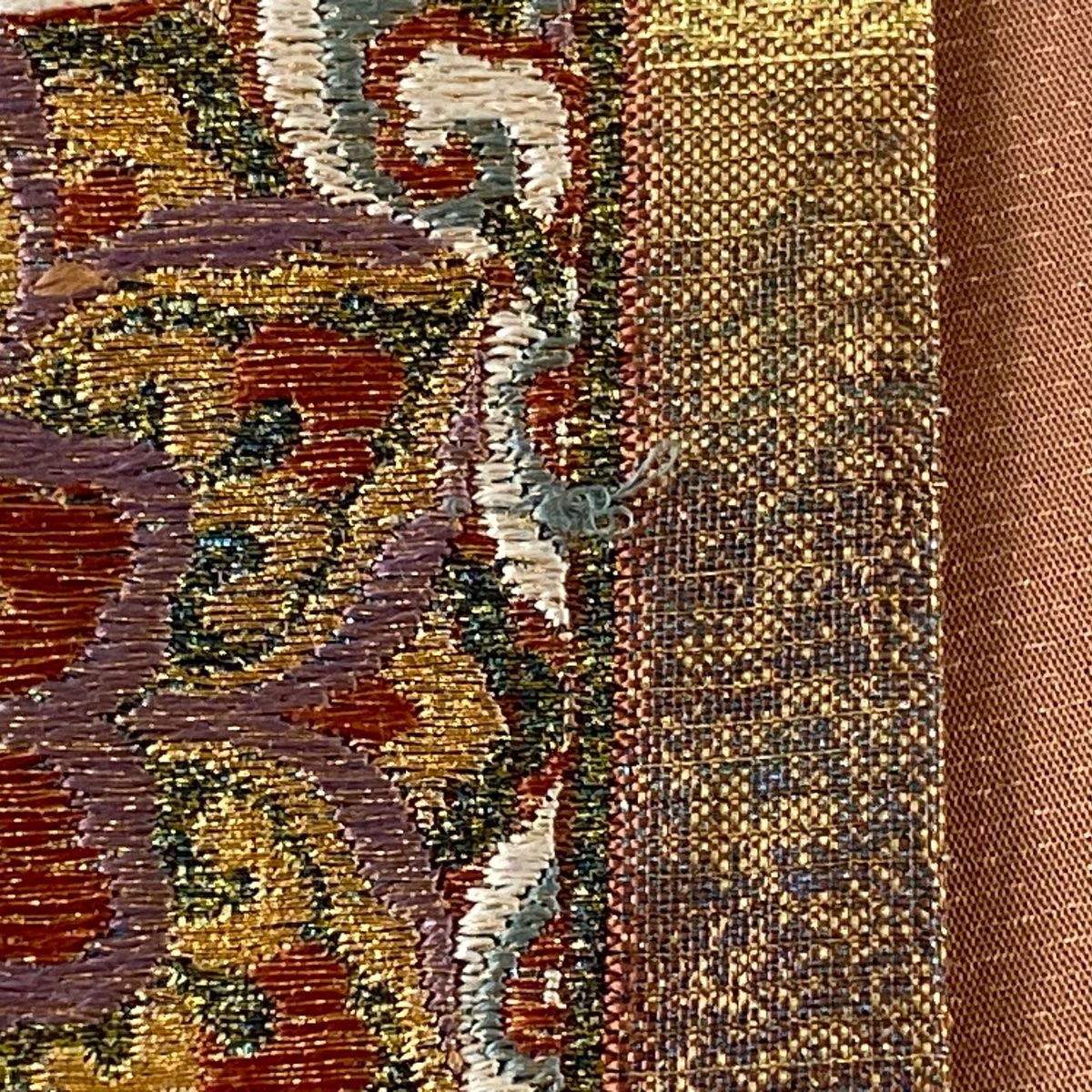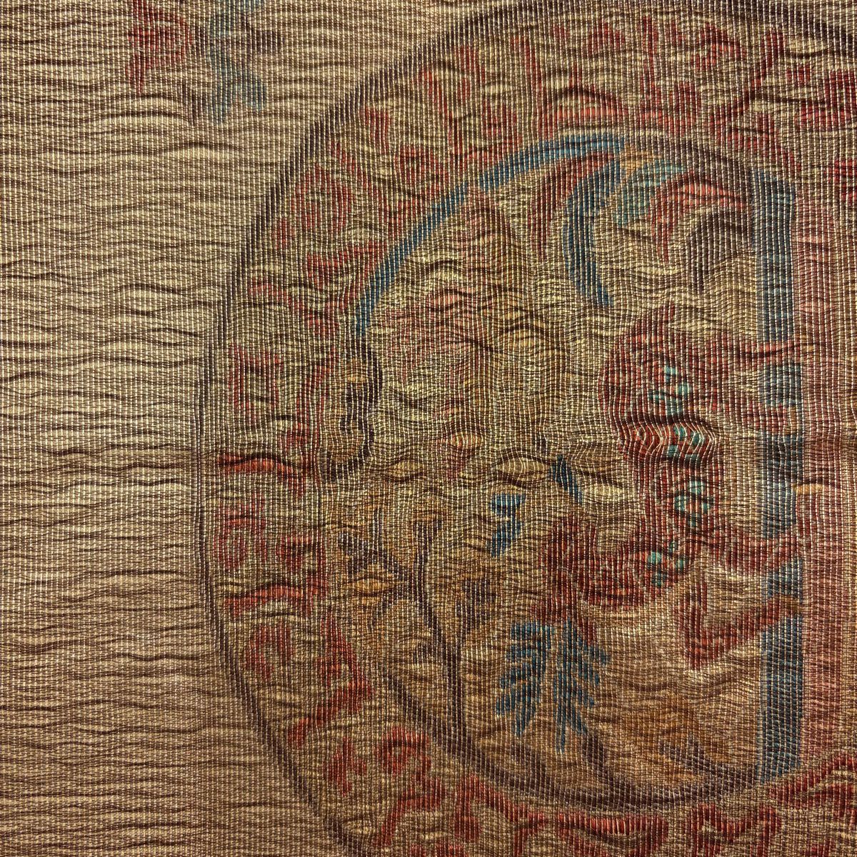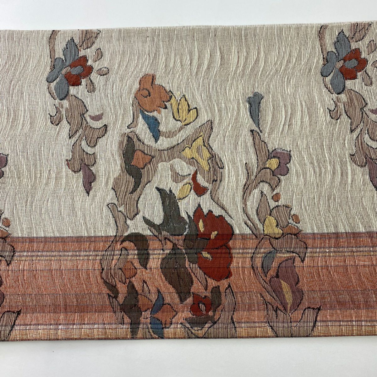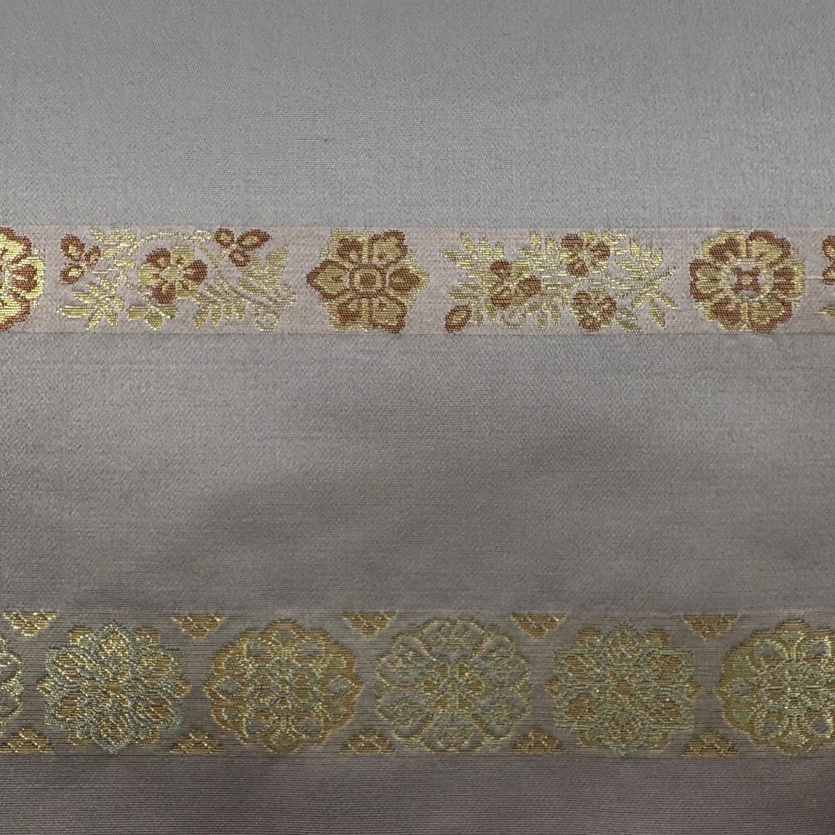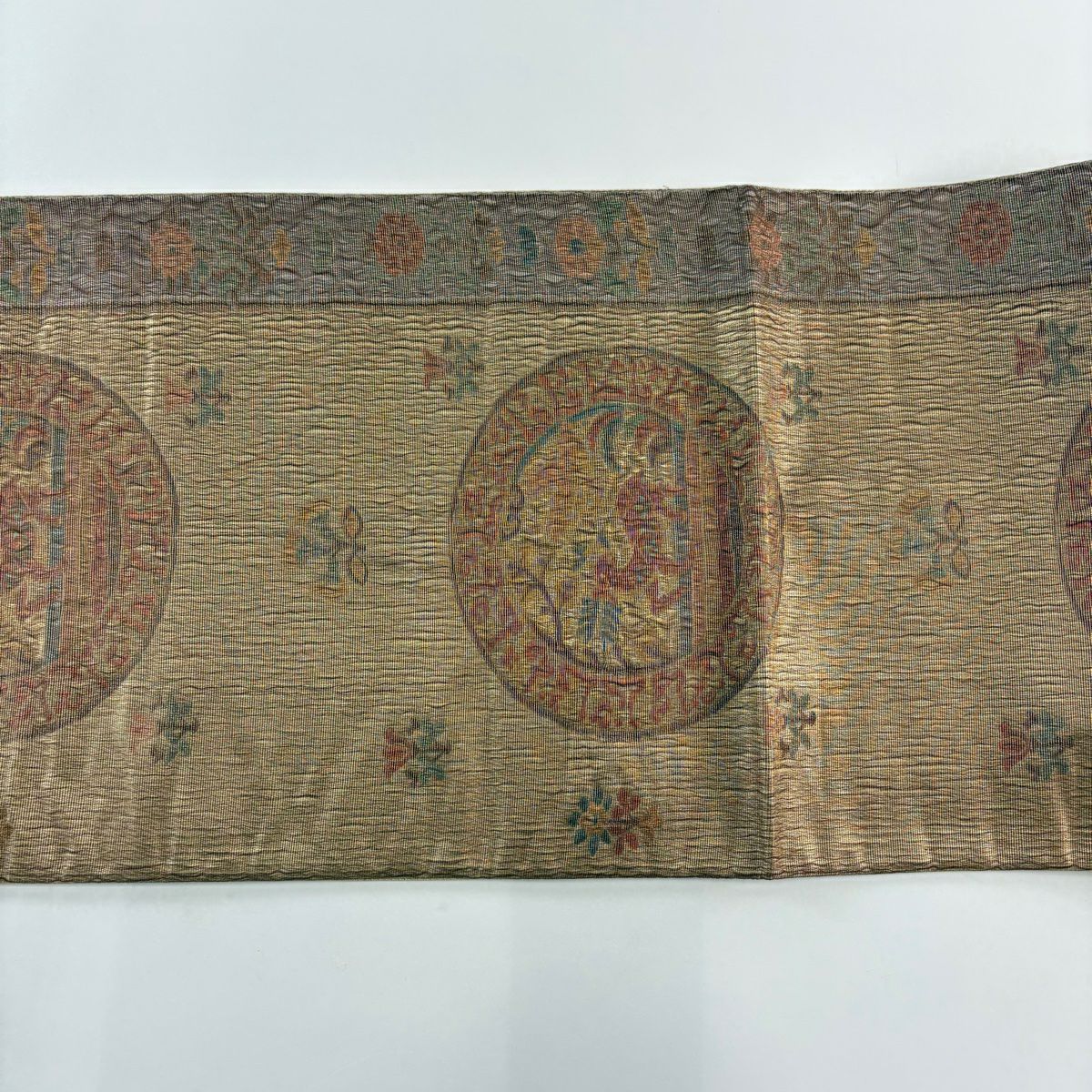【美品】 袋帯 秀品 華文 唐草 唐織 箔 ベージュ 六通 正絹