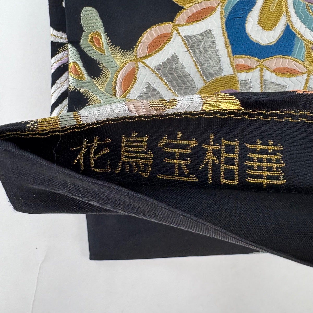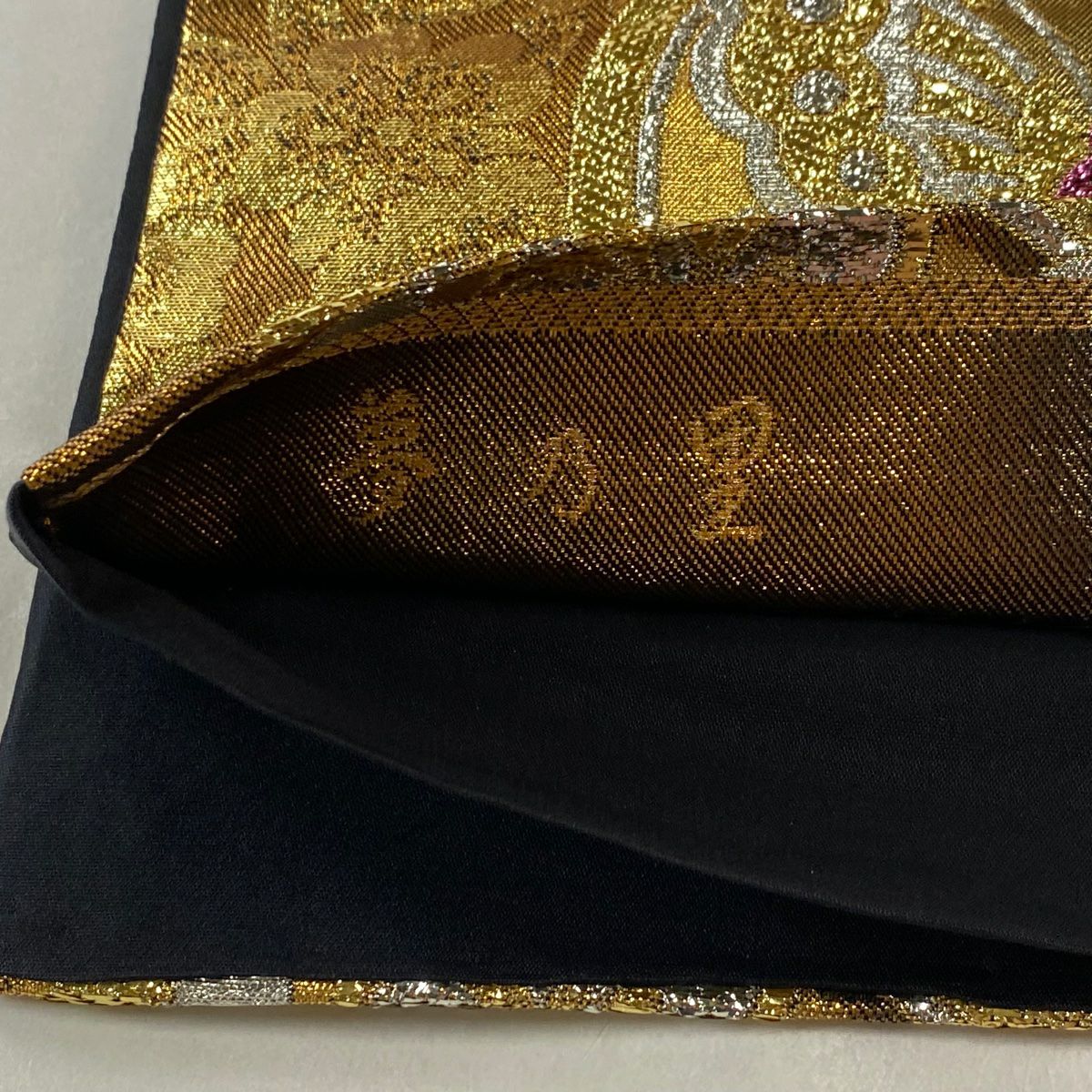 袋帯 秀品 振袖向き 花鳥宝相華 蝶 金銀糸 唐織 黒 六通 正絹