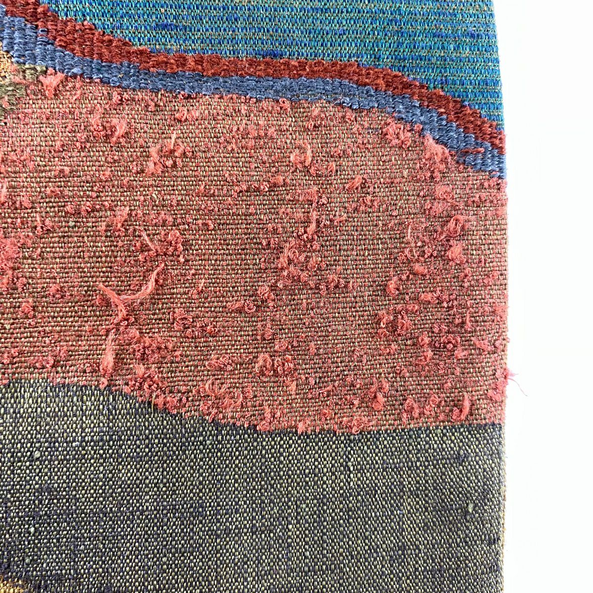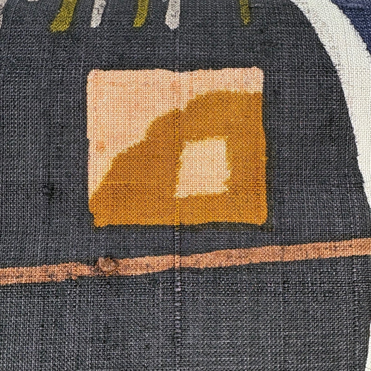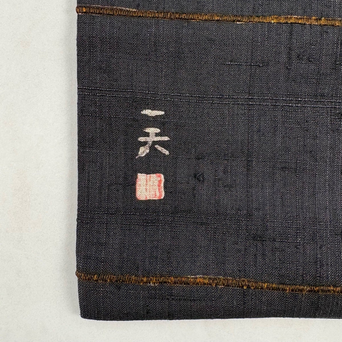 名古屋帯 秀品 落款あり 関西仕立て 紬地 幾何学模様 紺色 正絹