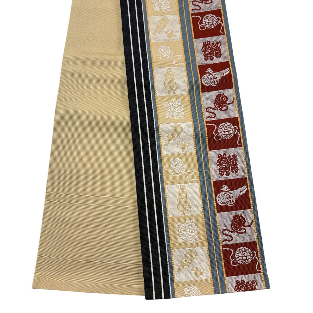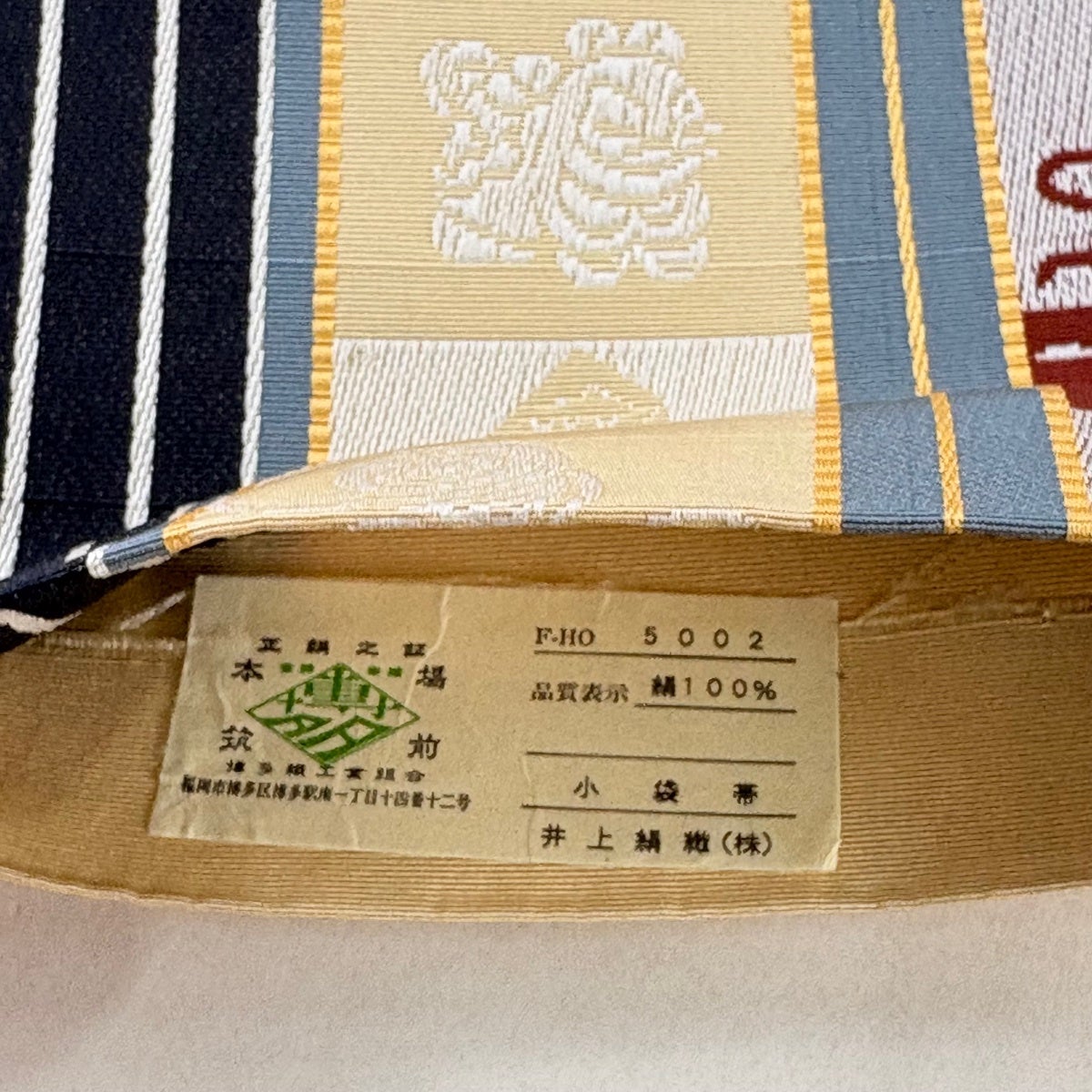 【美品】半幅帯 秀品 博多織 証紙有 縞 玩具 ベージュ 正絹