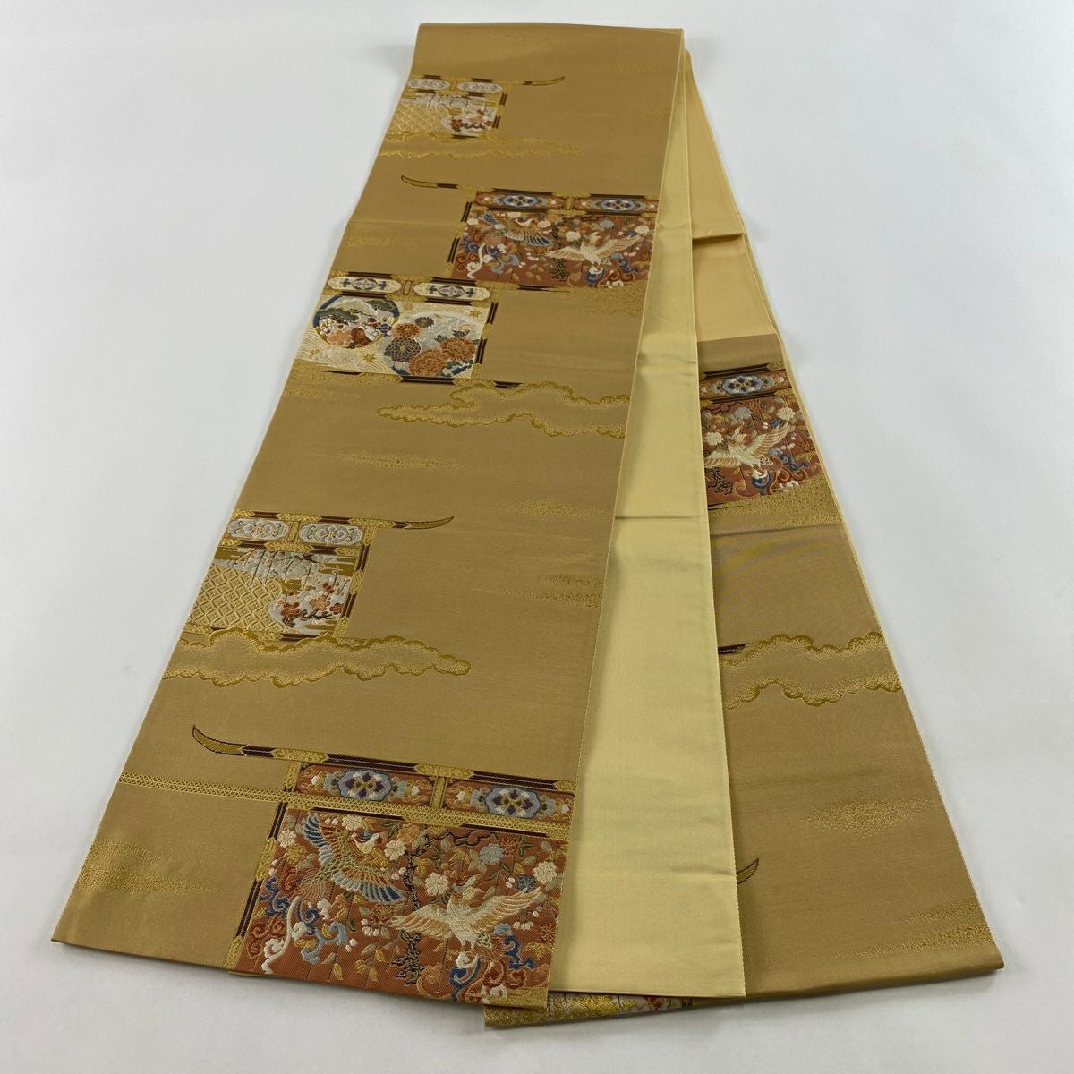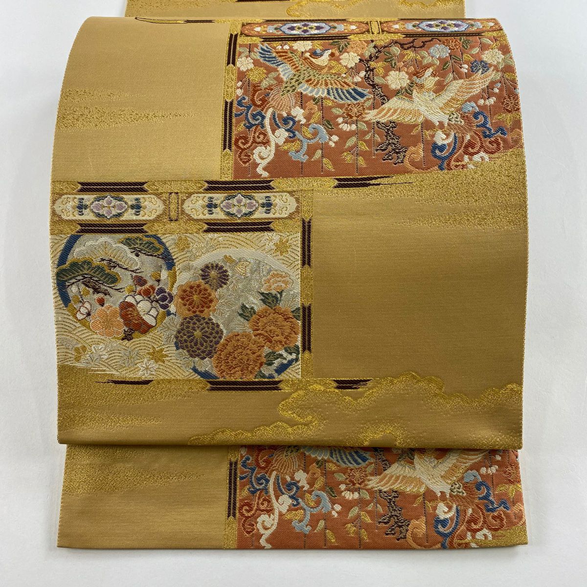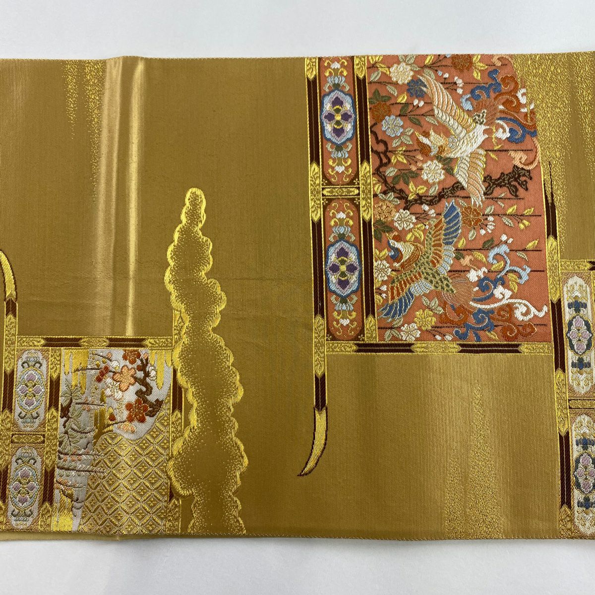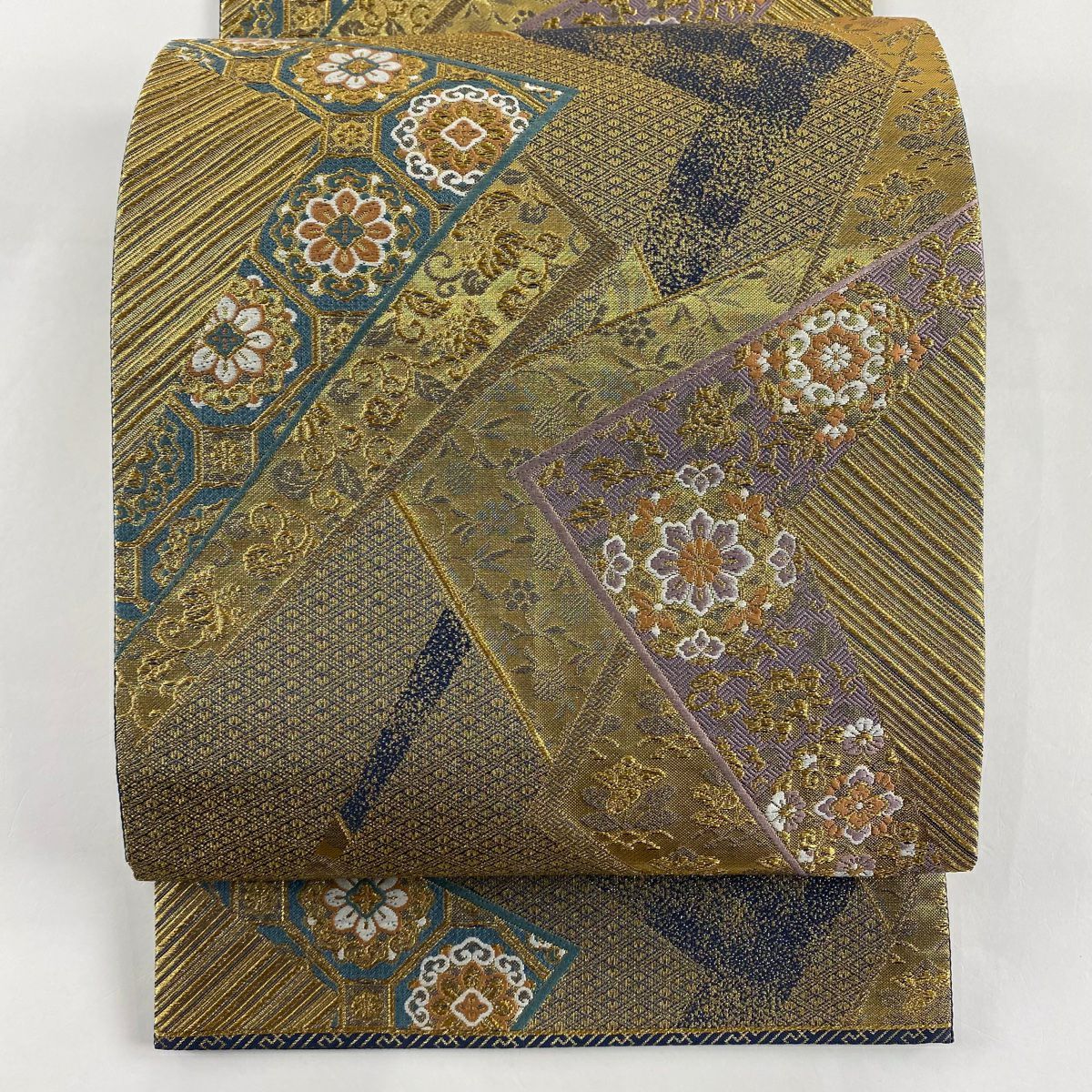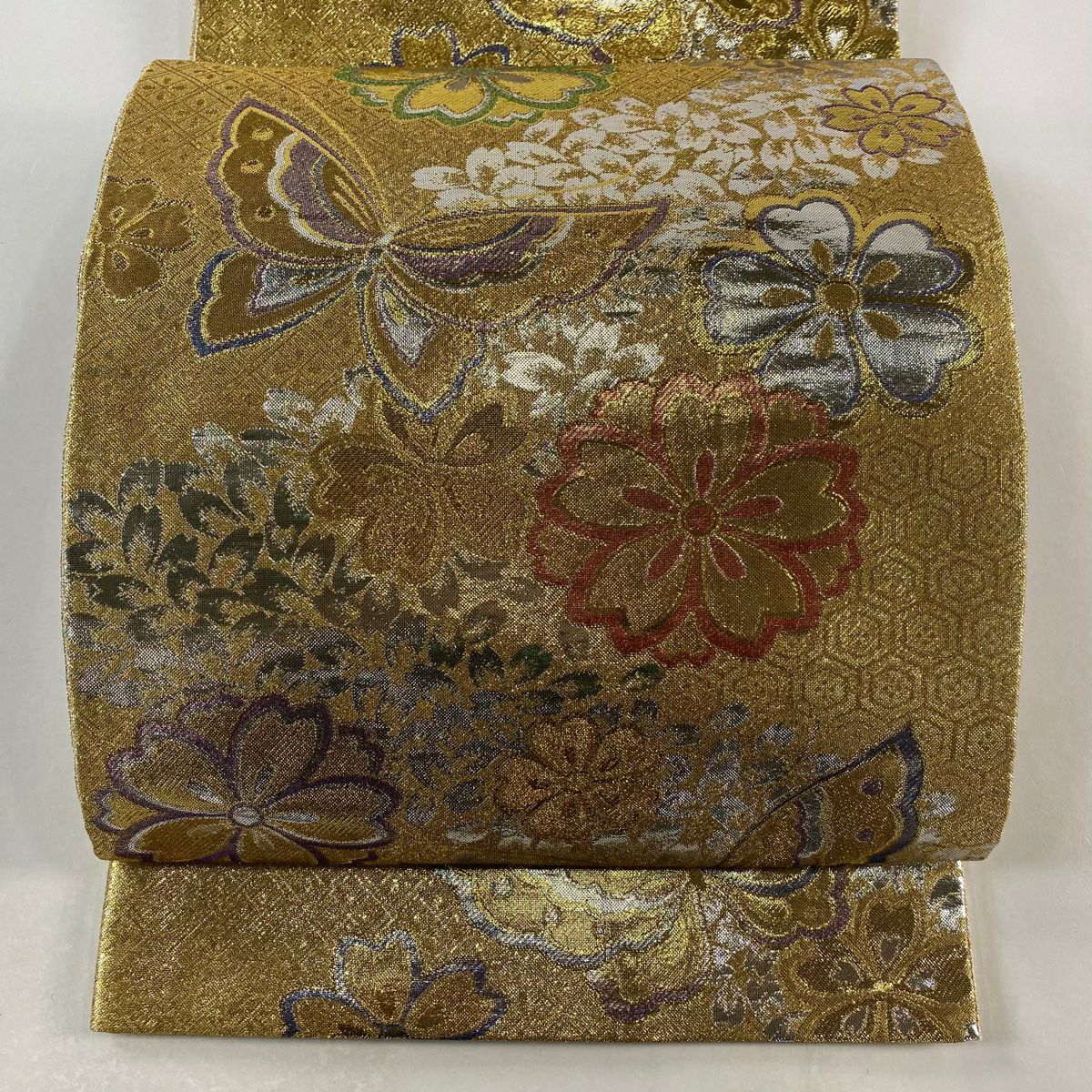 袋帯 秀品 関西仕立て 華文 有職文様 箔 金銀糸 金色 六通 正絹
