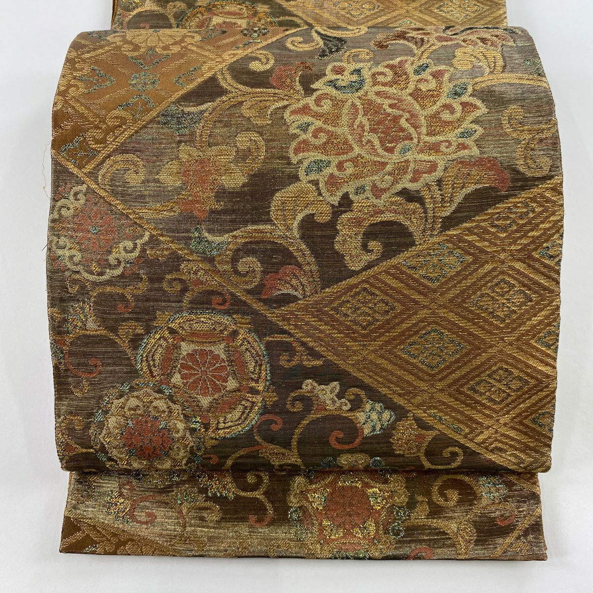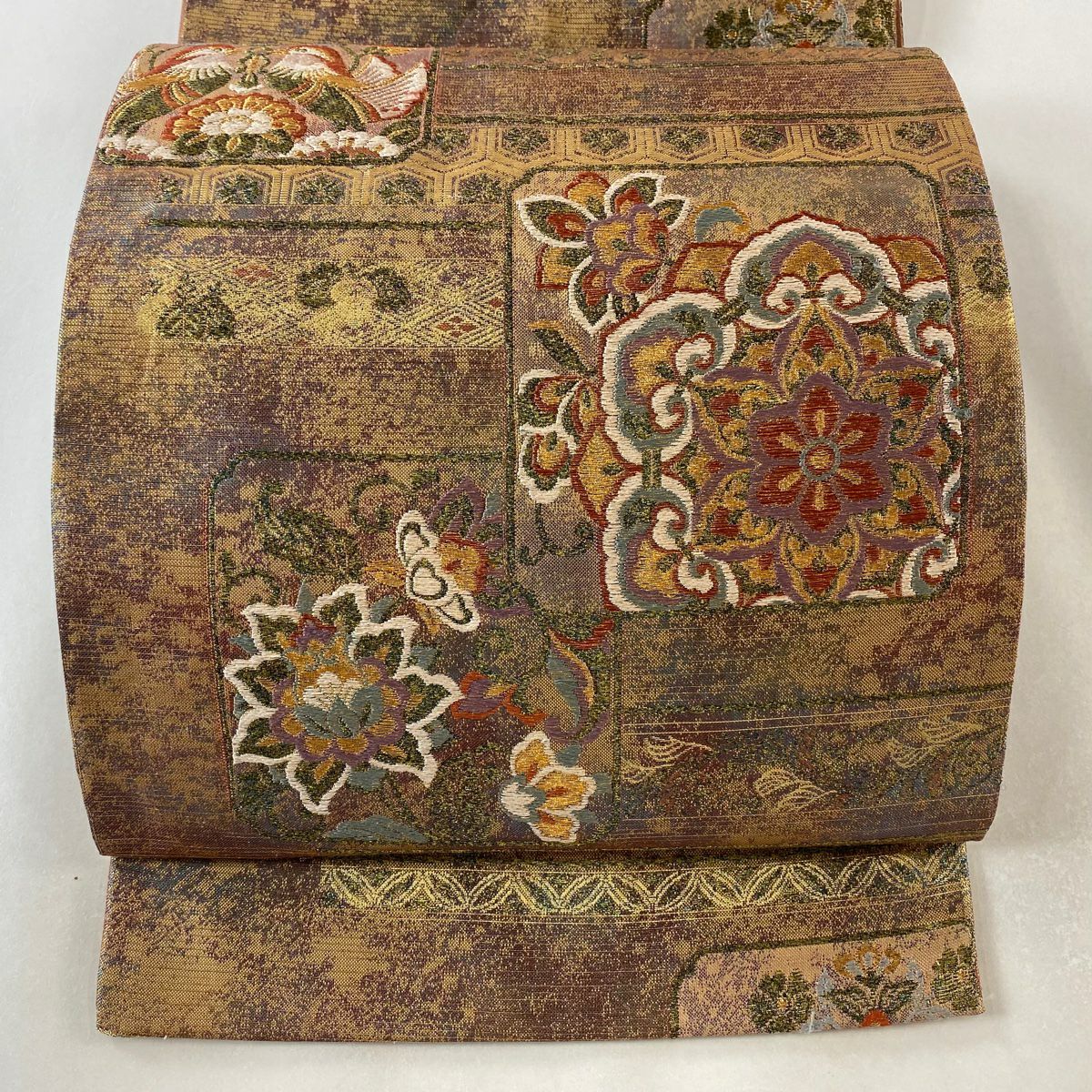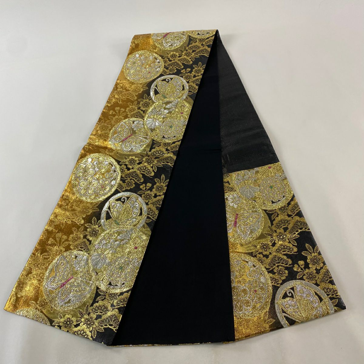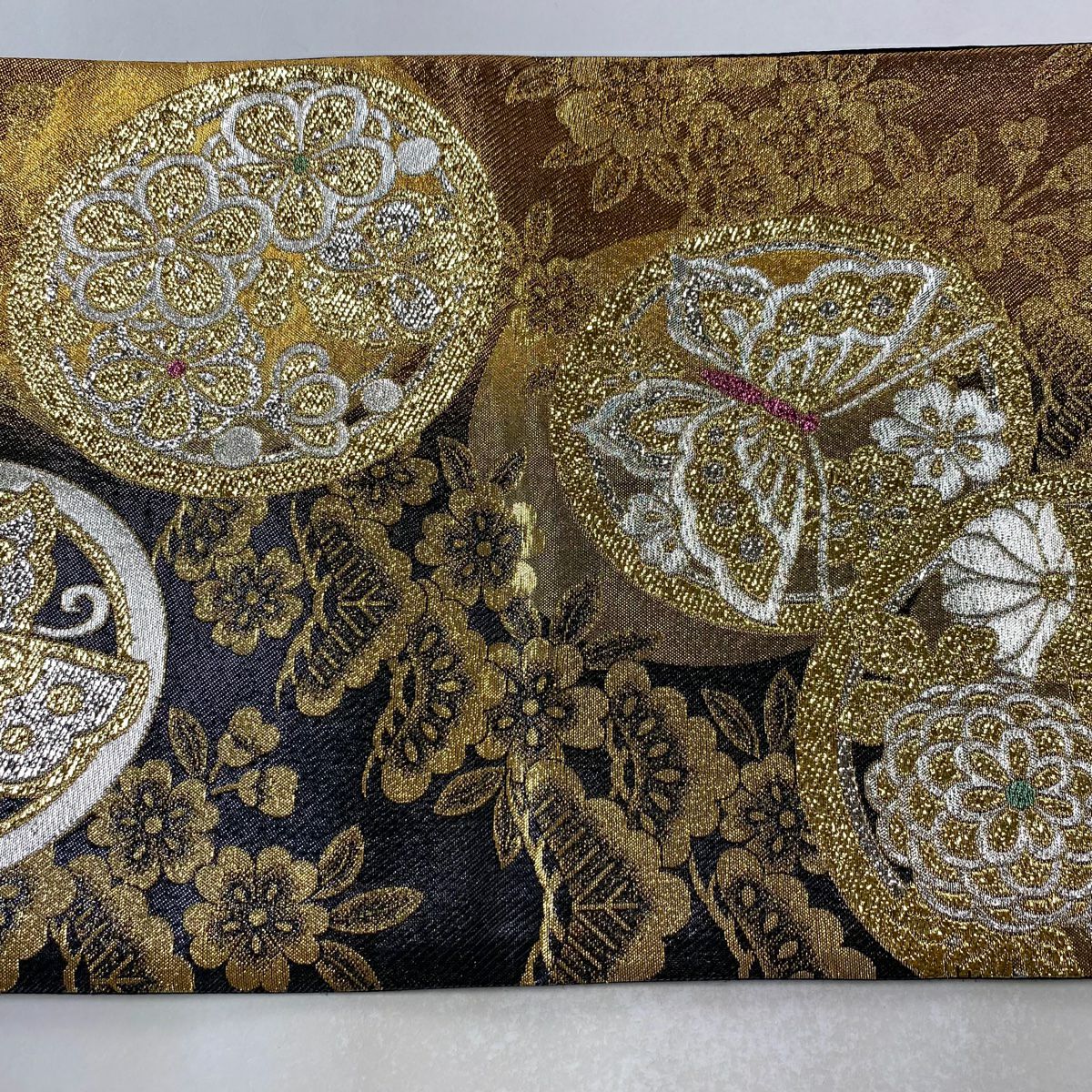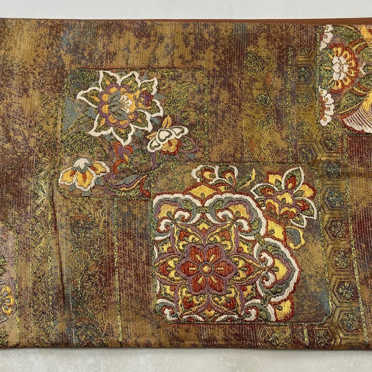 袋帯 秀品 関西仕立て 華文 有職文様 箔 金銀糸 金色 六通 正絹