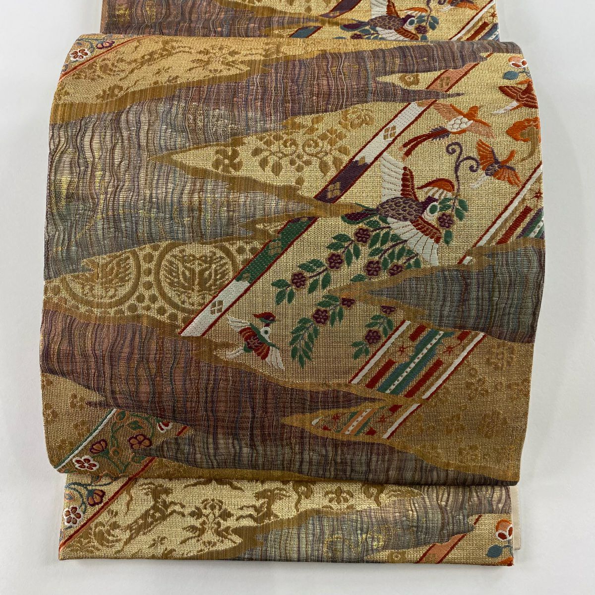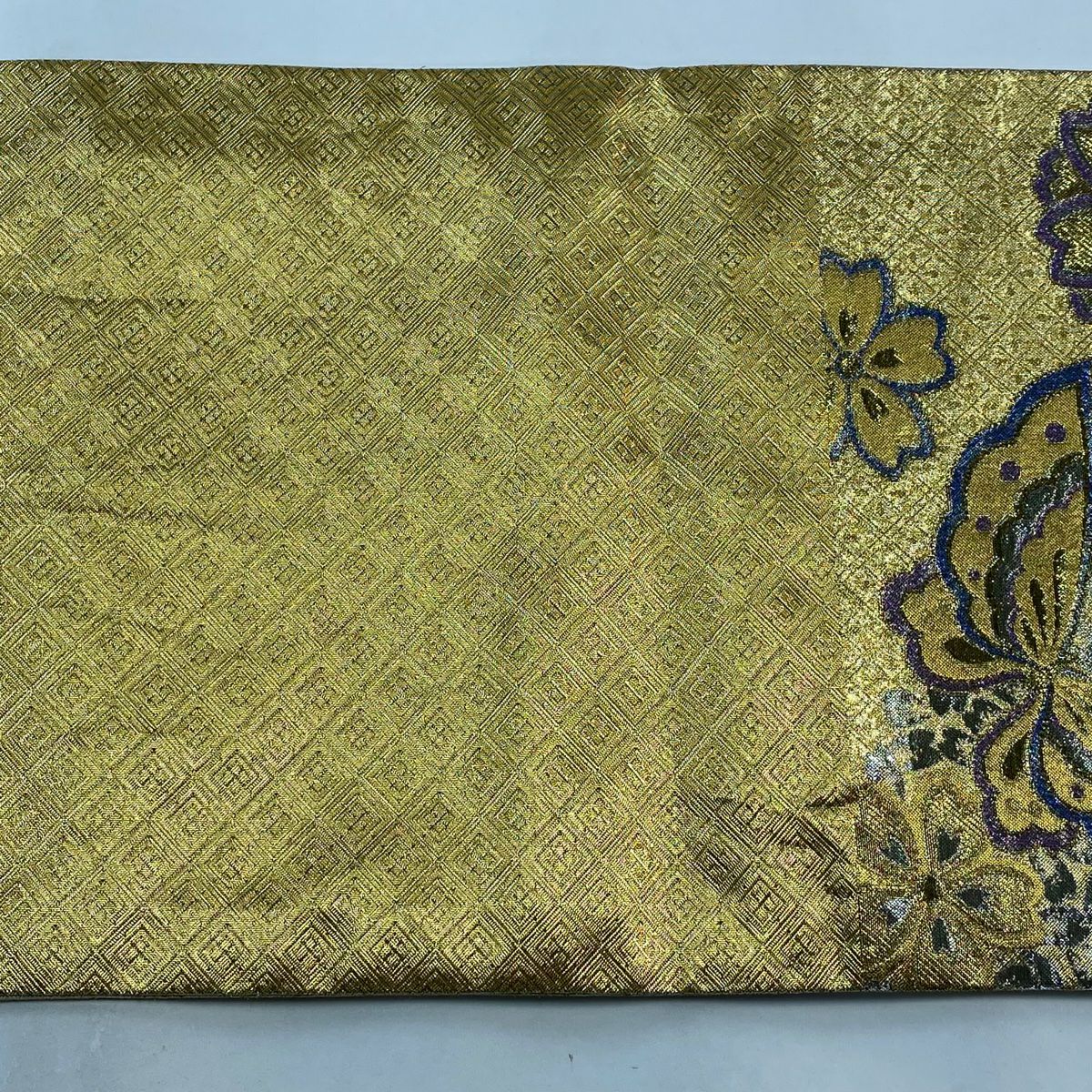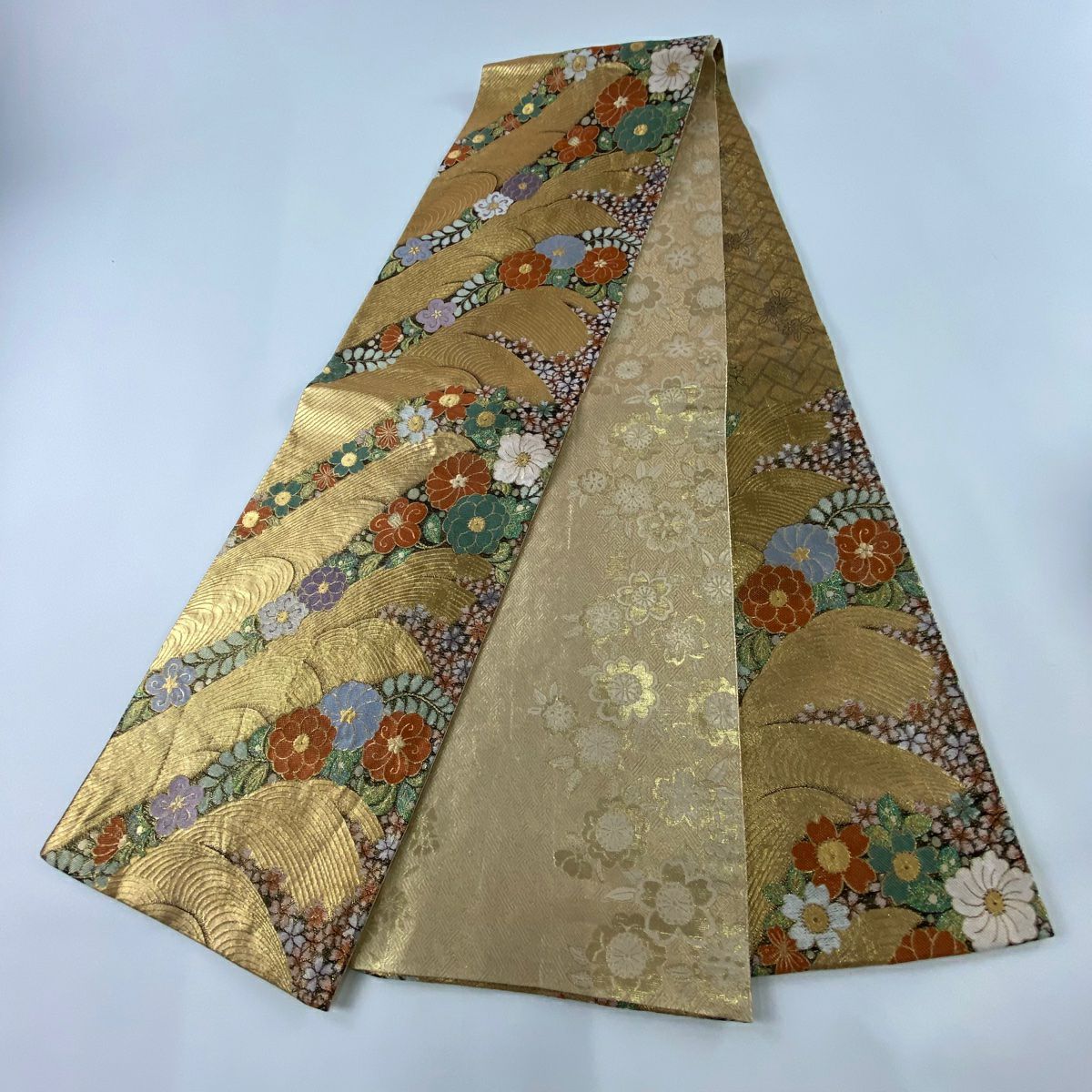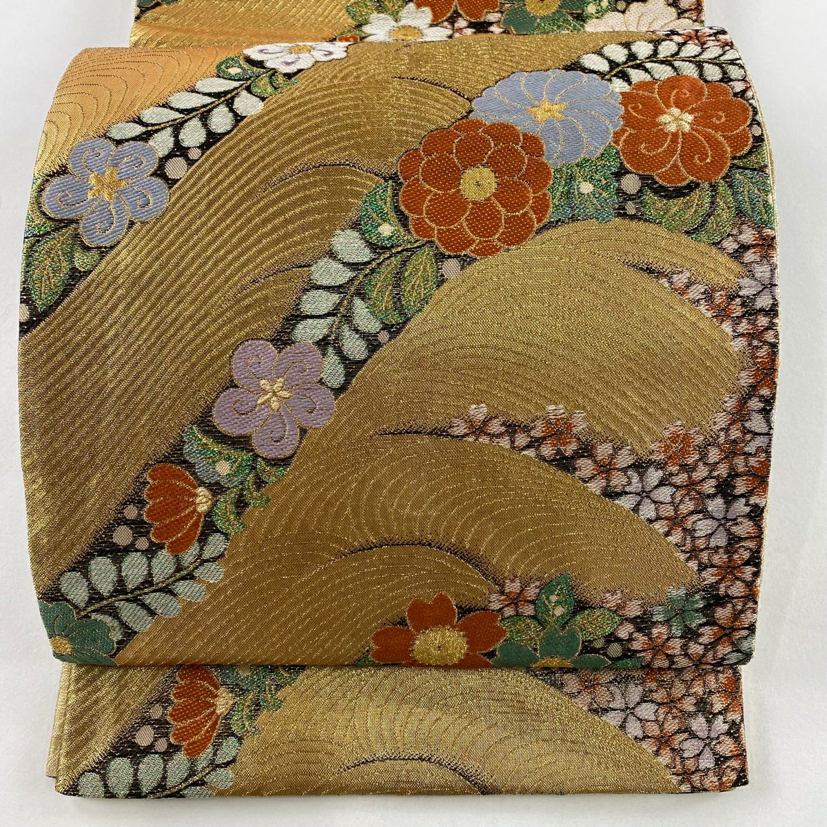 【在庫一掃】 袋帯 美品 秀品 芝 波 金糸 箔 金色 六通 正絹