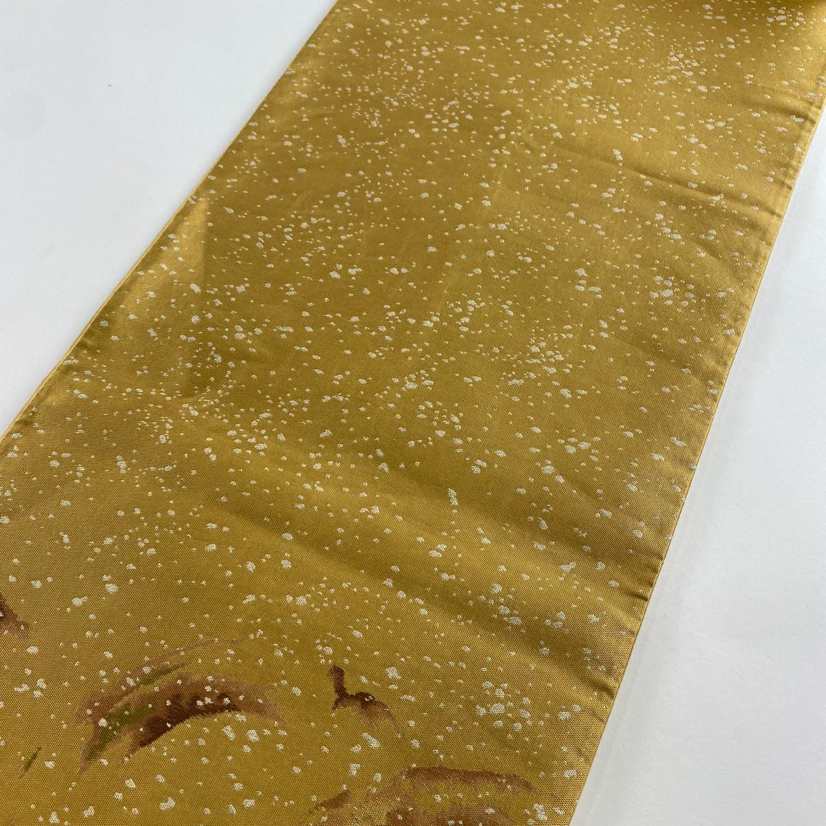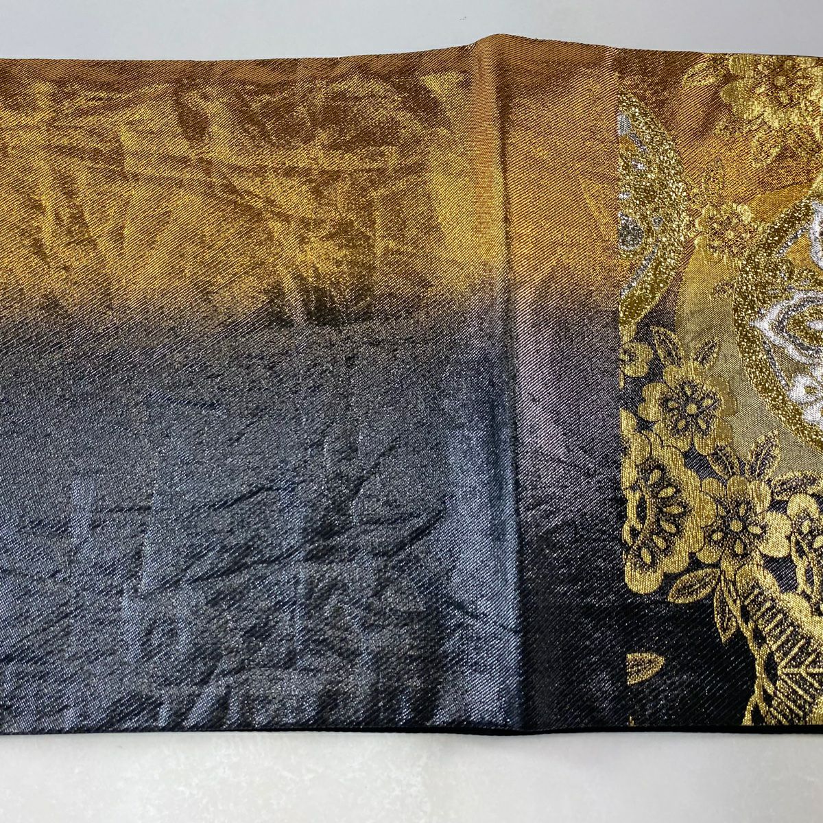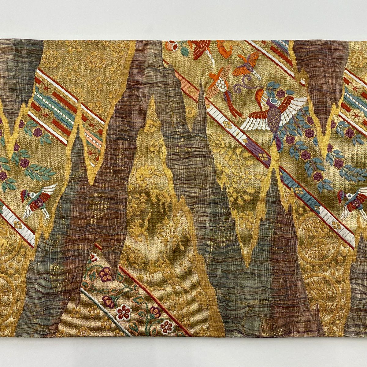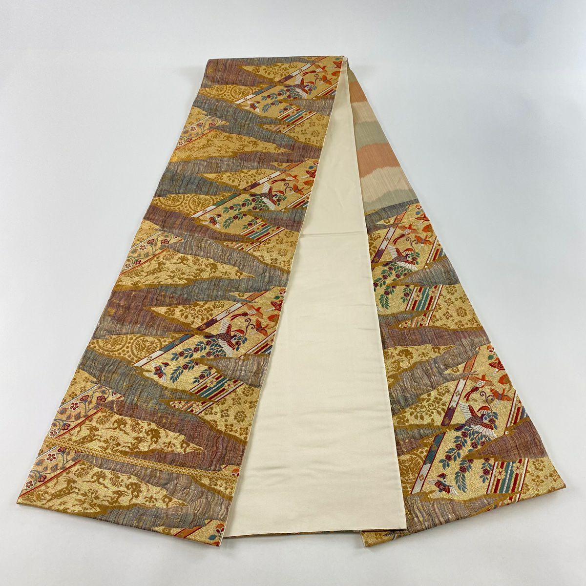 【在庫一掃】 袋帯 美品 秀品 芝 波 金糸 箔 金色 六通 正絹