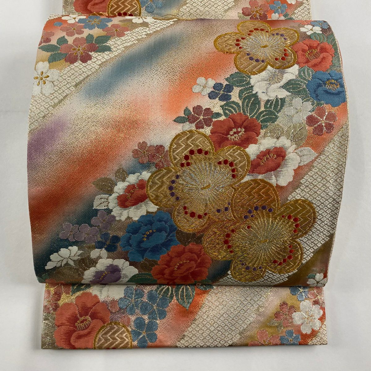 【美品】 袋帯 秀品 幻想辻ヶ花 桜 梅 金糸 箔 金色 六通 正絹