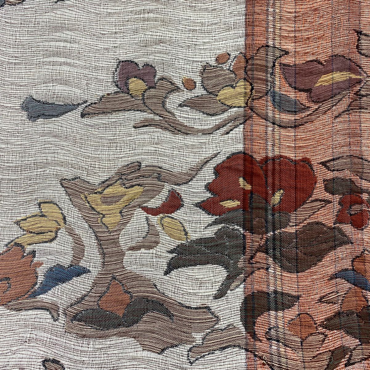 【在庫一掃】 名古屋帯 秀品 草花 桐 螺鈿箔 金彩 銀色 正絹