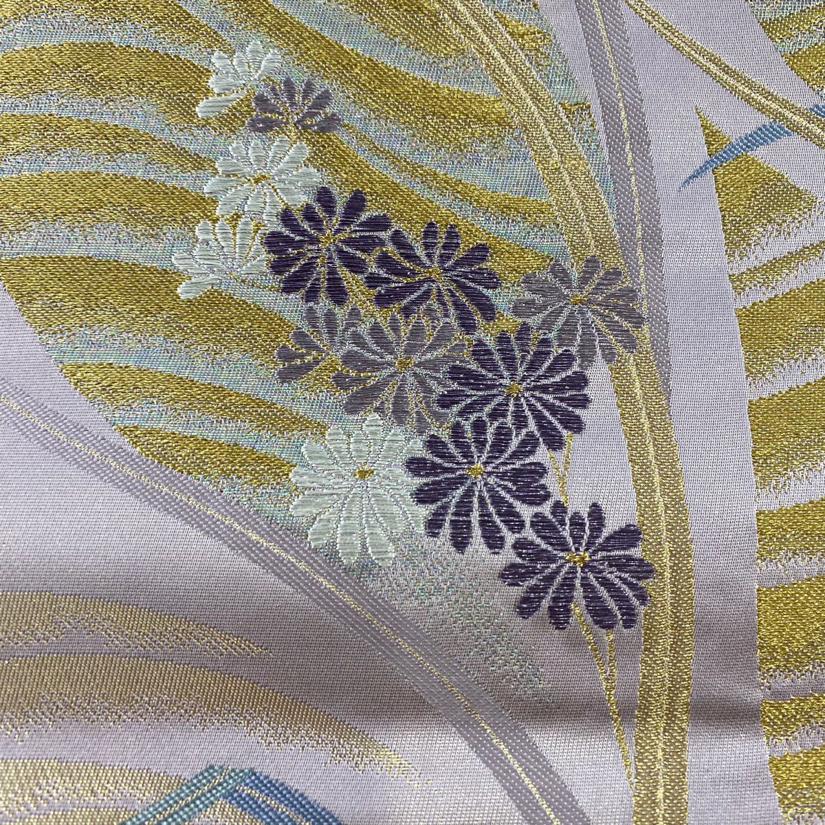 【美品】 袋帯 秀品 青雲間道 華文 花唐草 箔 灰紫 六通 正絹
