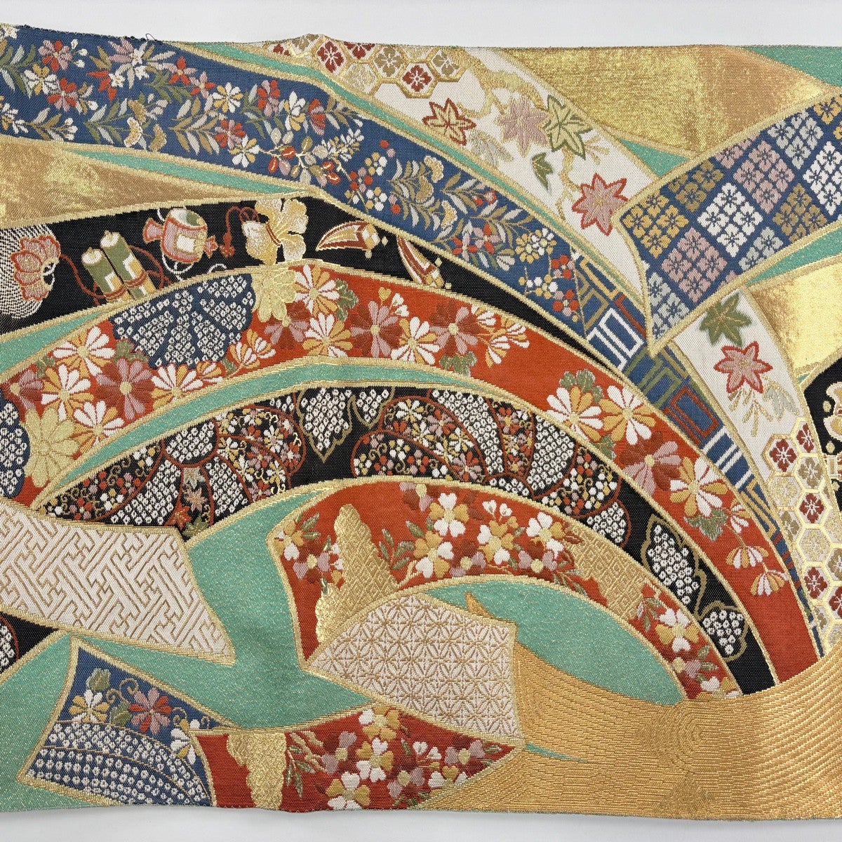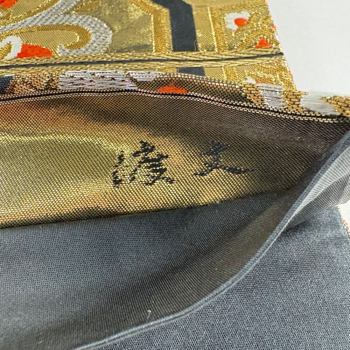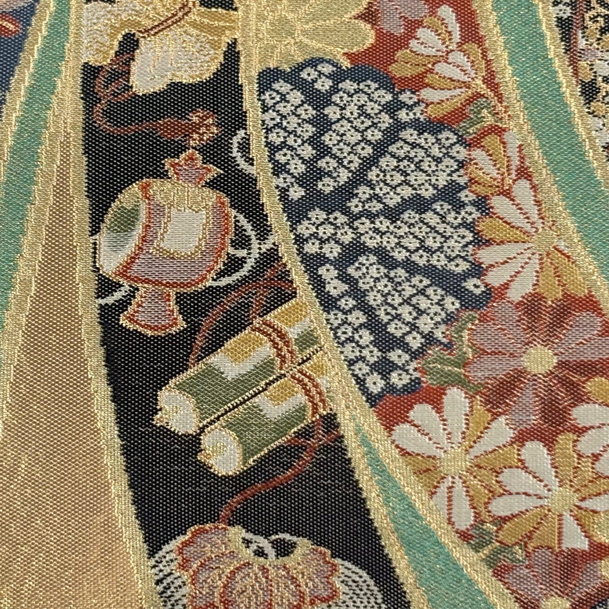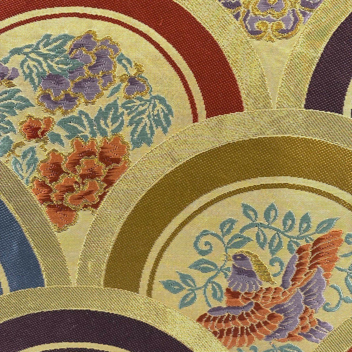 【美品】 袋帯 秀品 有職青海波文 花鳥 金糸 箔 金色 六通 正絹