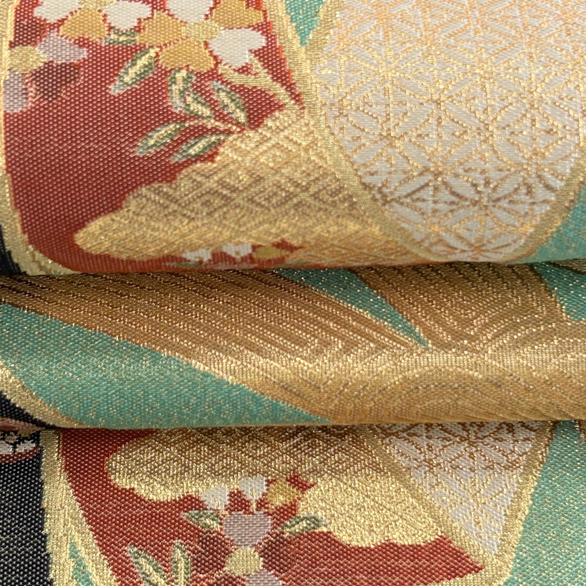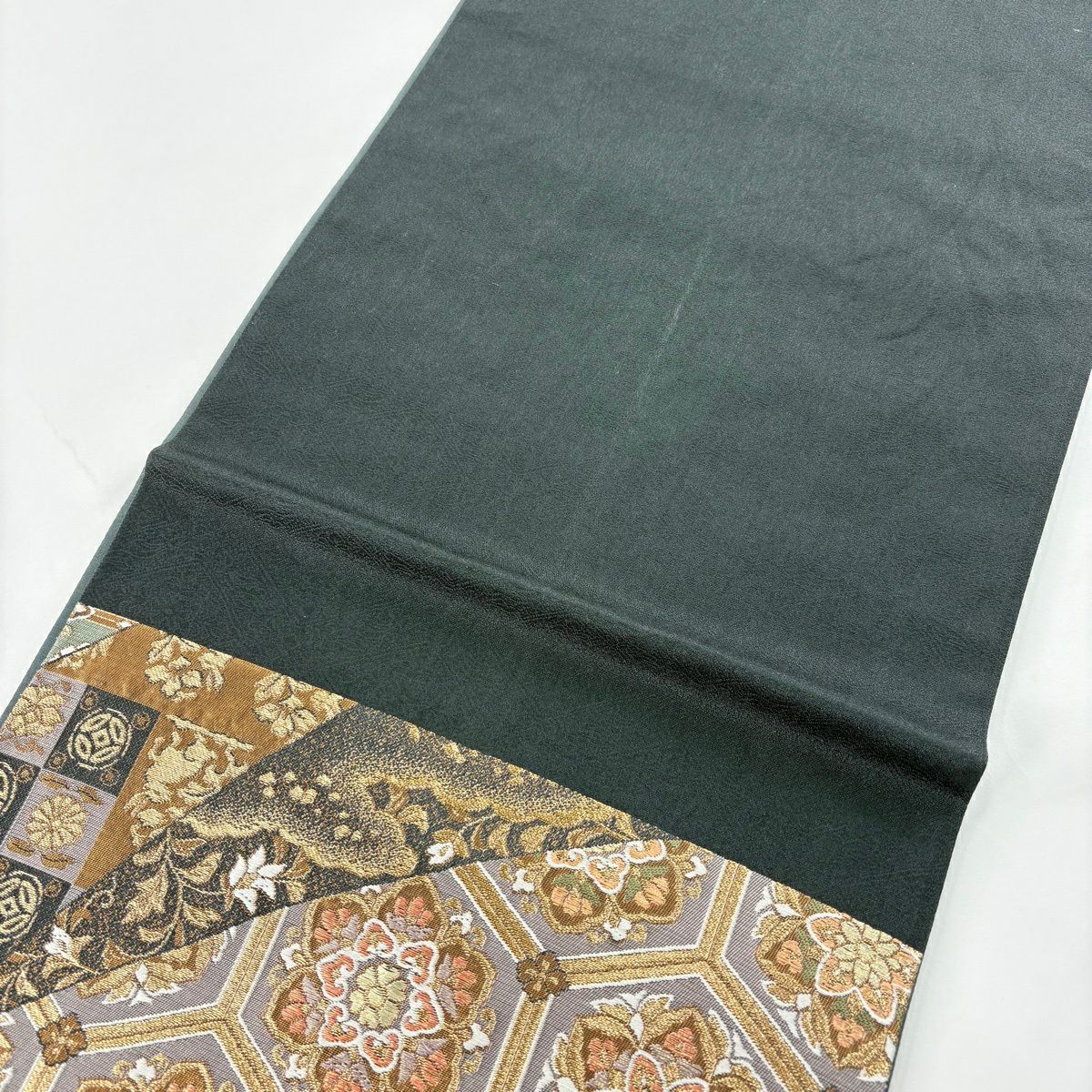 【美品】 袋帯 秀品 亀甲華文 松竹梅 金糸 箔 深緑 六通 正絹