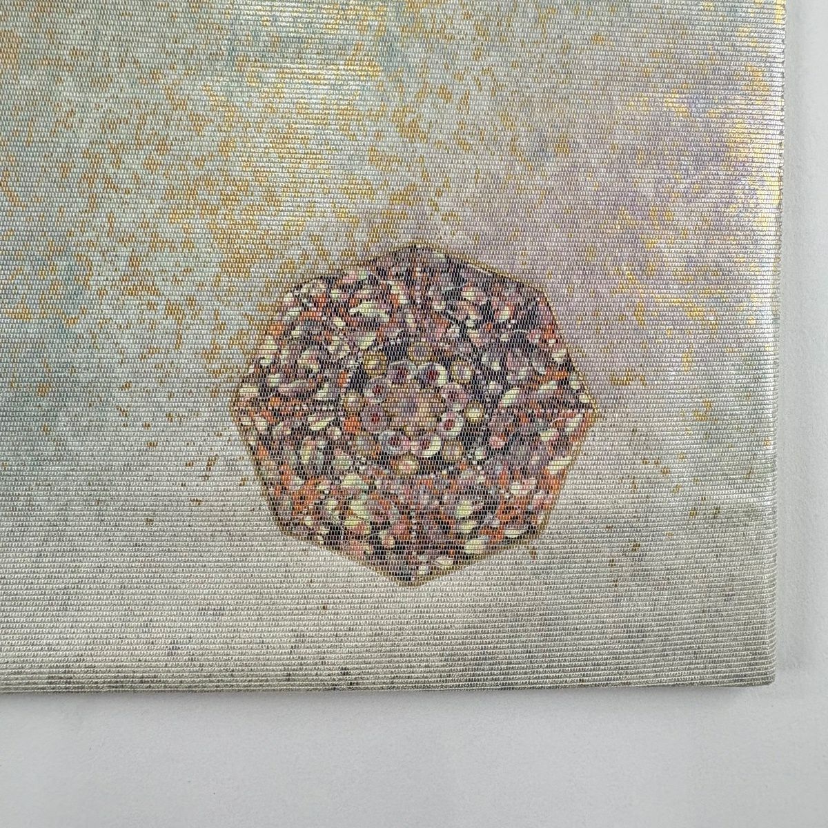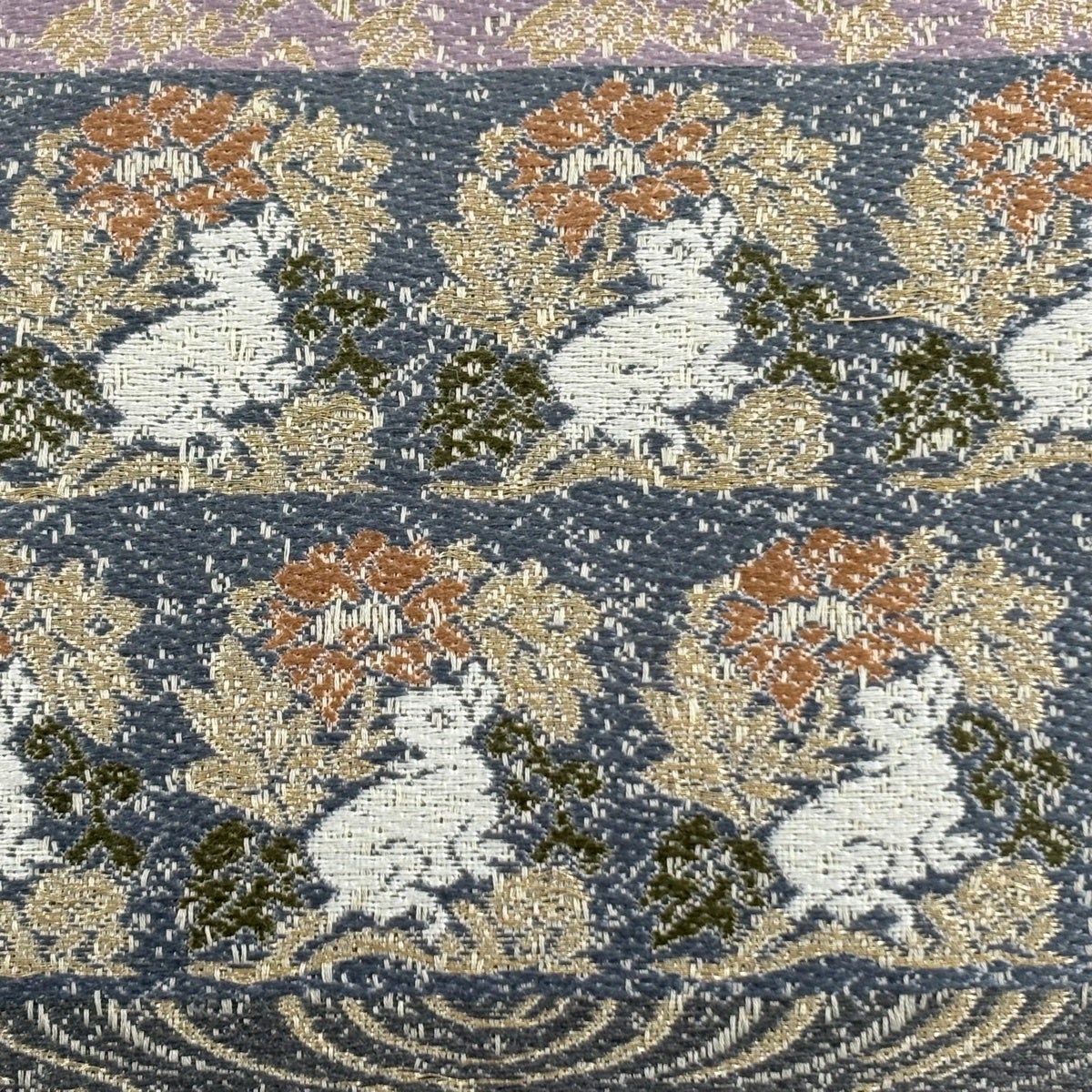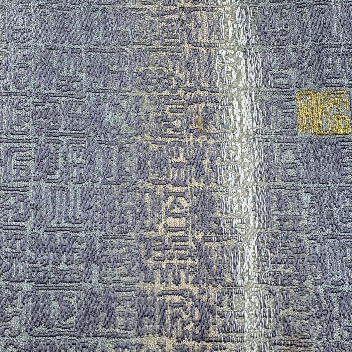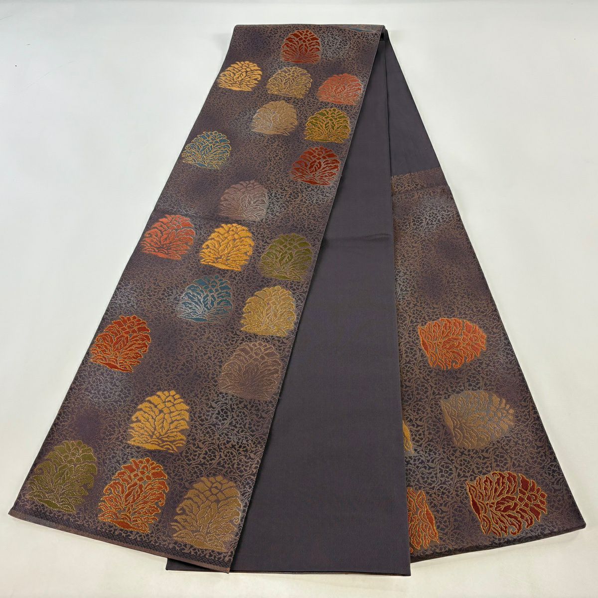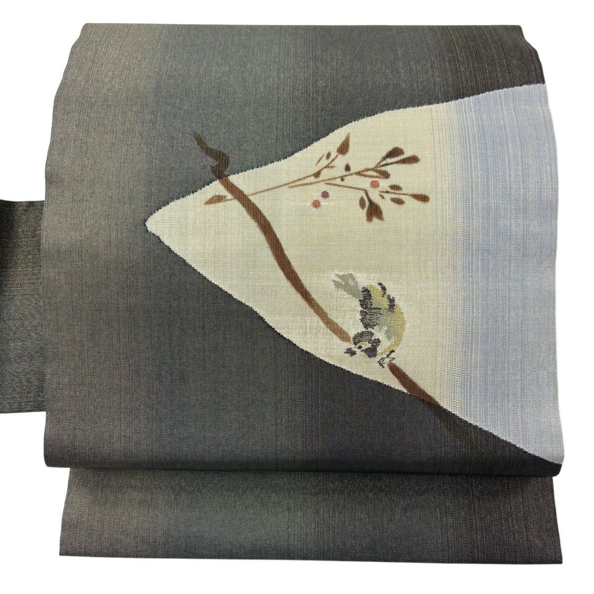 【美品】 名古屋帯 秀品 落款あり 樹木 金彩 ぼかし 灰紫 正絹