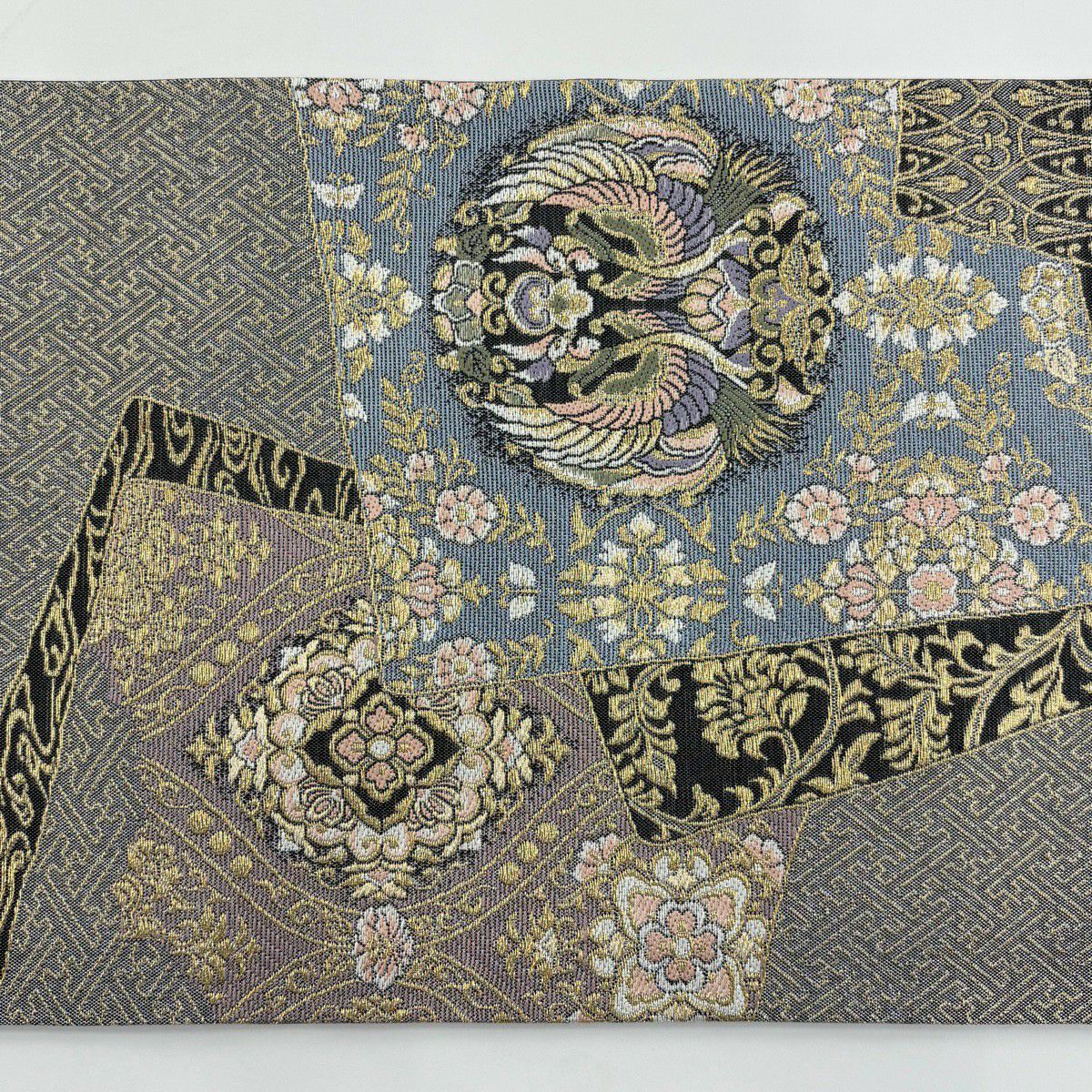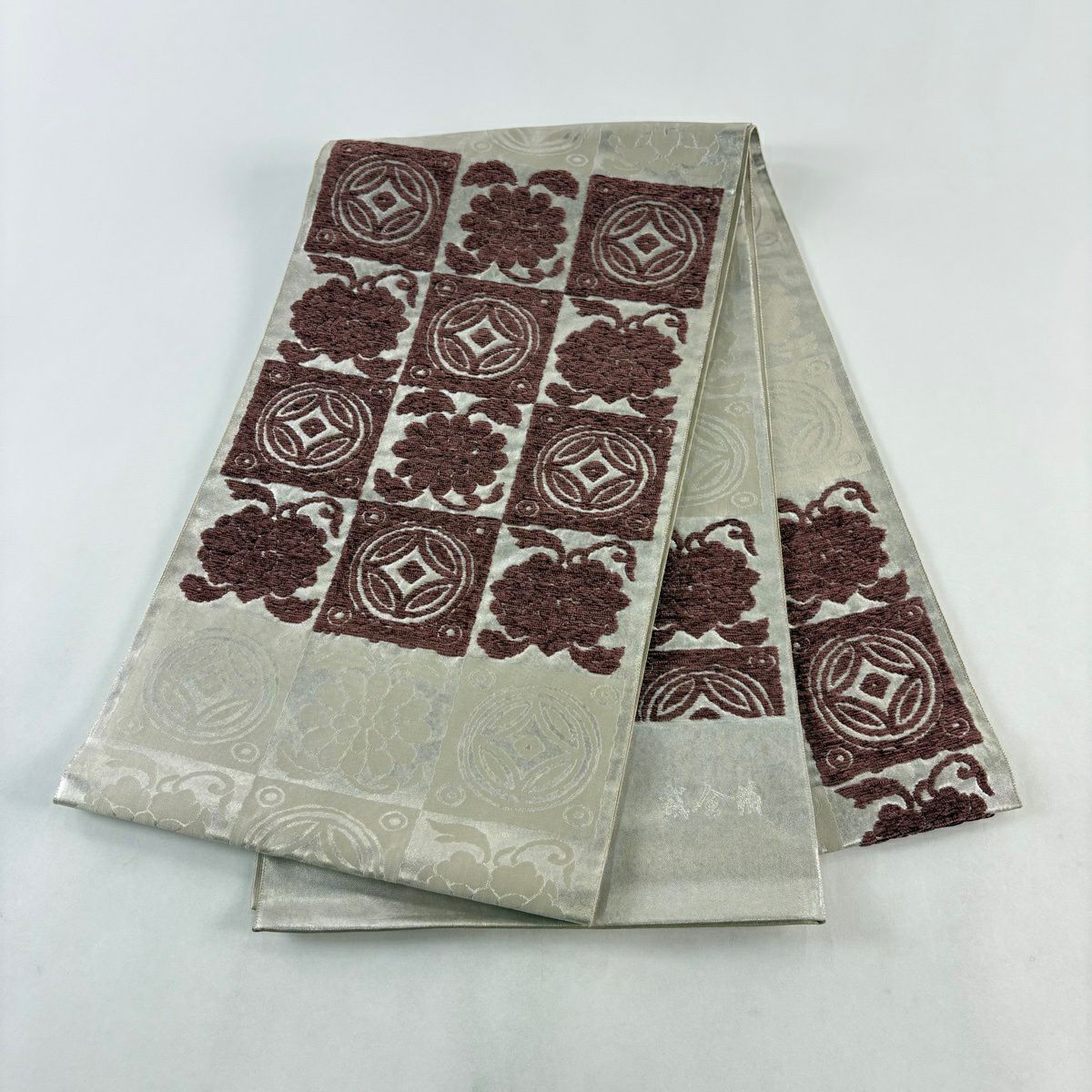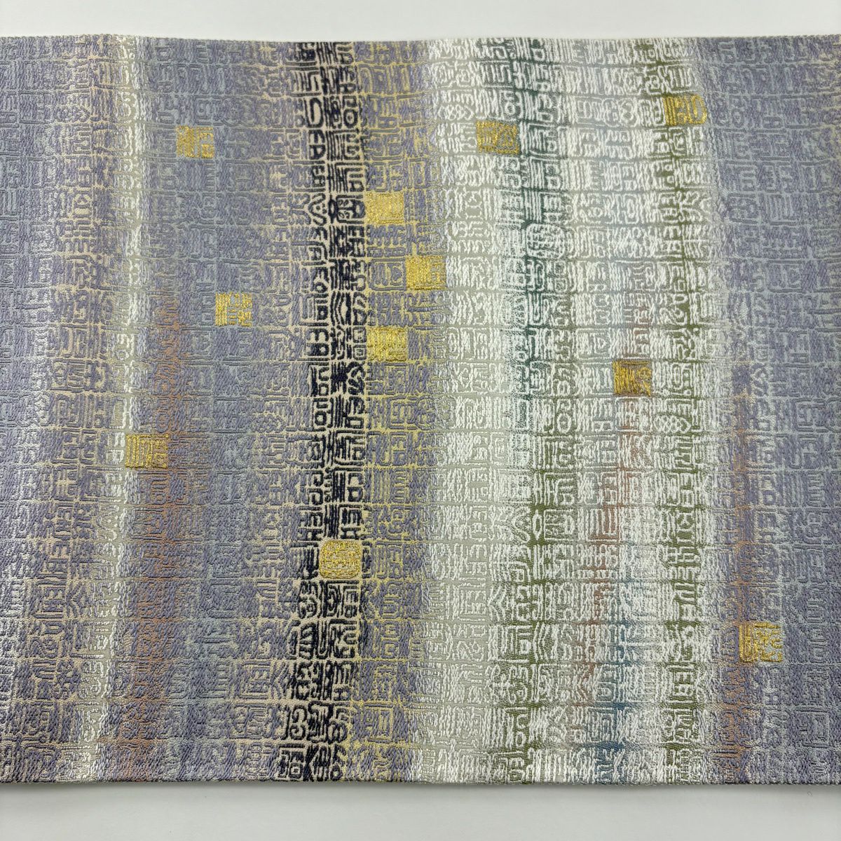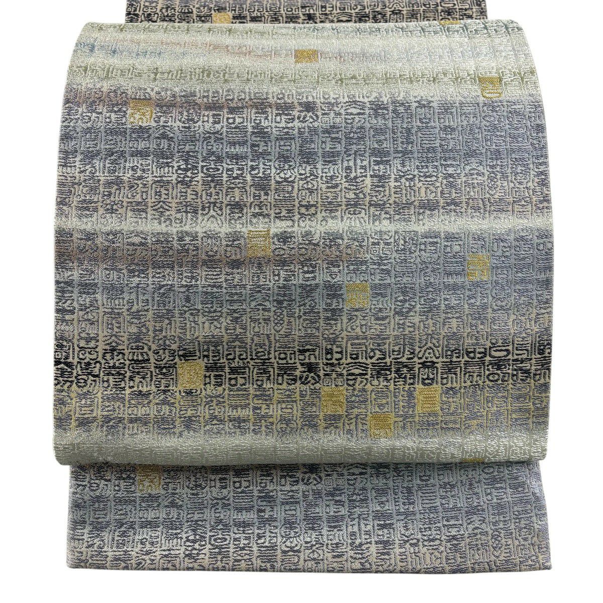 【美品】 袋帯 秀品 草春花 草花 菱 金銀糸 箔 灰色 六通 正絹