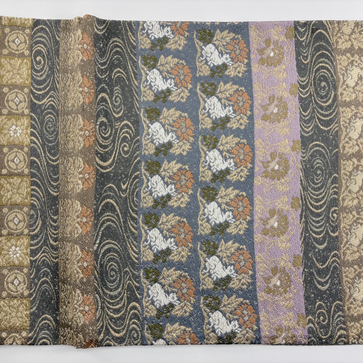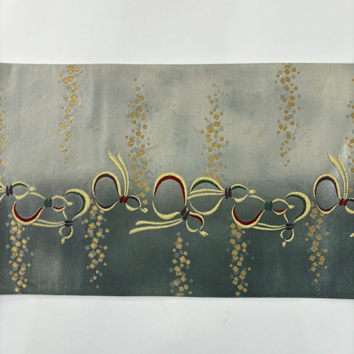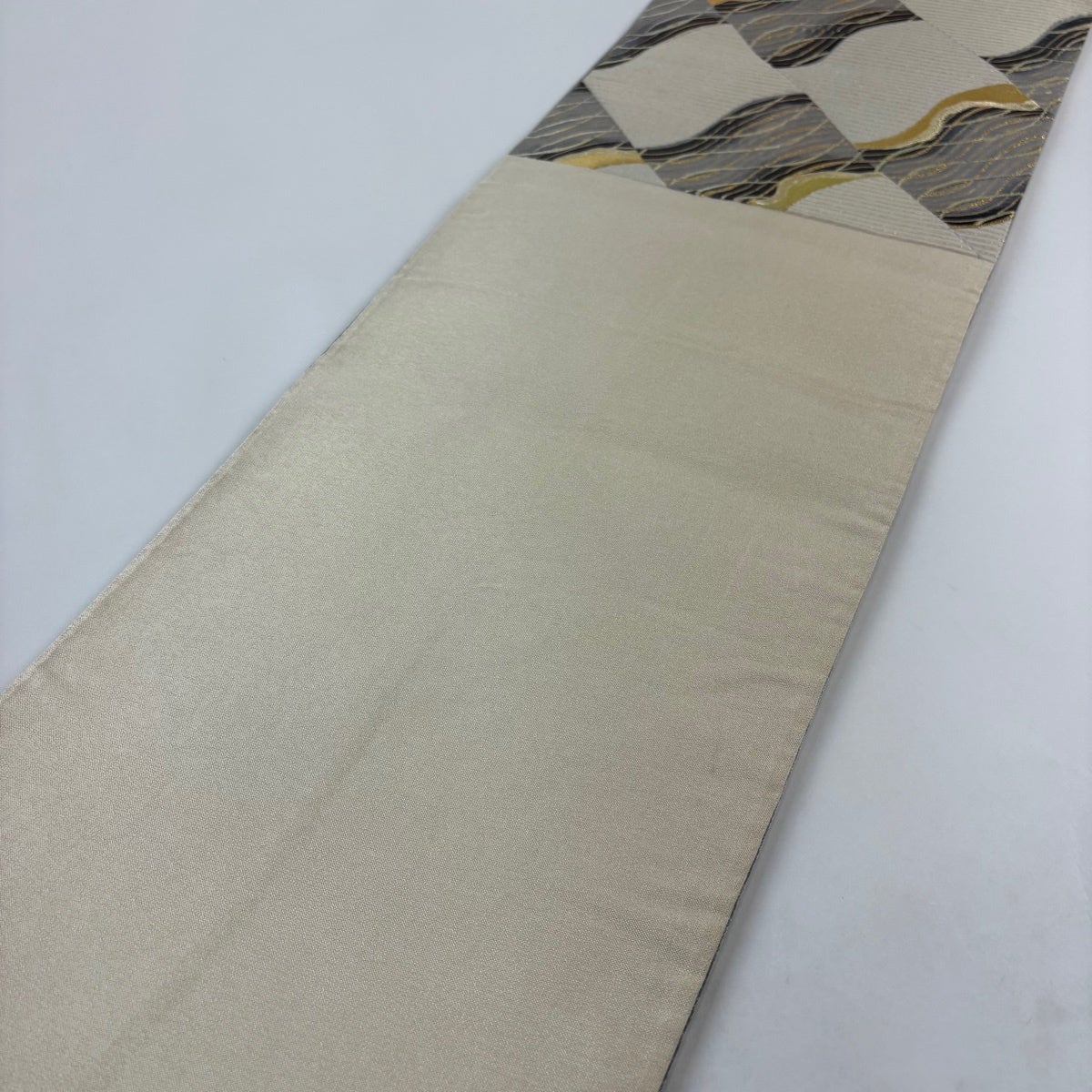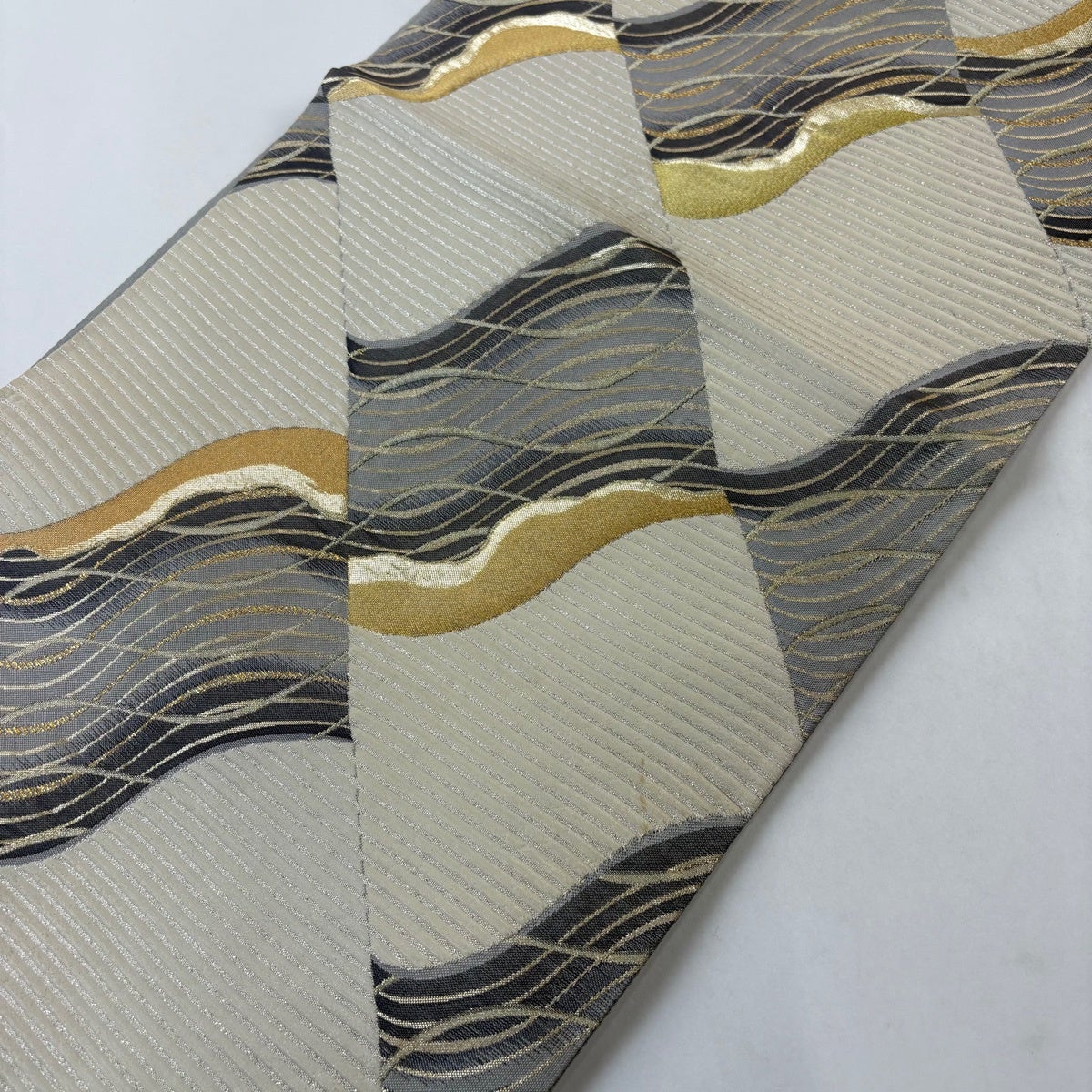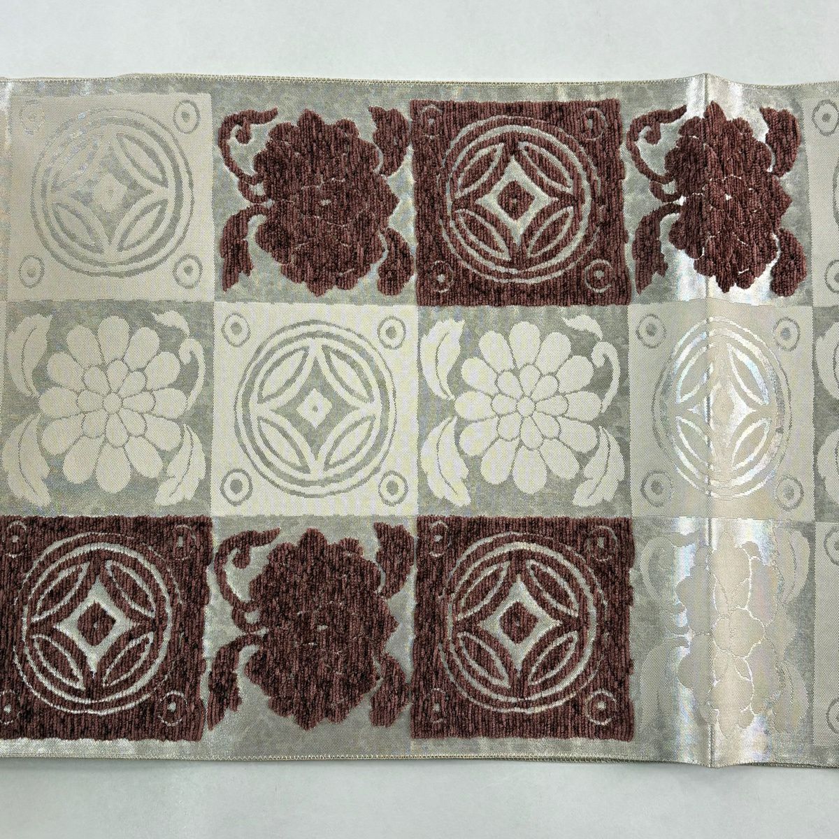 【美品】 袋帯 秀品 草春花 草花 菱 金銀糸 箔 灰色 六通 正絹