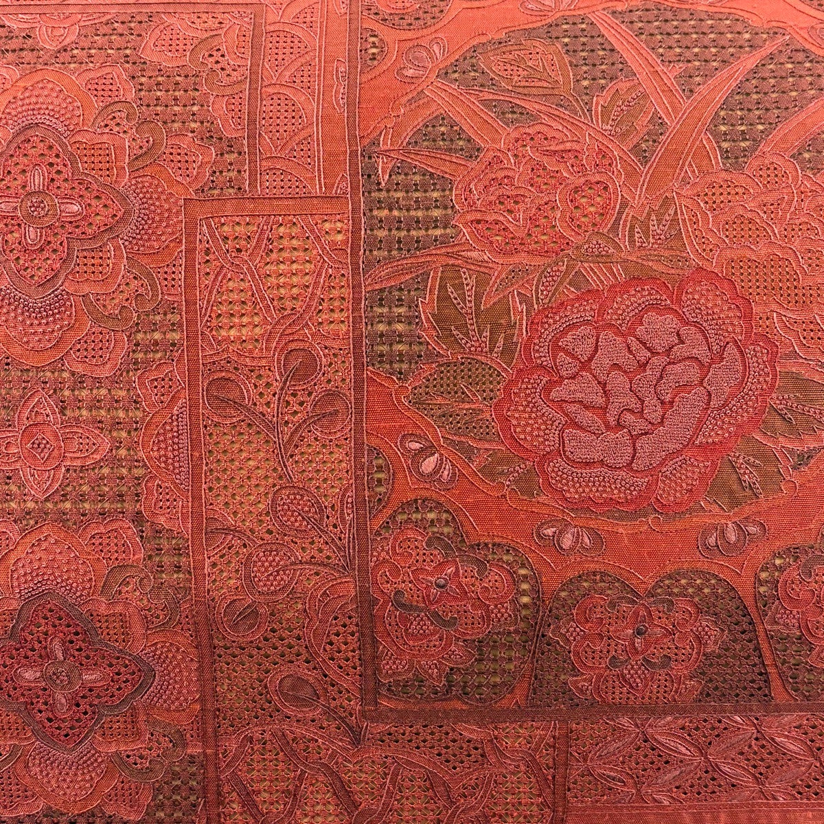 反物 秀品 羽尺 羽織 和装コート 雲文 梅 金彩 絞り 赤茶 正絹