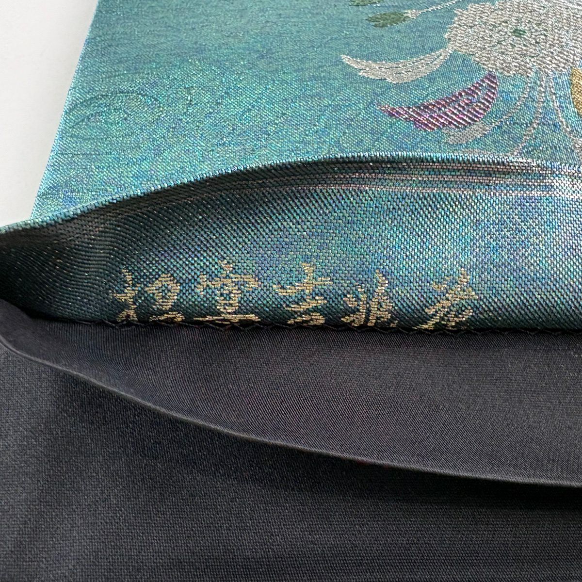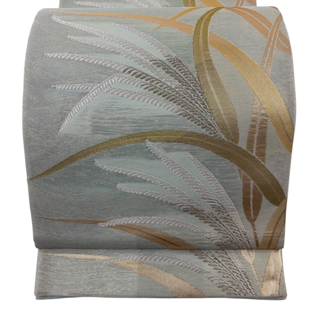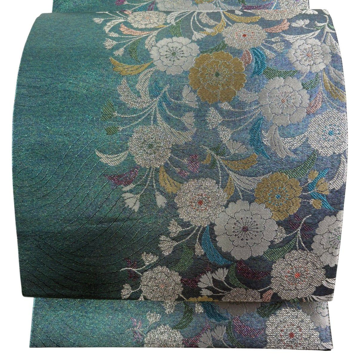 【美品】 袋帯 秀品 招宴吉兆花 波 金銀糸 箔 水色 六通 正絹