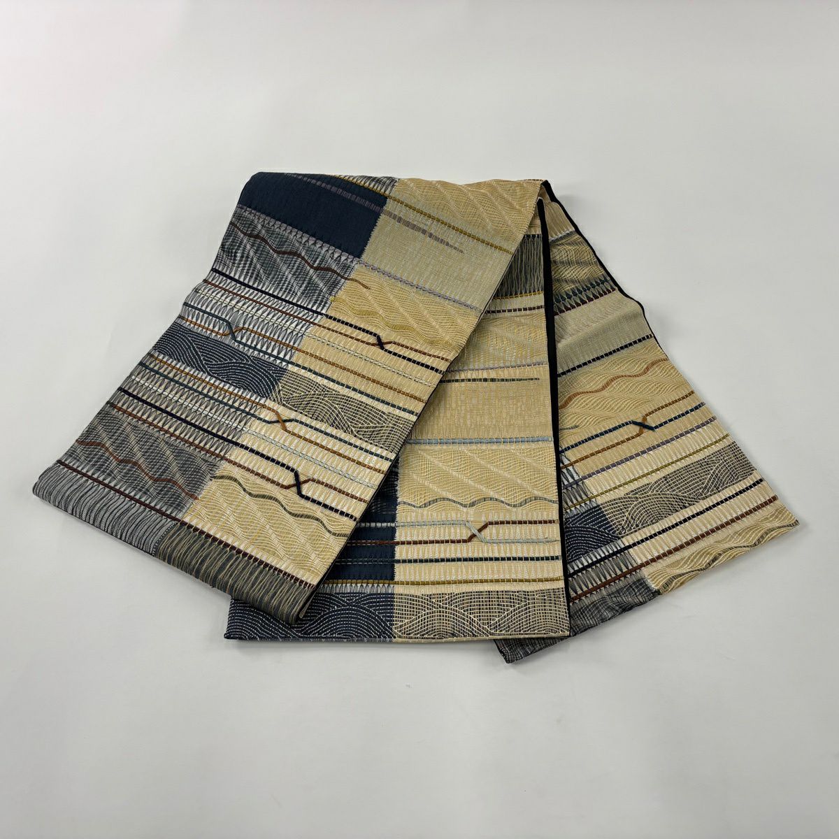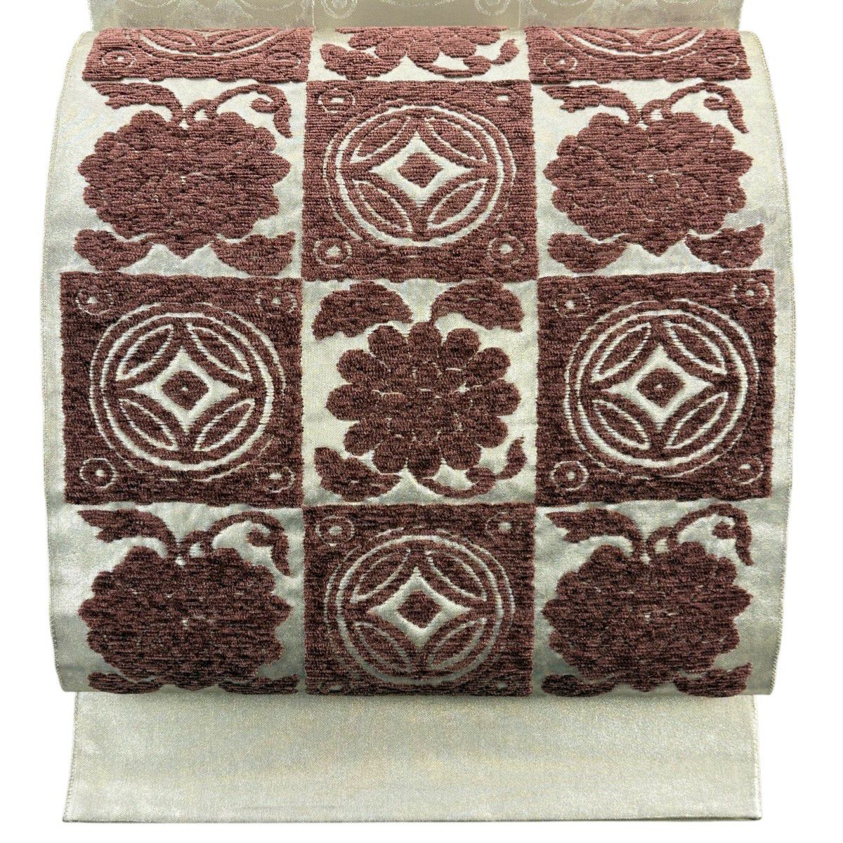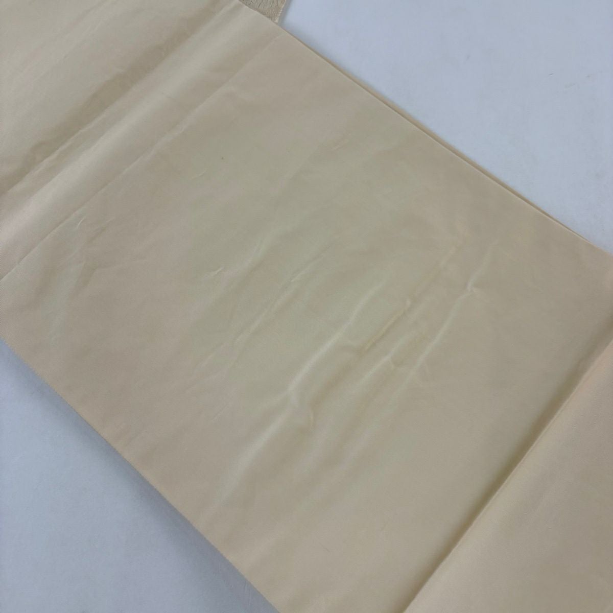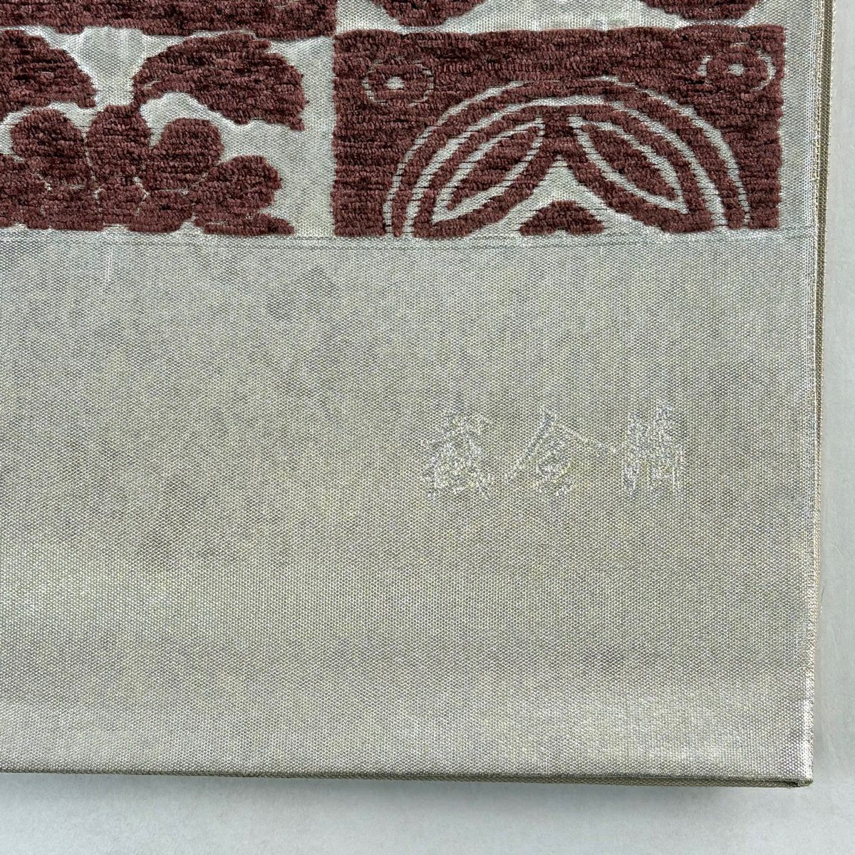 【美品】 名古屋帯 秀品 落款あり 茄子 縮緬 ベージュ 正絹