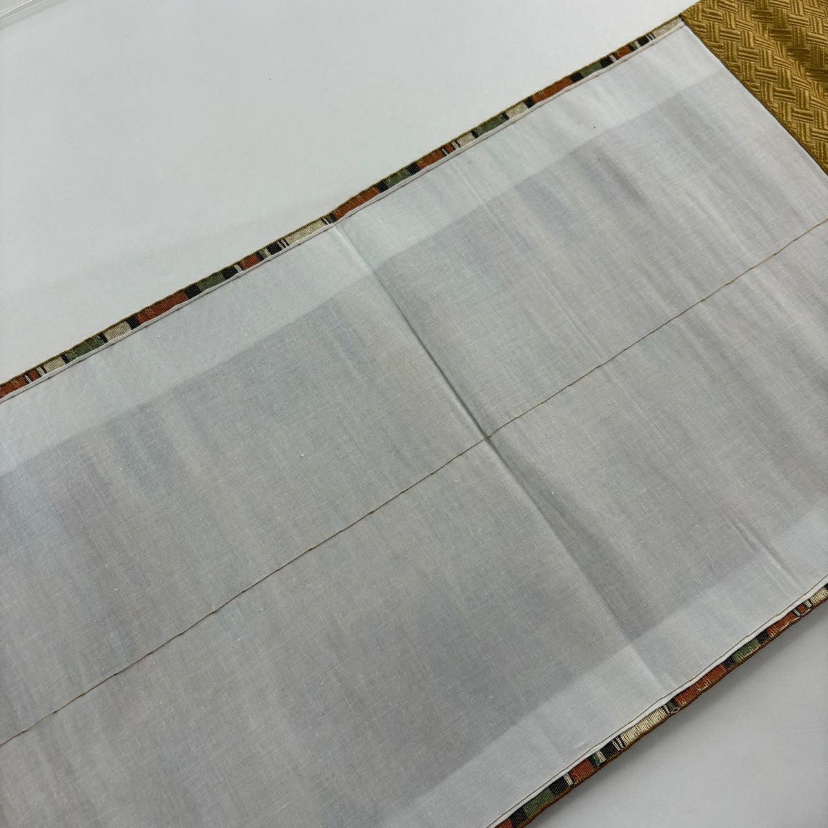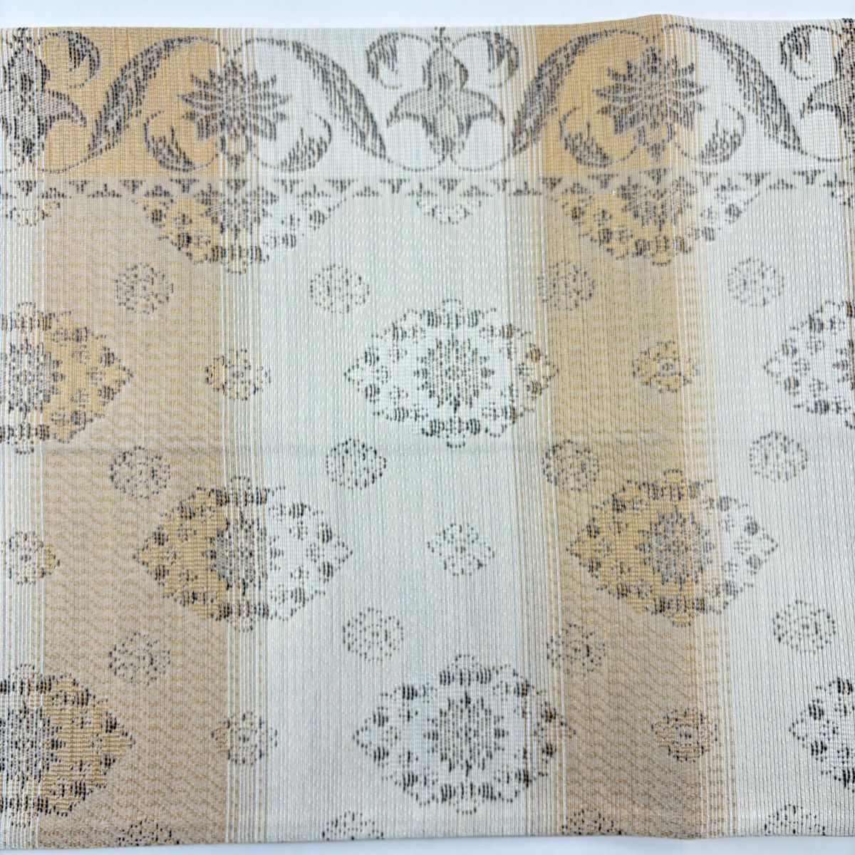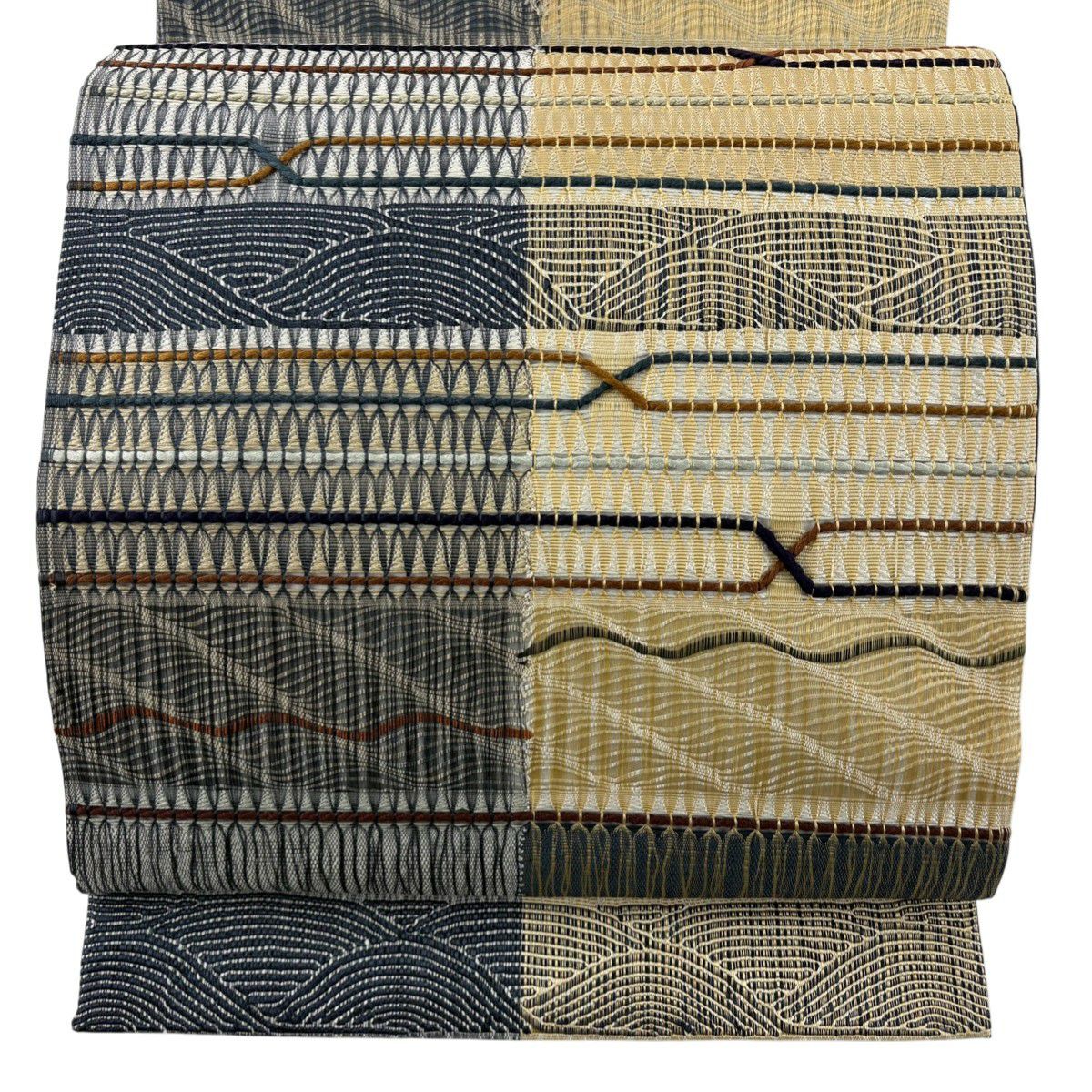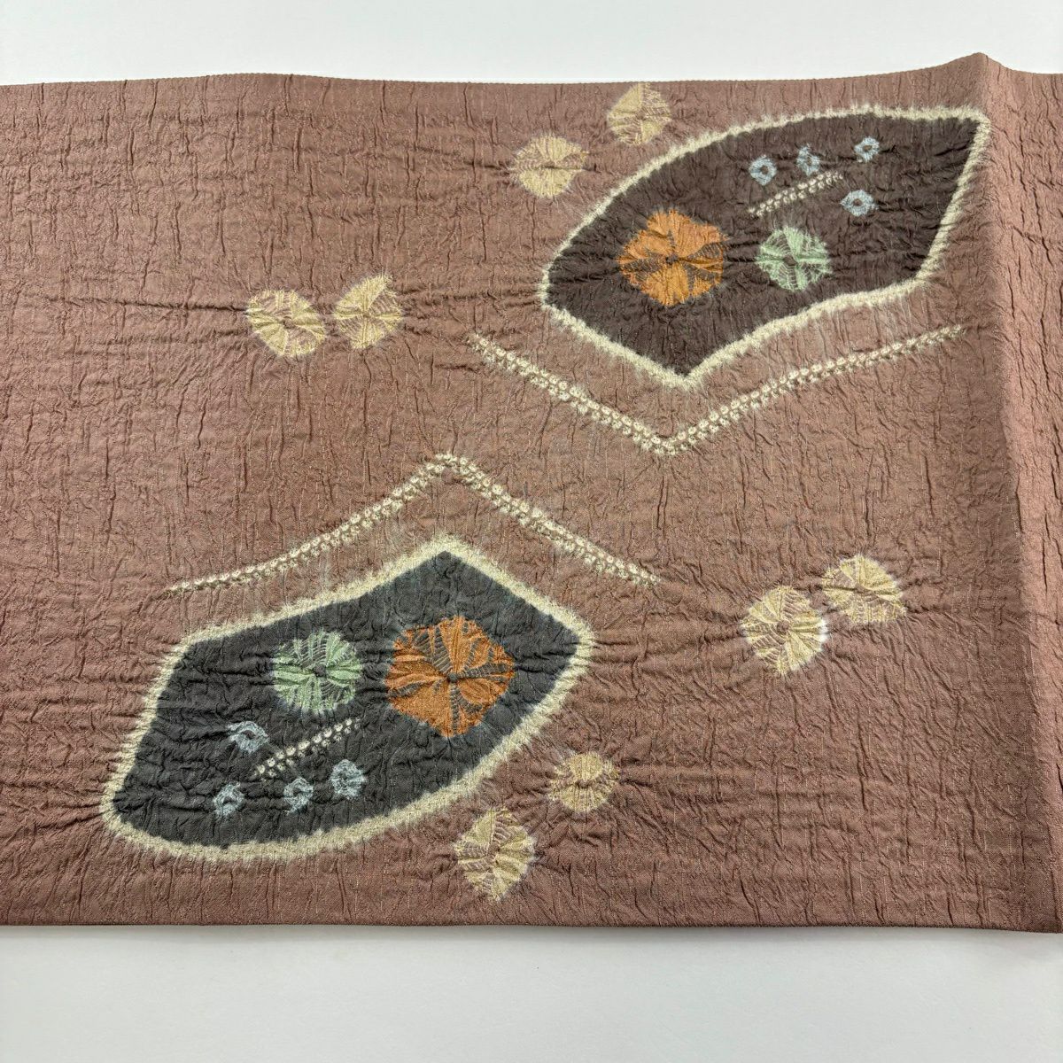 【美品】 名古屋帯 秀品 落款あり 茄子 縮緬 ベージュ 正絹