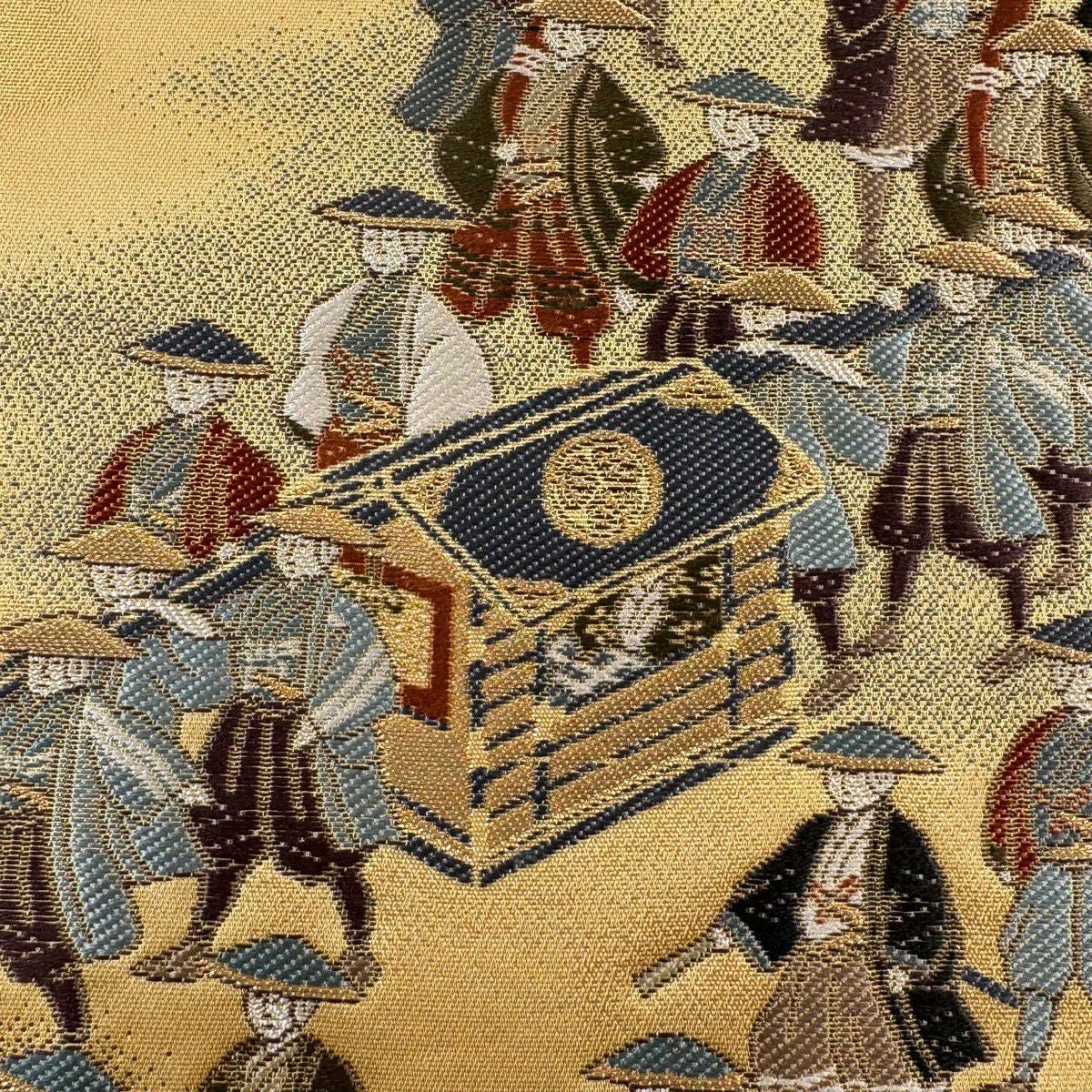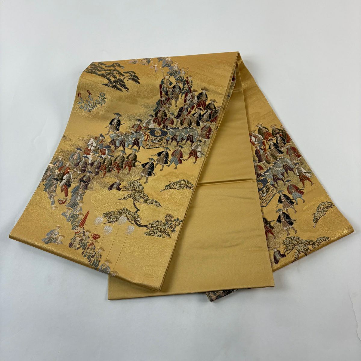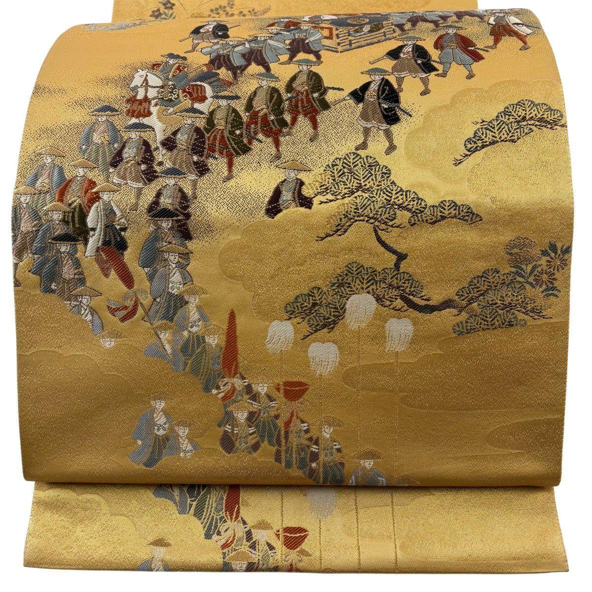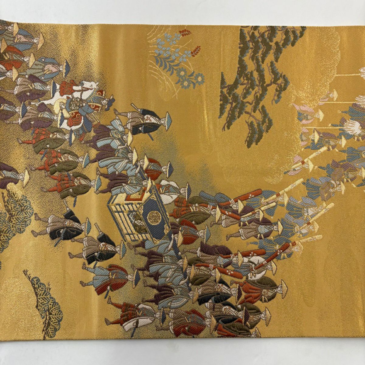【美品】 袋帯 秀品 松彩錦 大名行列 人物 箔 金色 六通 正絹