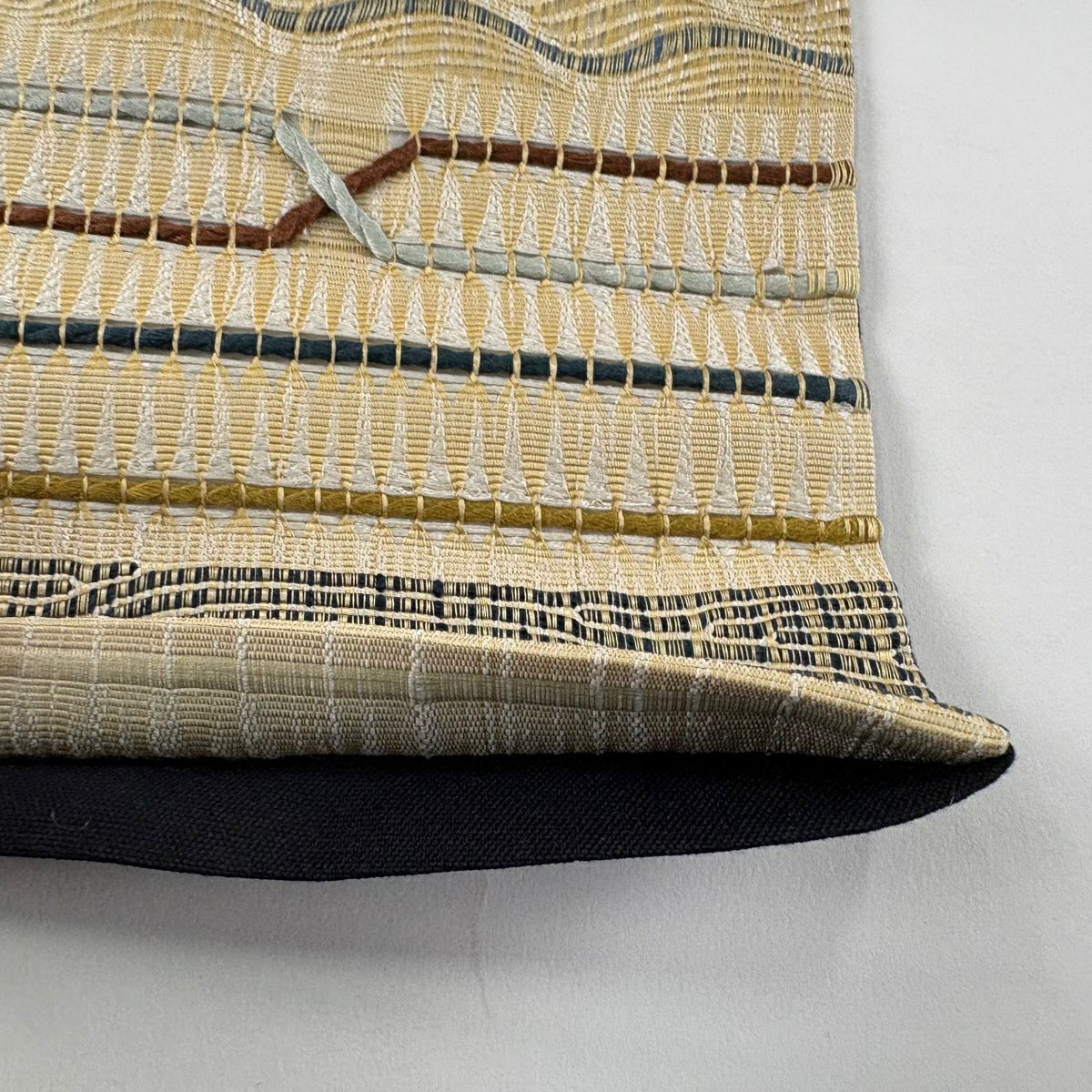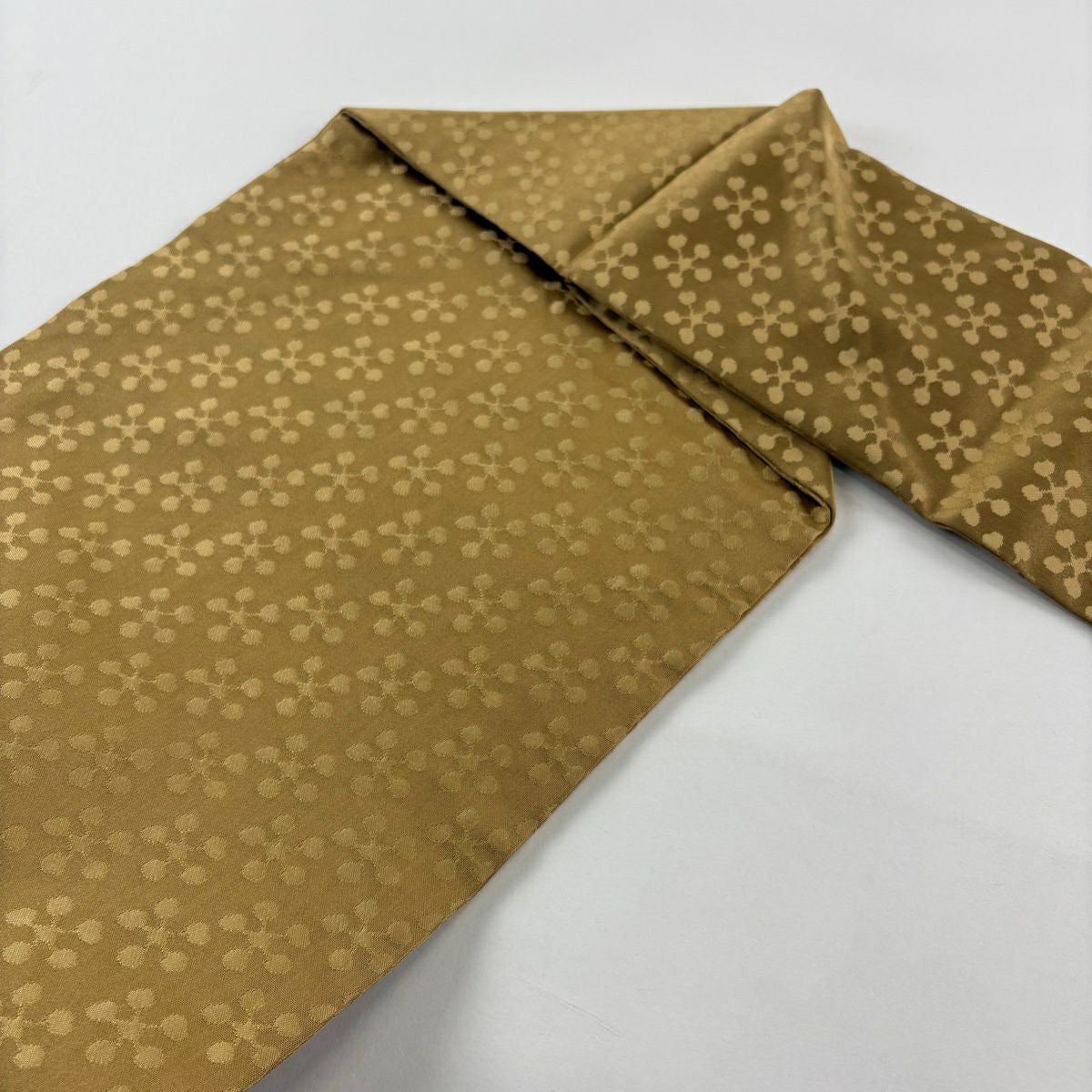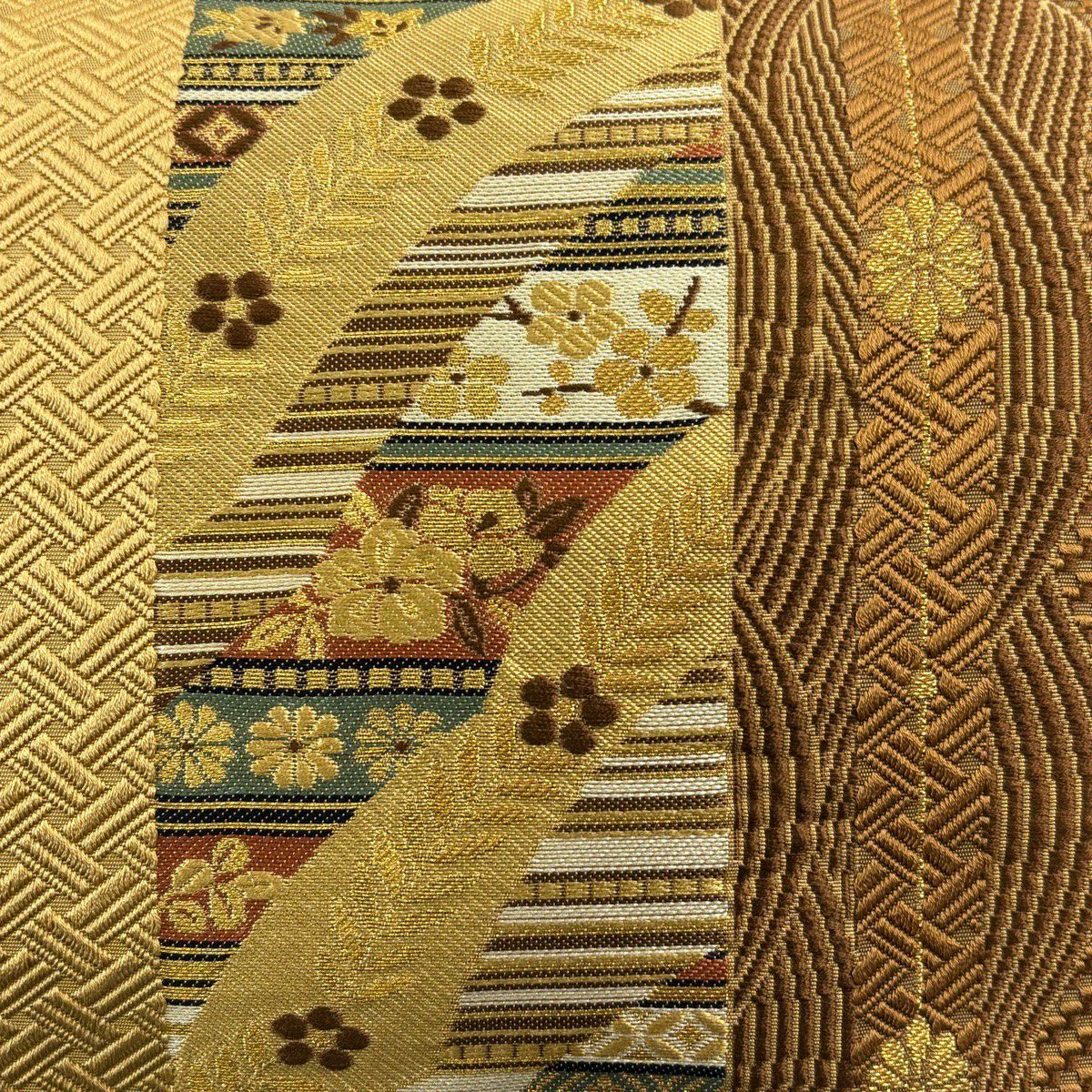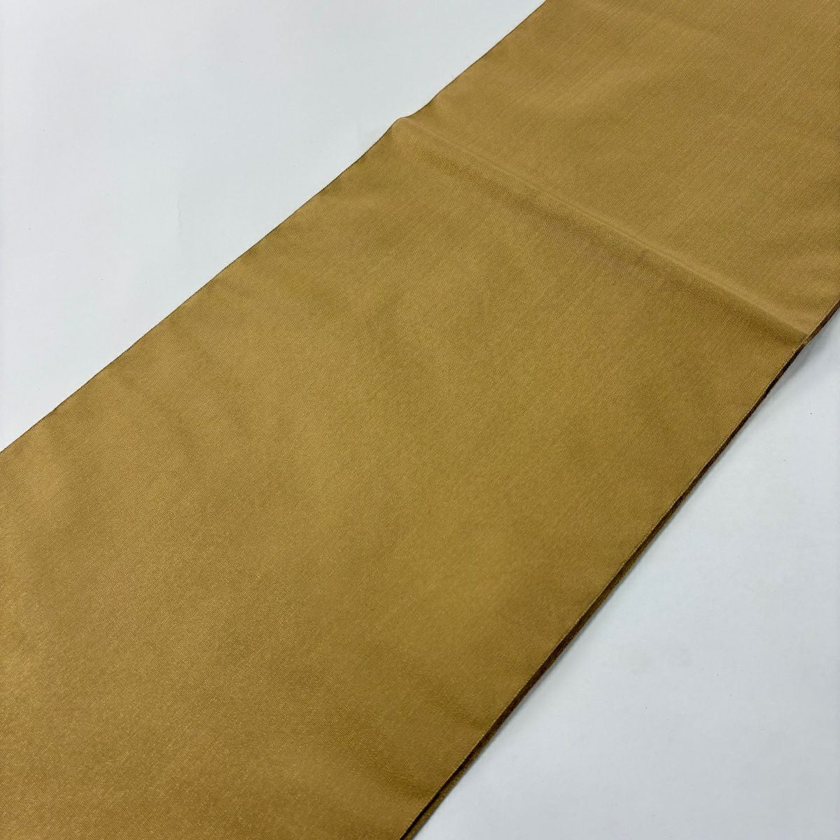 名古屋帯 秀品 八寸名古屋帯 松葉仕立て 縞 草花 金糸 山吹茶色 正絹