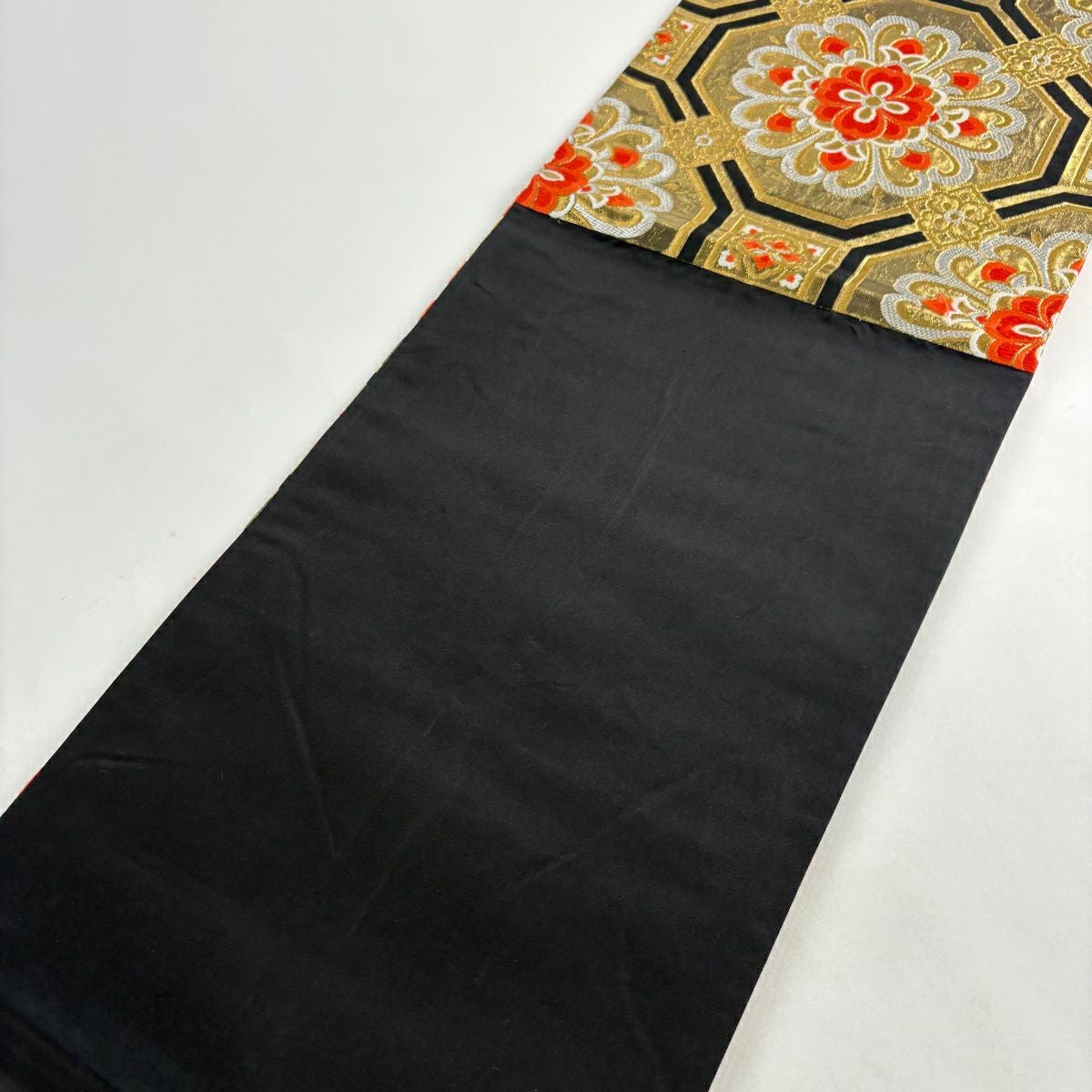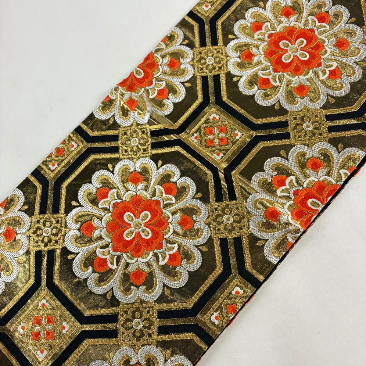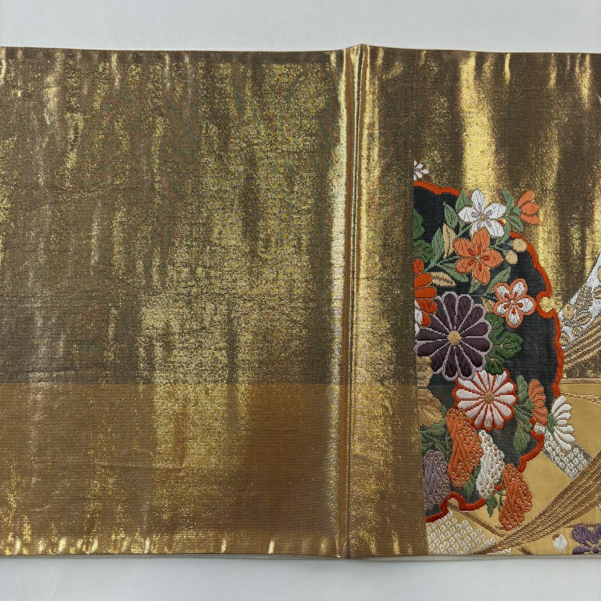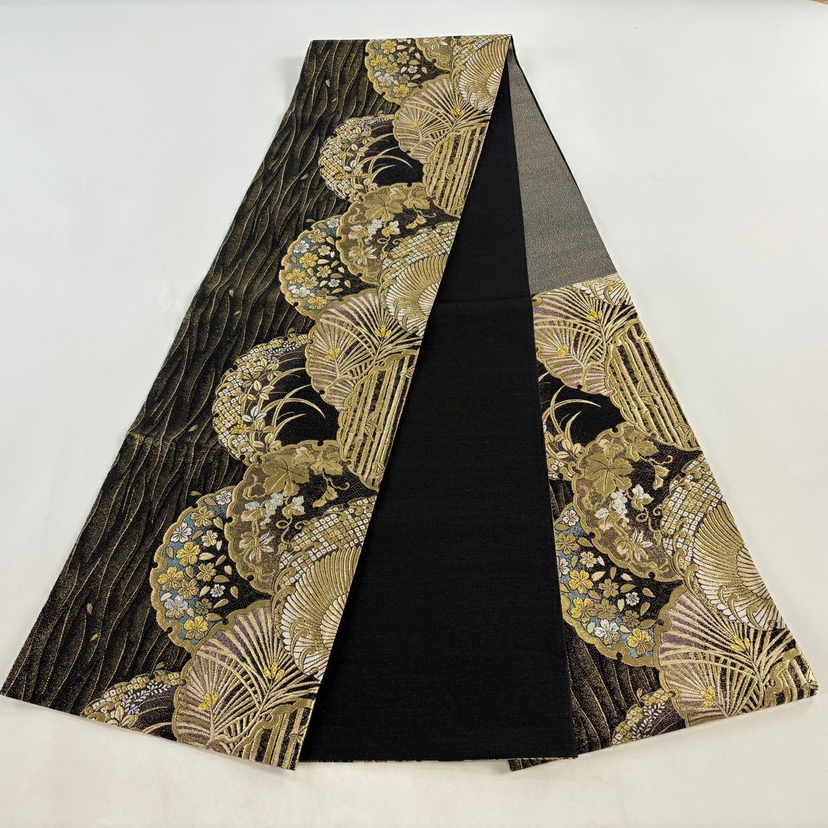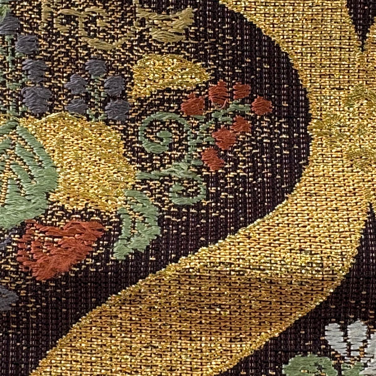 【美品】 袋帯 秀品 輝金錦 雪輪 草花 金糸 箔 黒 六通 正絹