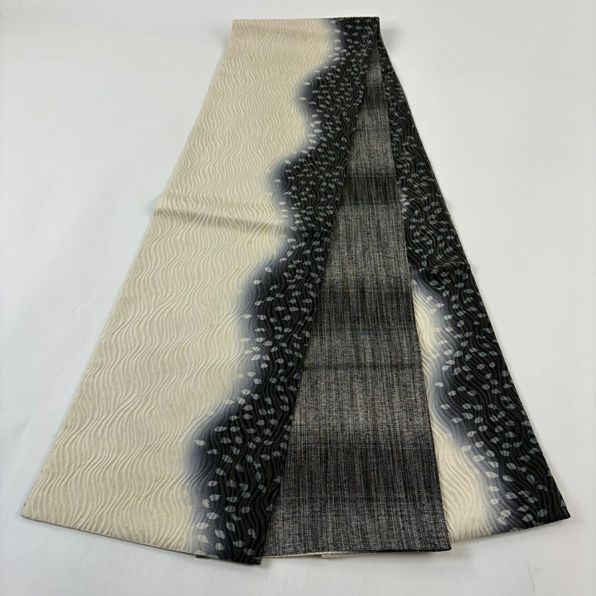 袋帯 秀品 桜の花びら よろけ縞 箔 ぼかし クリーム 全通 正絹