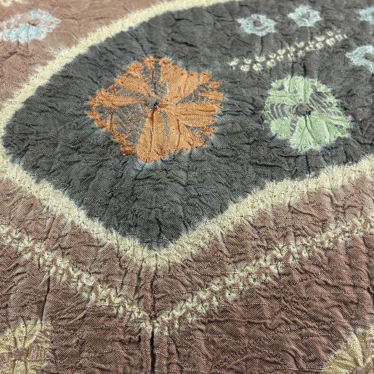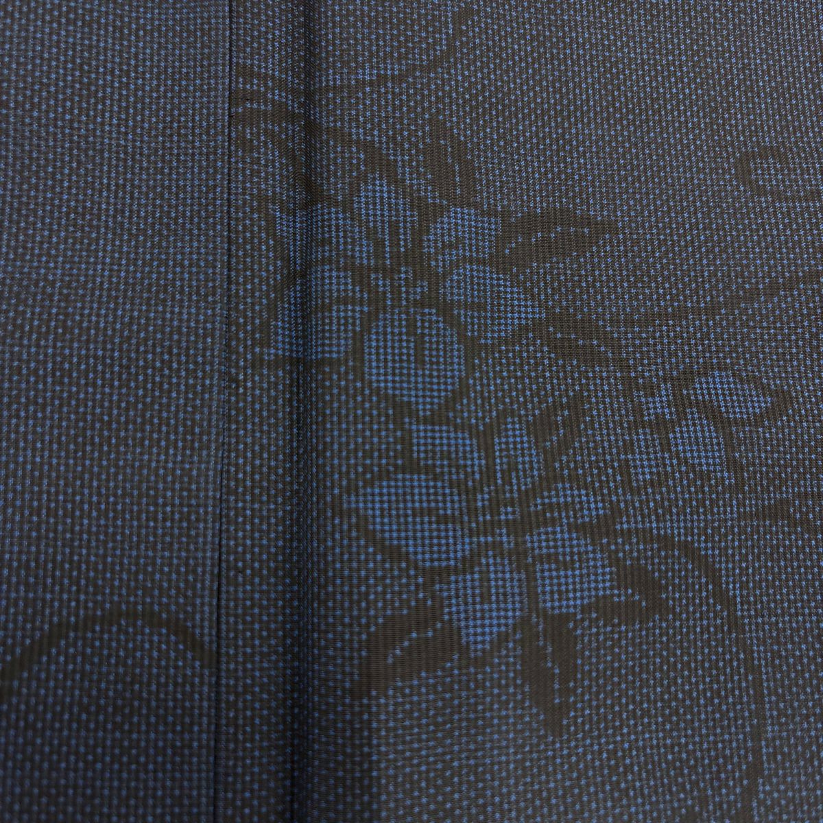 紬 身丈164cm 裄丈66cm M 袷 花唐草 焦茶色 正絹 秀品