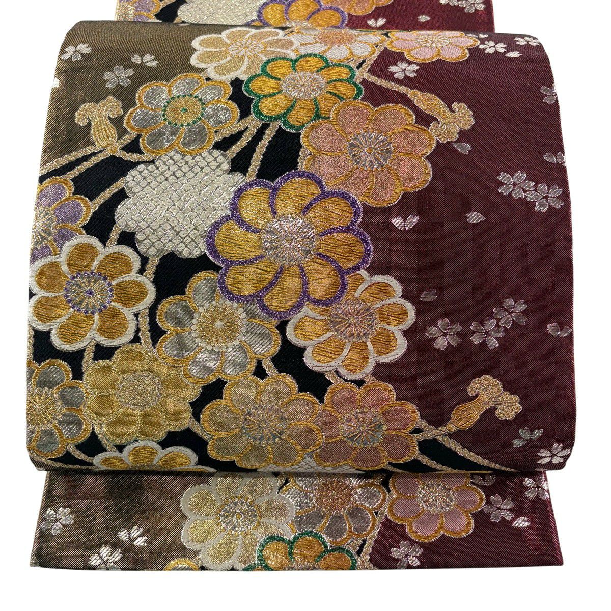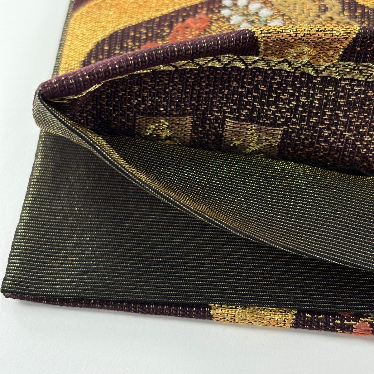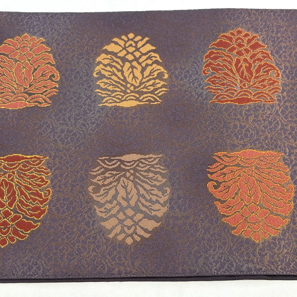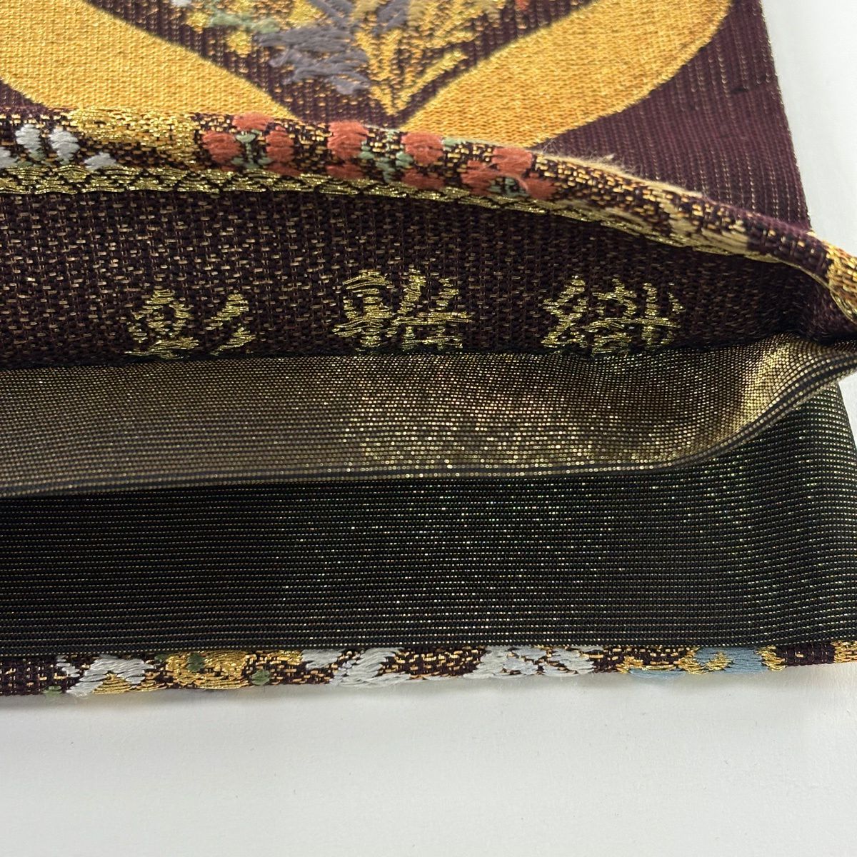 【美品】 袋帯 秀品 草花 花唐草 箔 金糸 濃紫 お太鼓柄 正絹