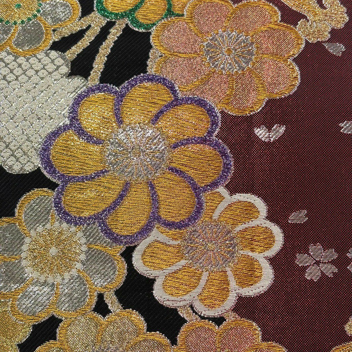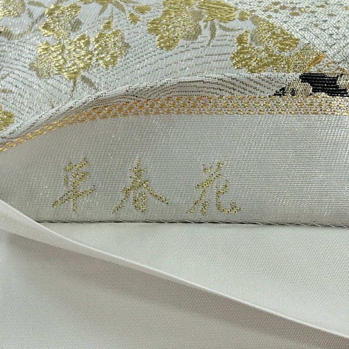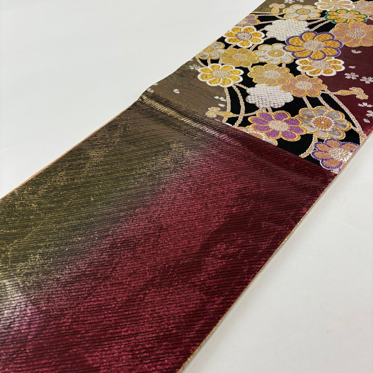 【美品】 袋帯 秀品 振袖向き 桜 組紐 金糸 箔 金色 六通 正絹