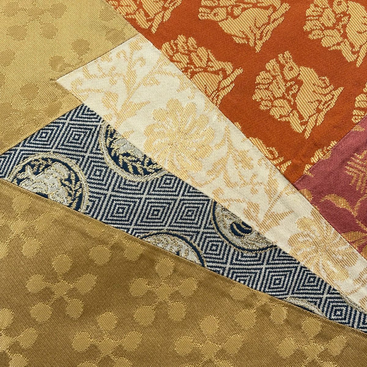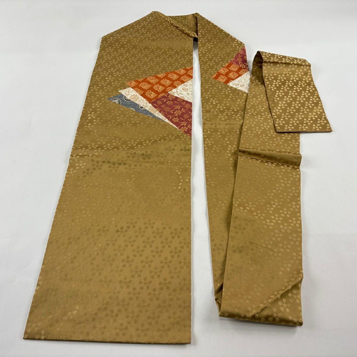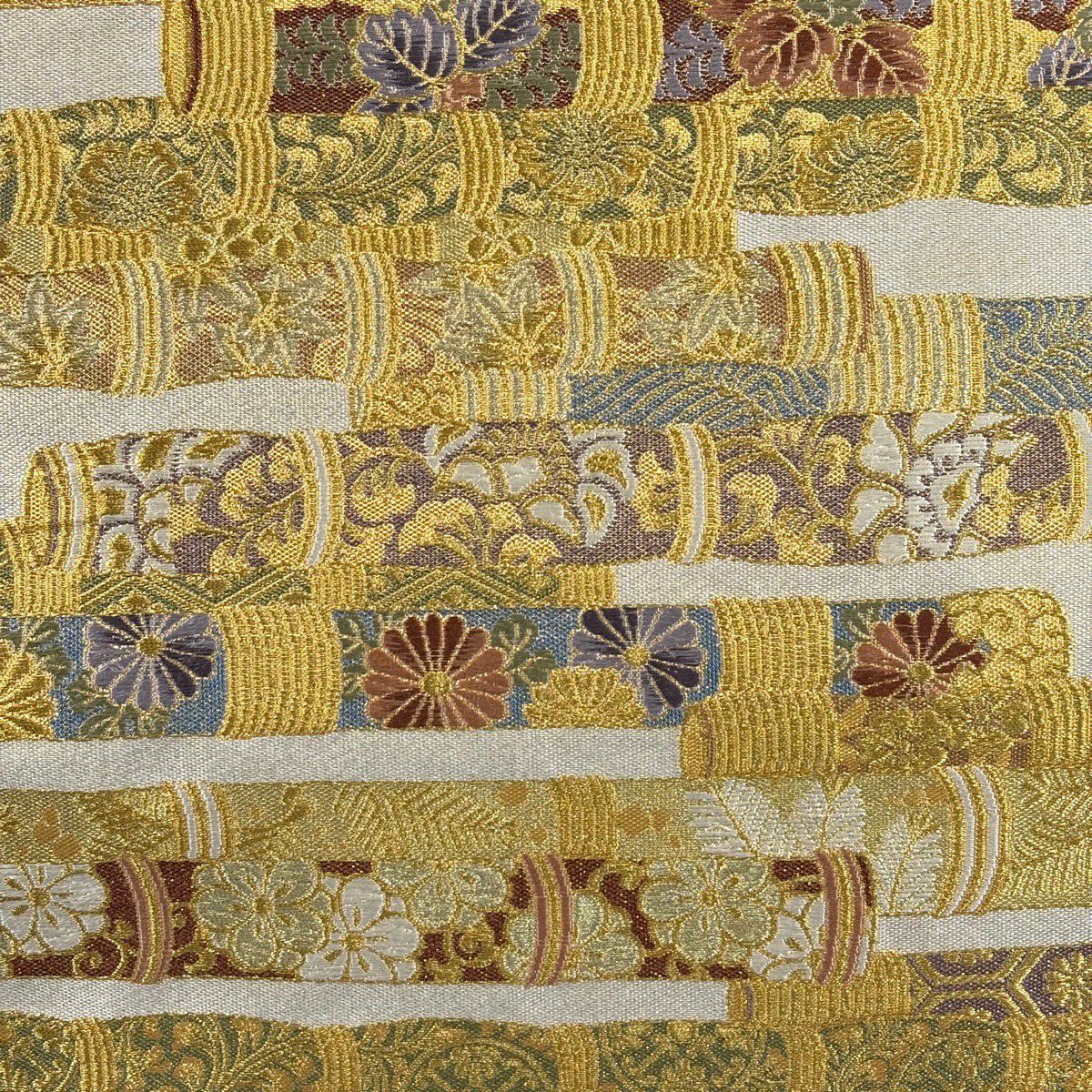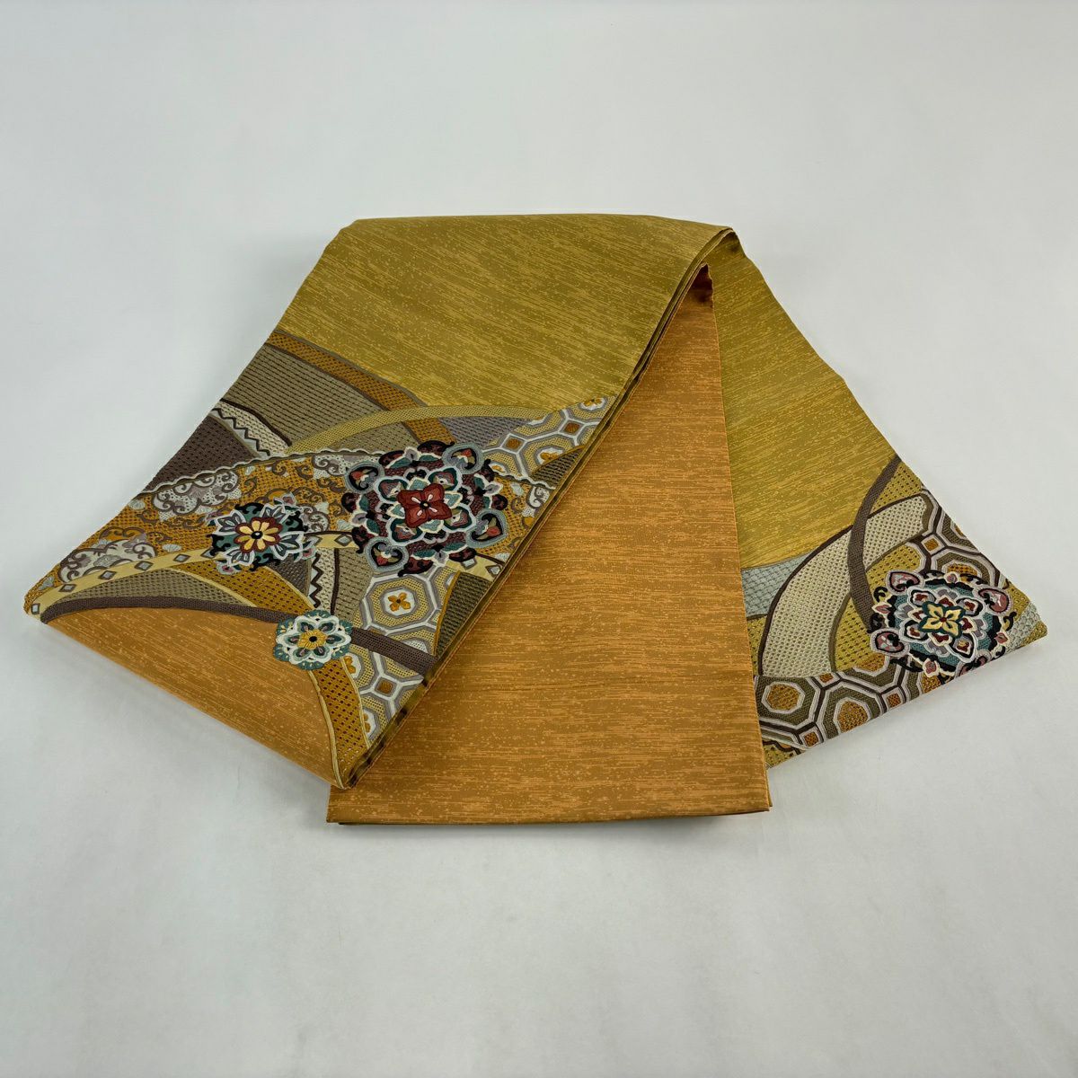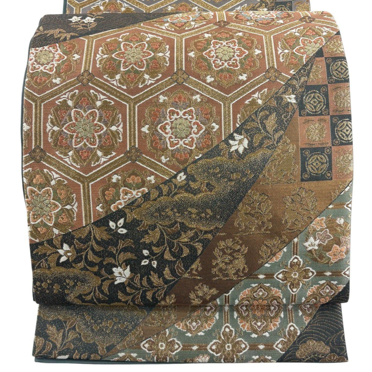 【美品】 名古屋帯 秀品 名物裂文様 梅鉢 切嵌め 箔 黄土色 正絹