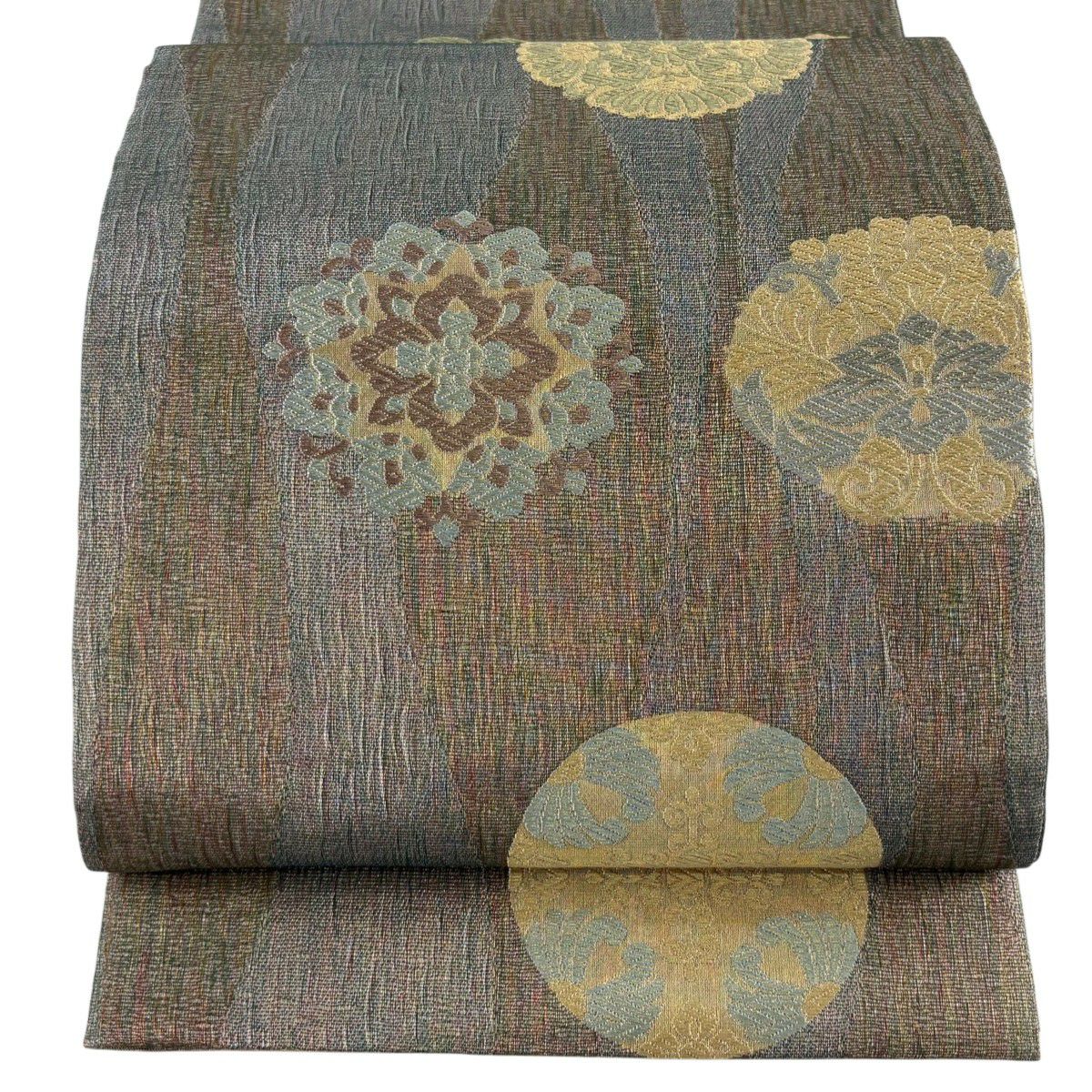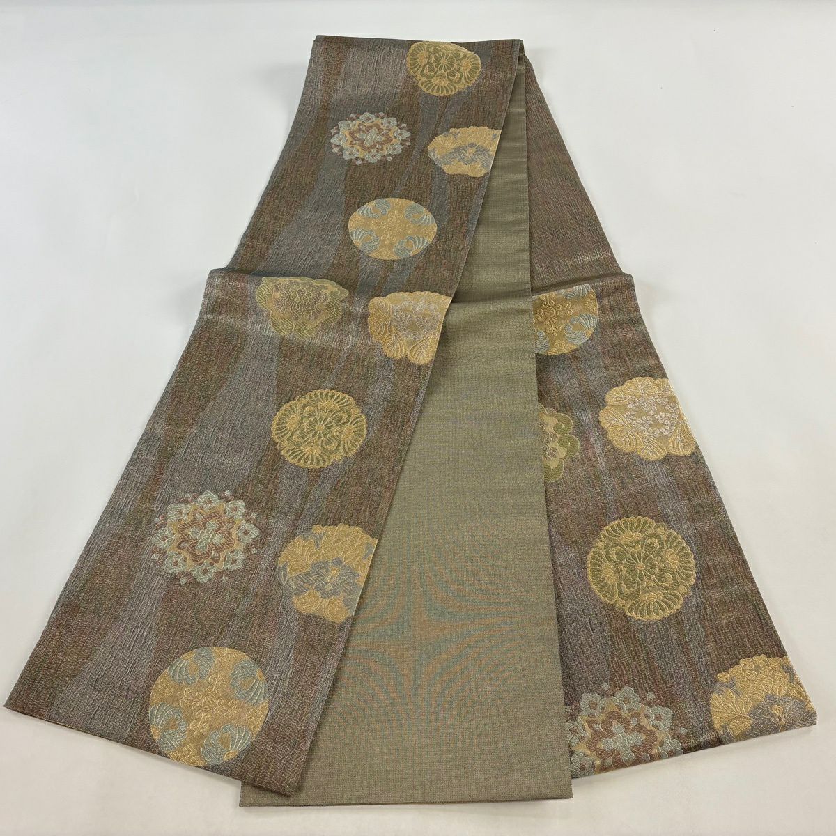 【美品】 袋帯 秀品 華文 浮線綾 金銀糸 唐織 灰茶 六通 正絹
