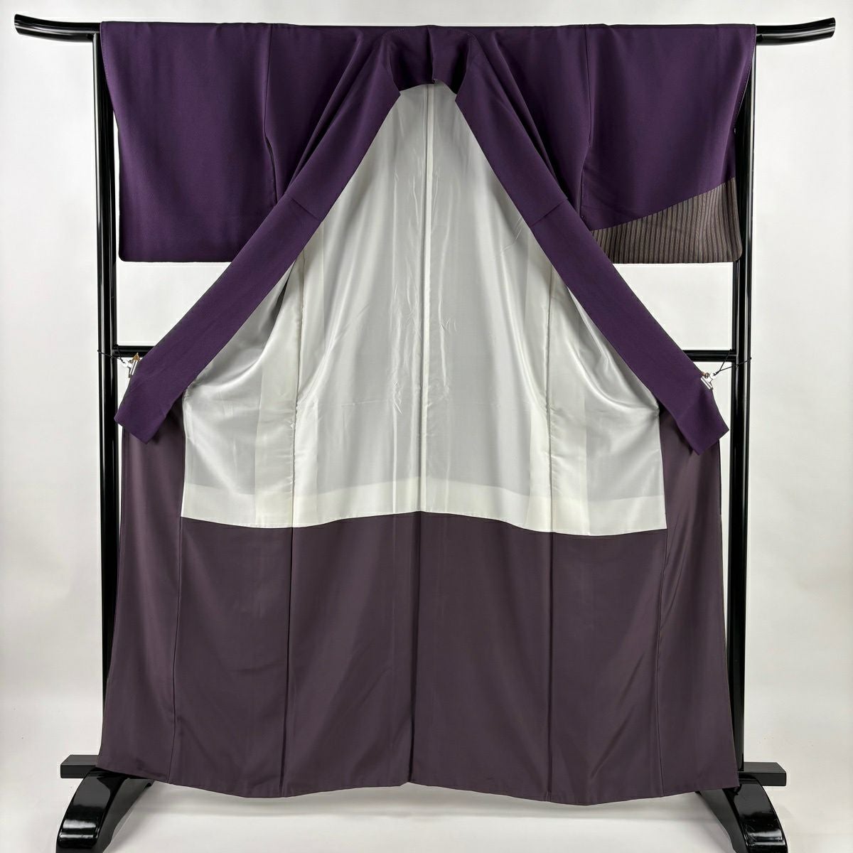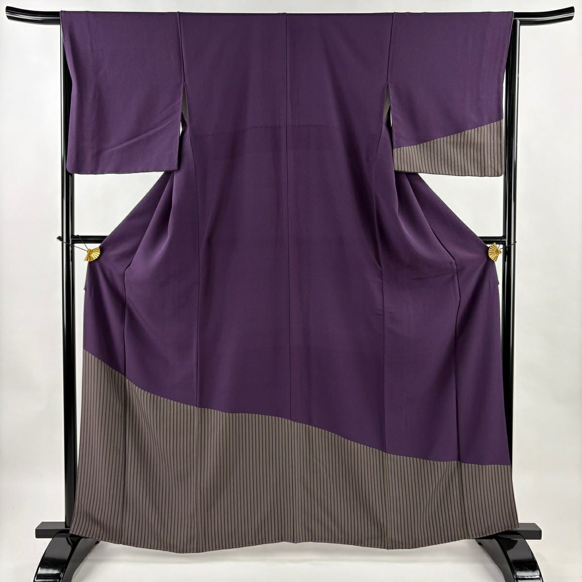 付下げ 身丈163cm 裄丈65.5cm M 袷 縞 紫 正絹 秀品