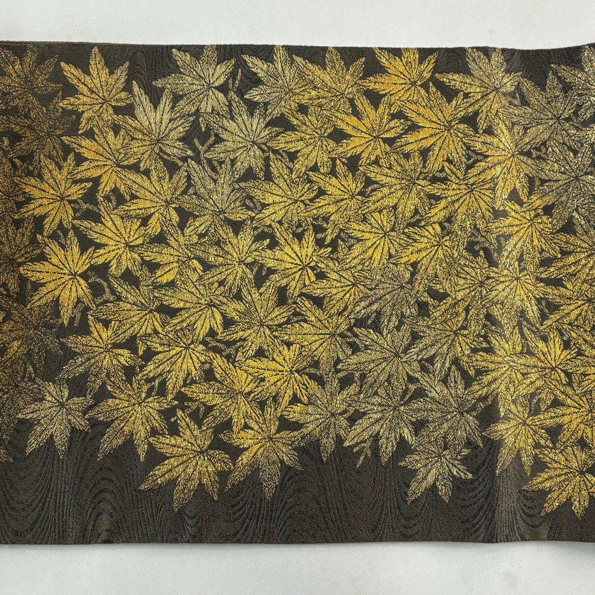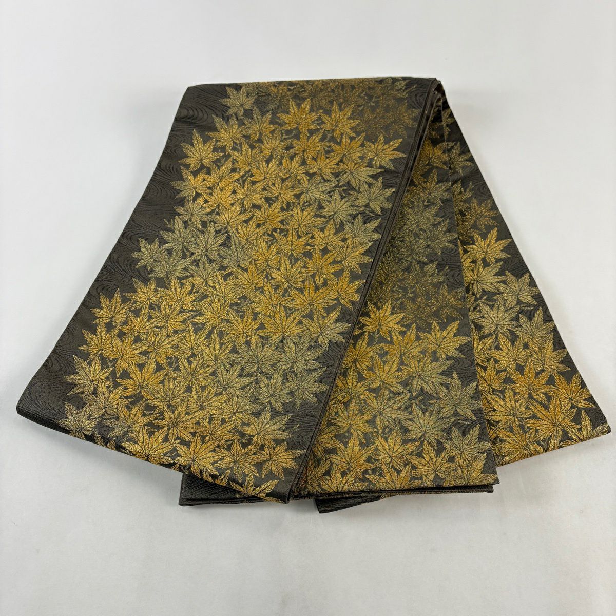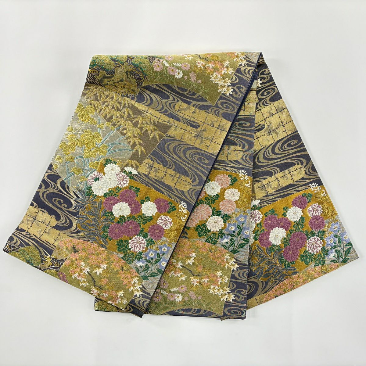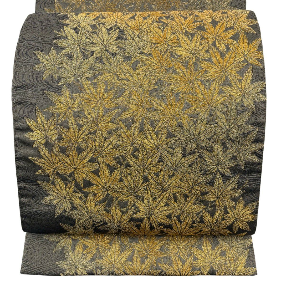 【美品】 袋帯 秀品 ますいわ屋 葉柄 流水 箔 墨色 六通 正絹