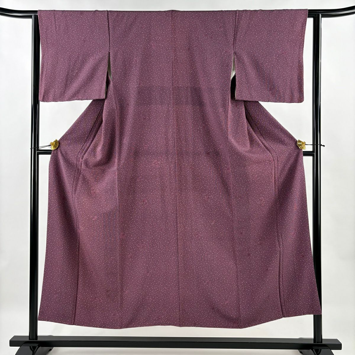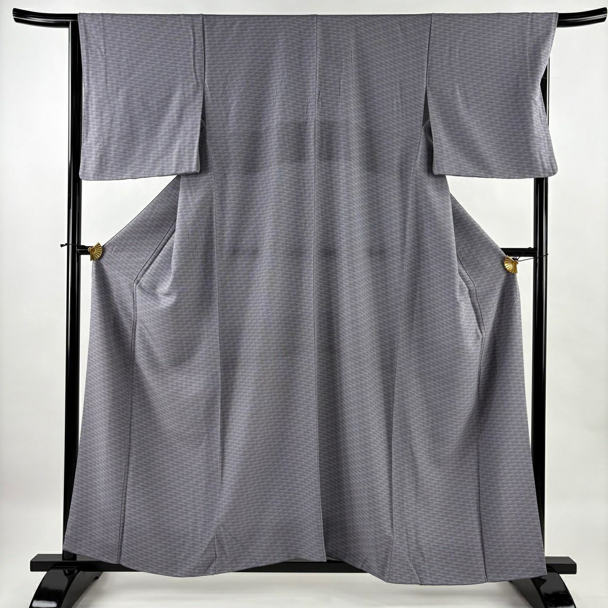 小紋 身丈159cm 裄丈67cm M 袷 幾何学 灰紫 正絹 秀品