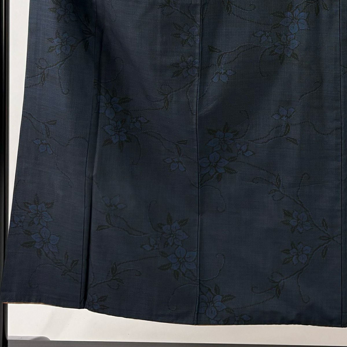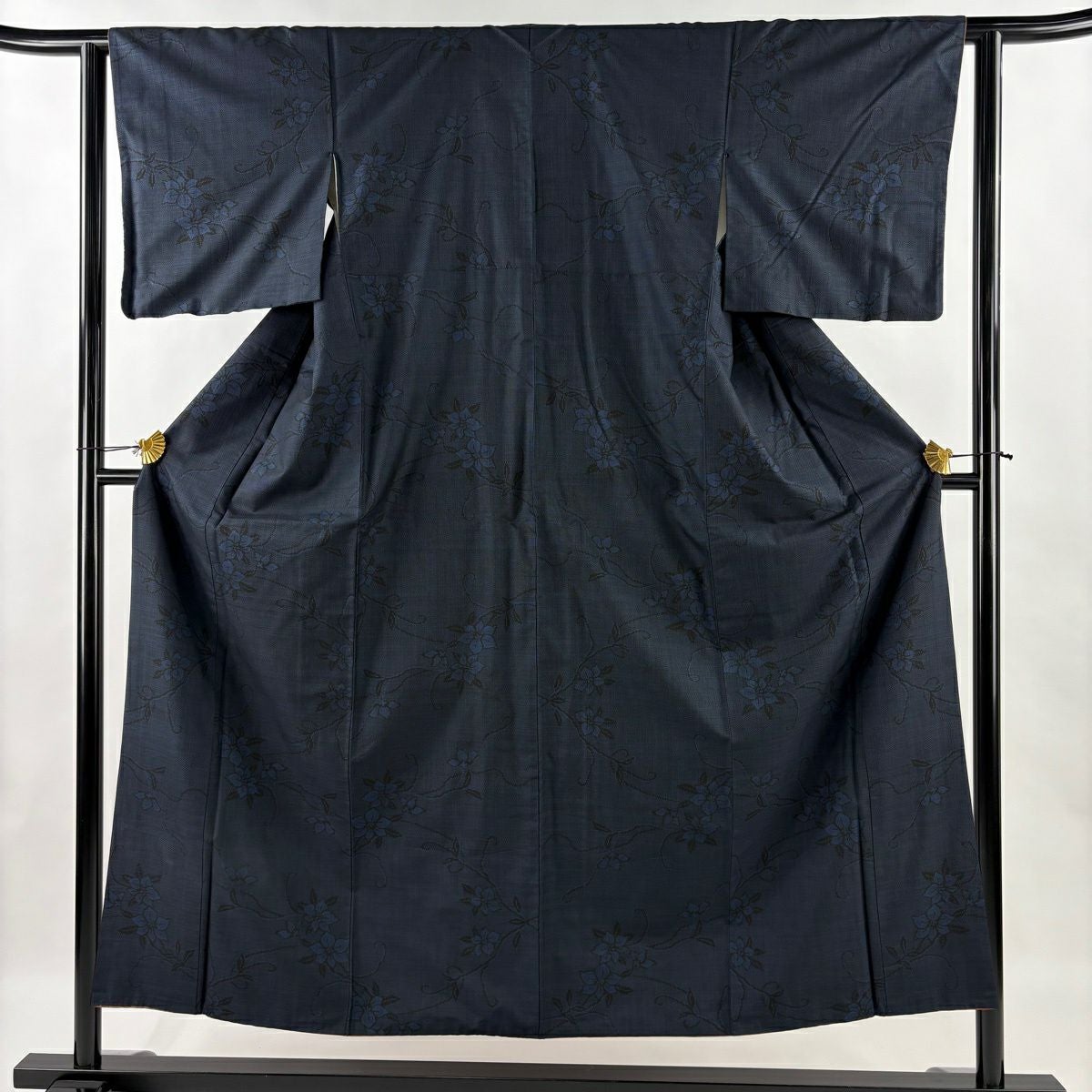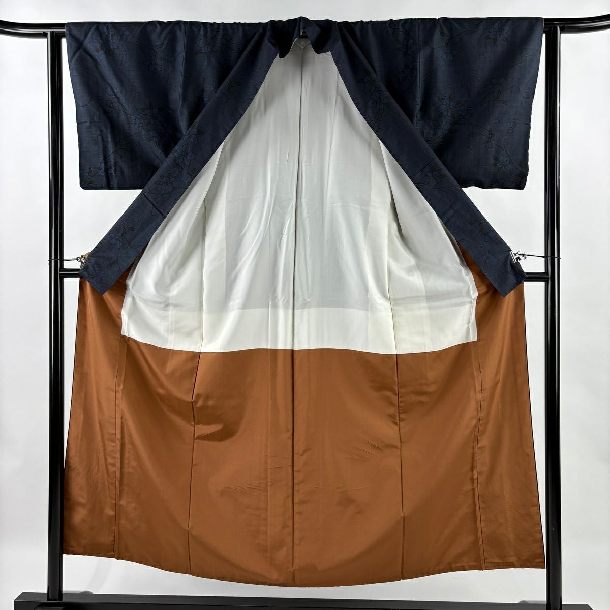 紬 身丈153.5cm 裄丈62cm S 袷 草花 紺色 正絹 秀品