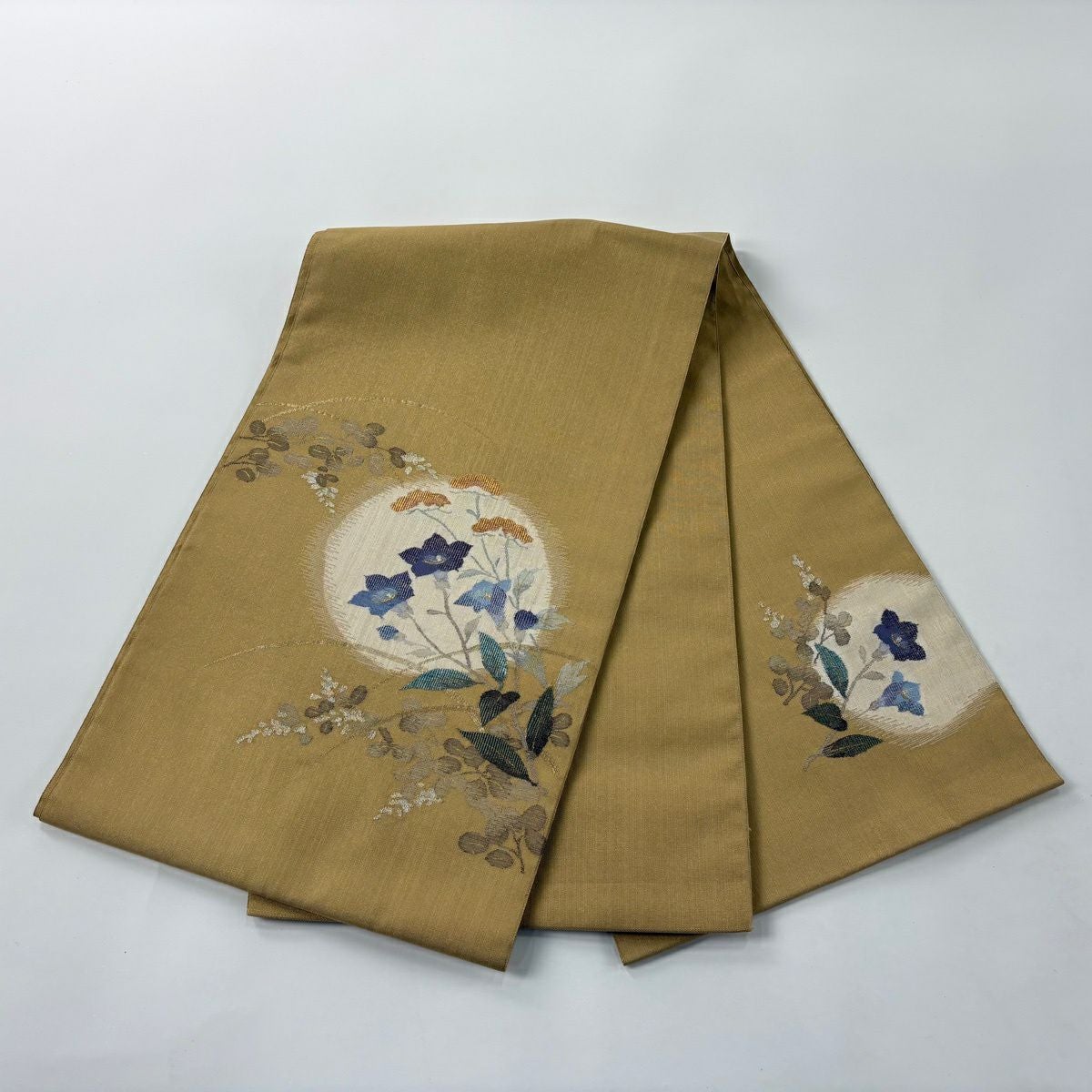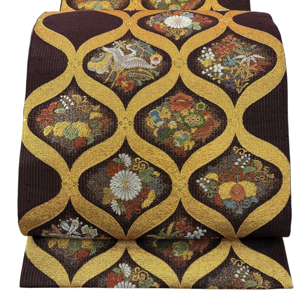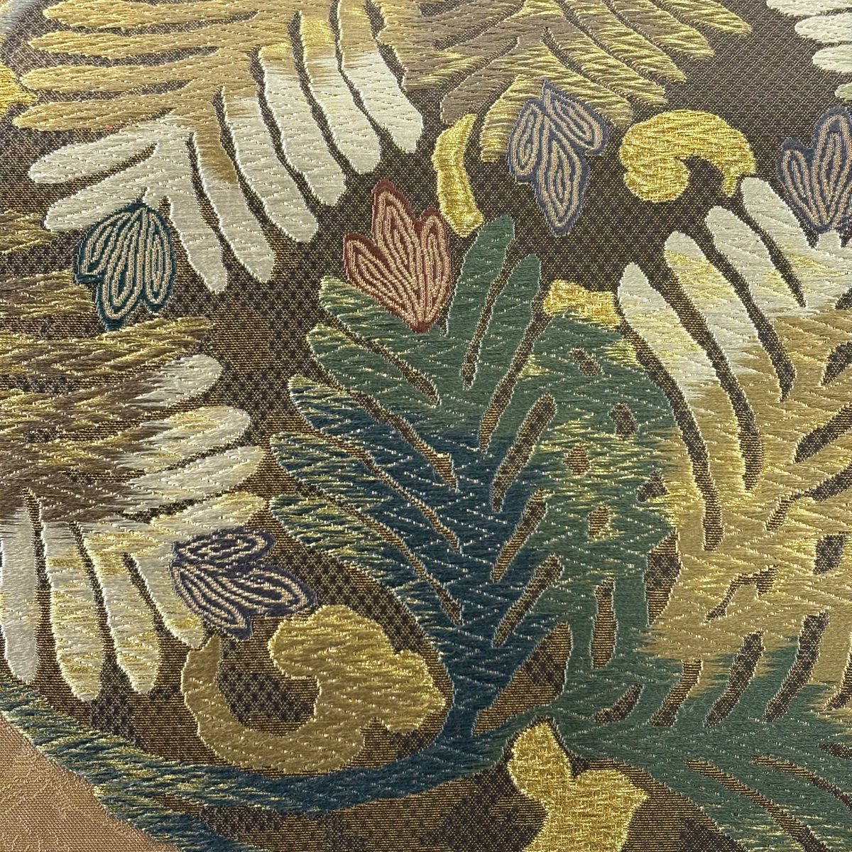 【美品】 袋帯 秀品 華文 蜀江文 刺繍 山吹茶色 お太鼓柄 正絹