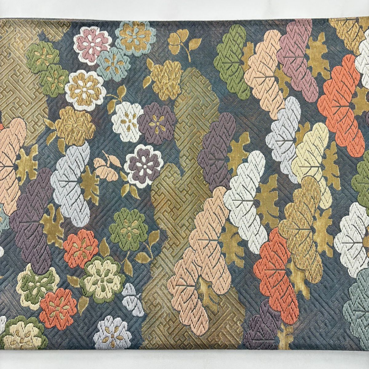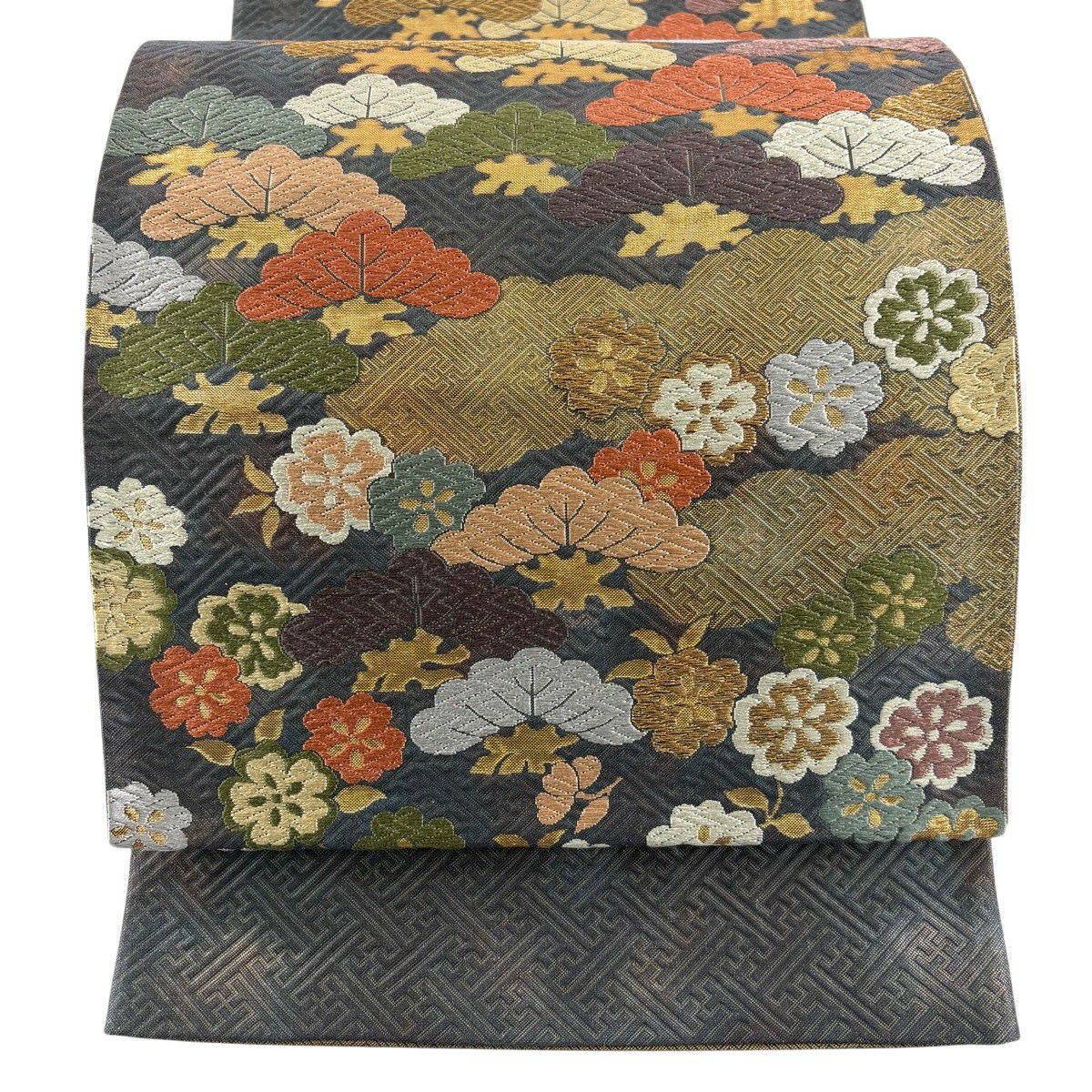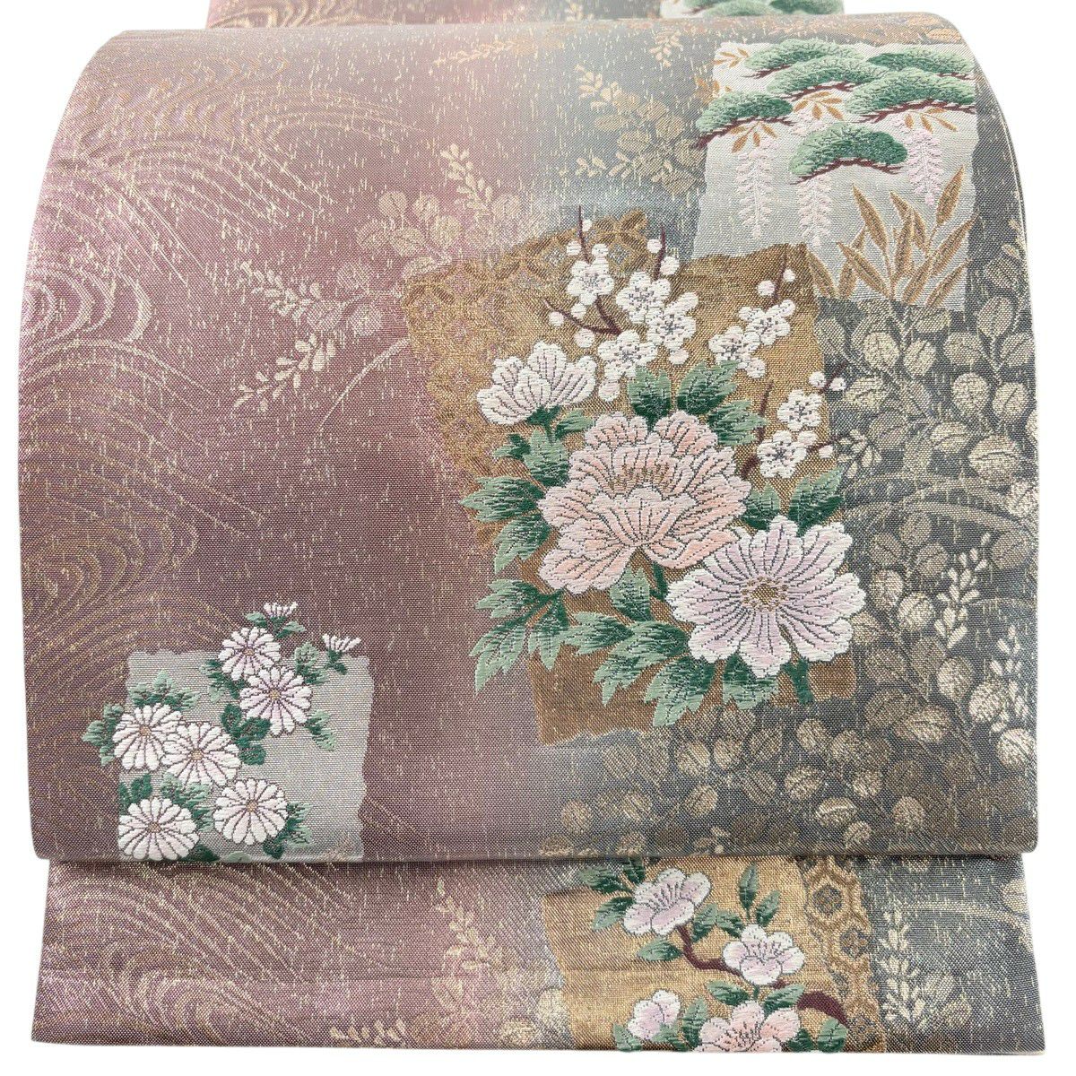 30%OFF 袋帯 秀品 桜 菊 金銀糸 灰色 六通 正絹 K30