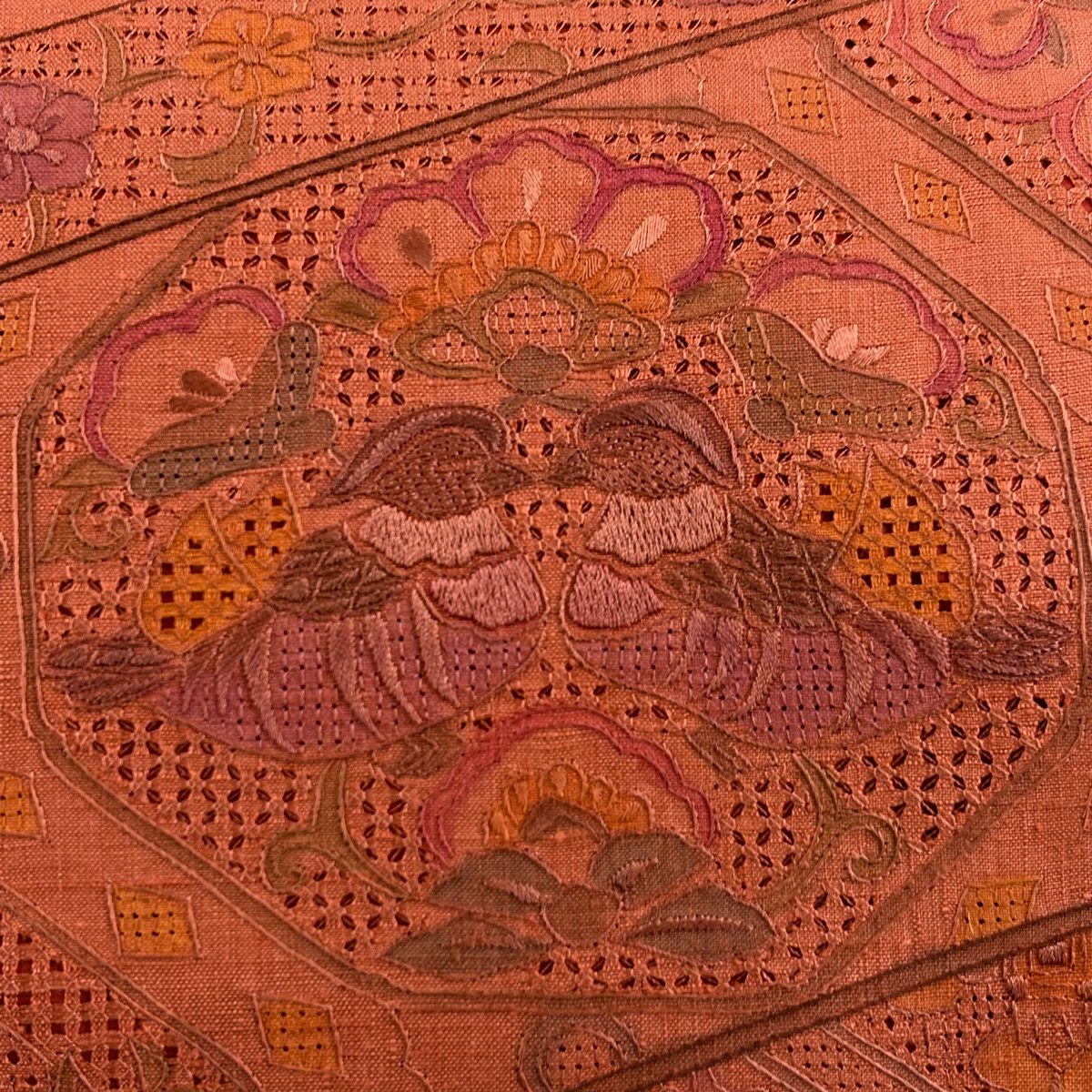 30%OFF 名古屋帯 秀品 紬地 草花 刺繍 薄紫 正絹 K30