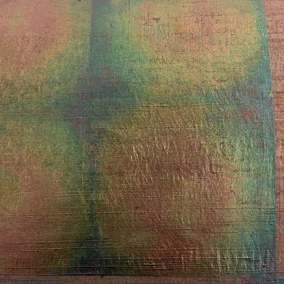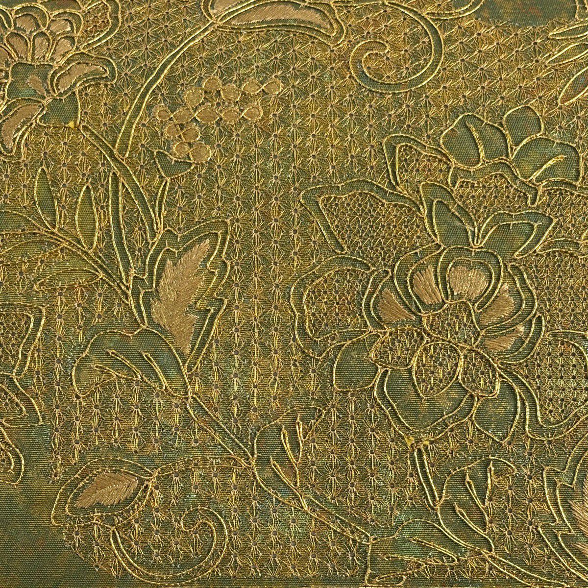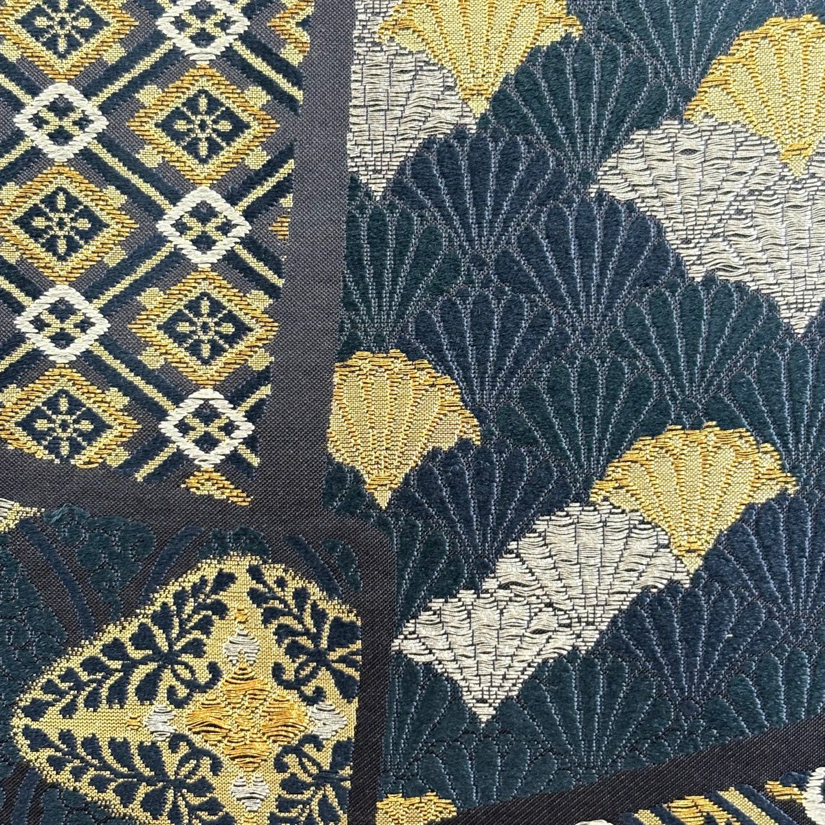 30%OFF 袋帯 秀品 幾何学 箔 深緑 お太鼓柄 正絹 K30