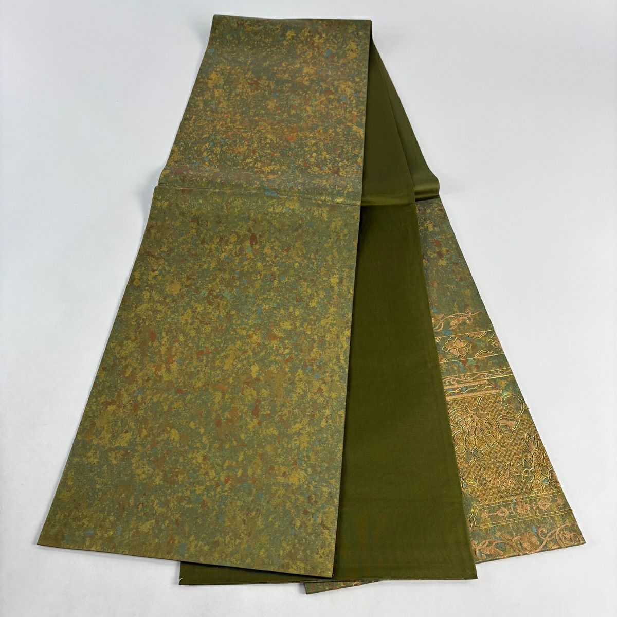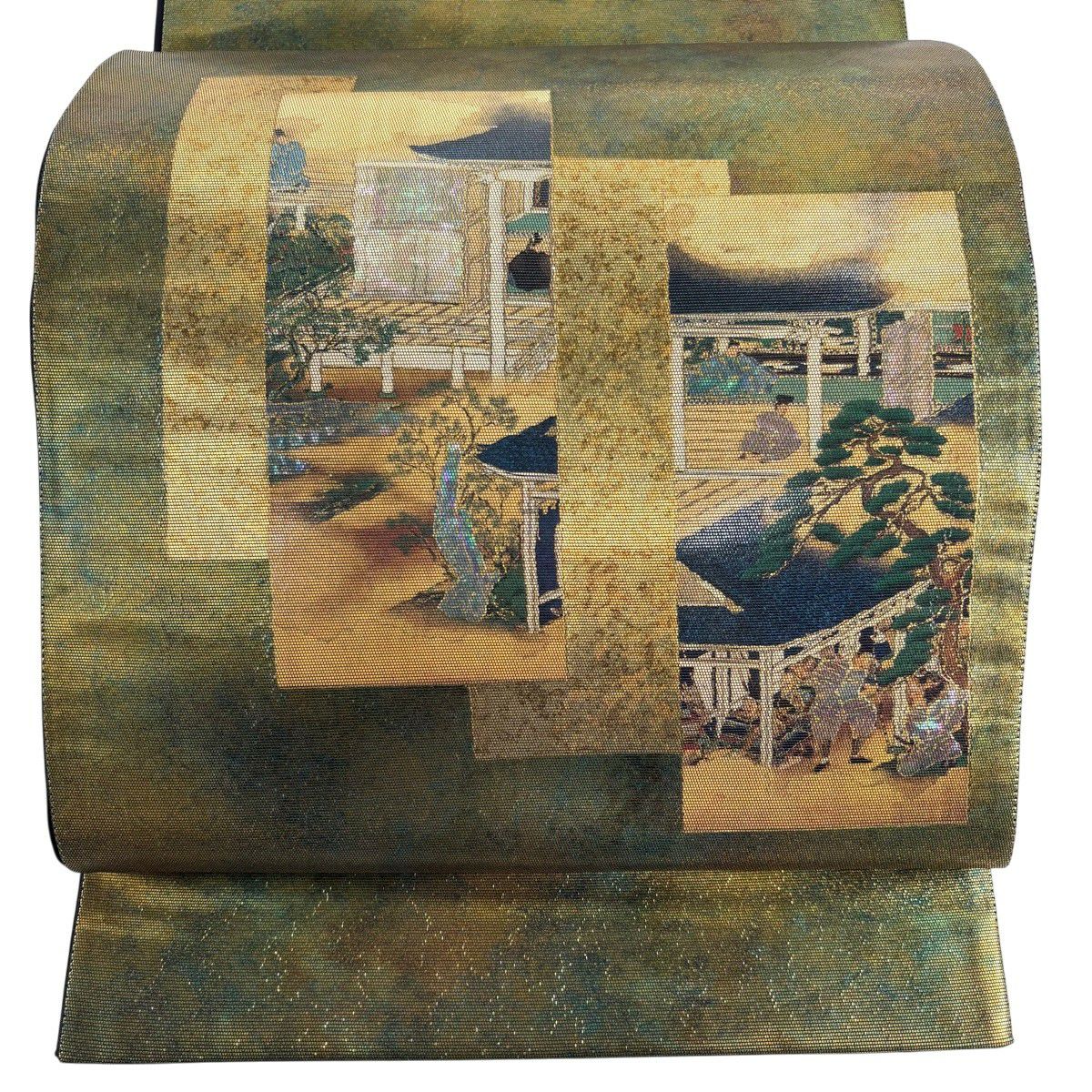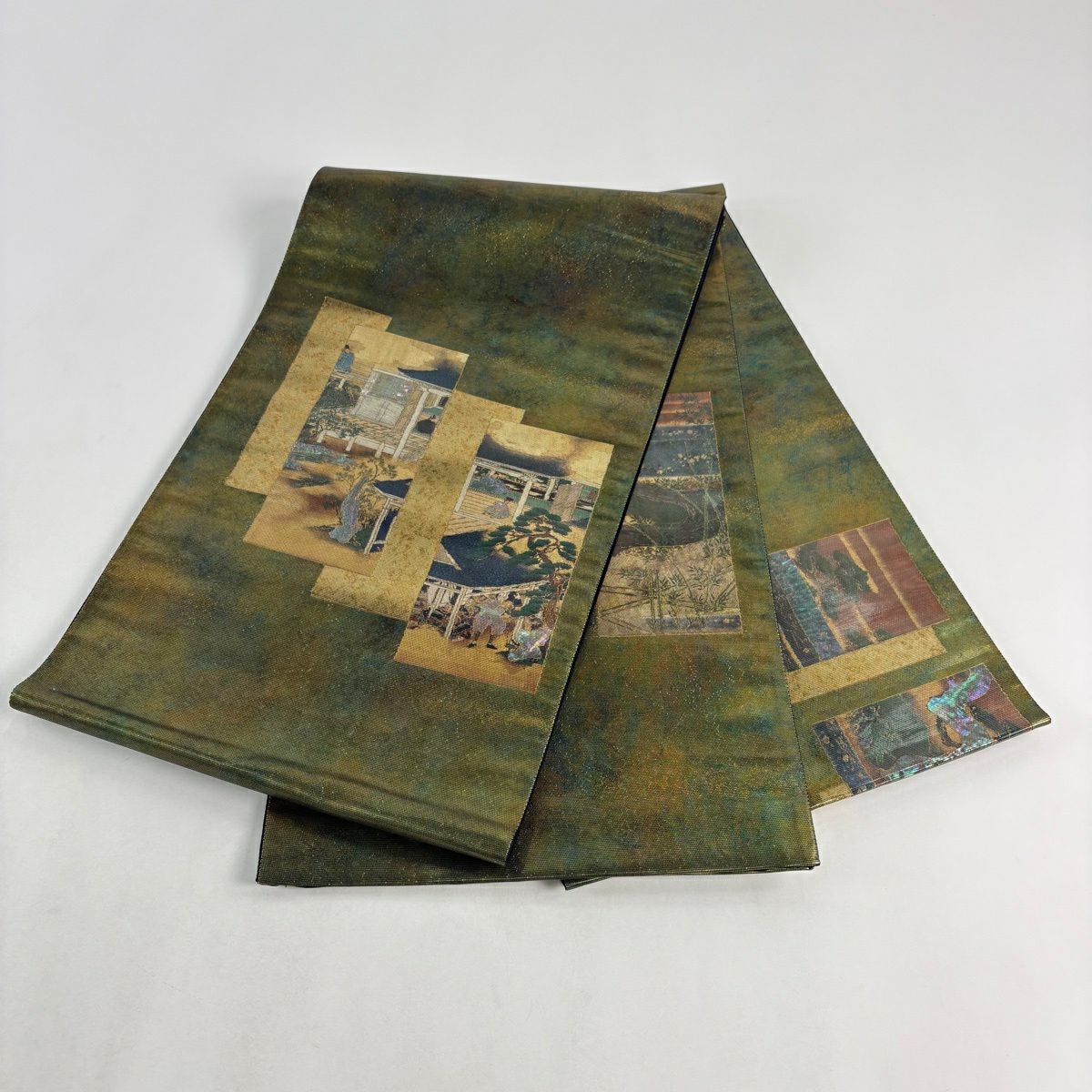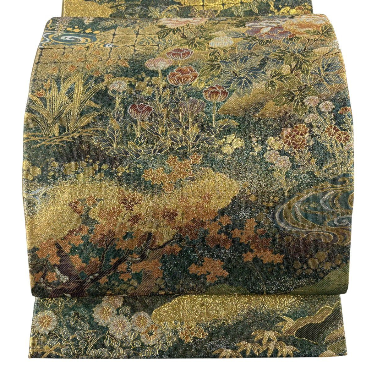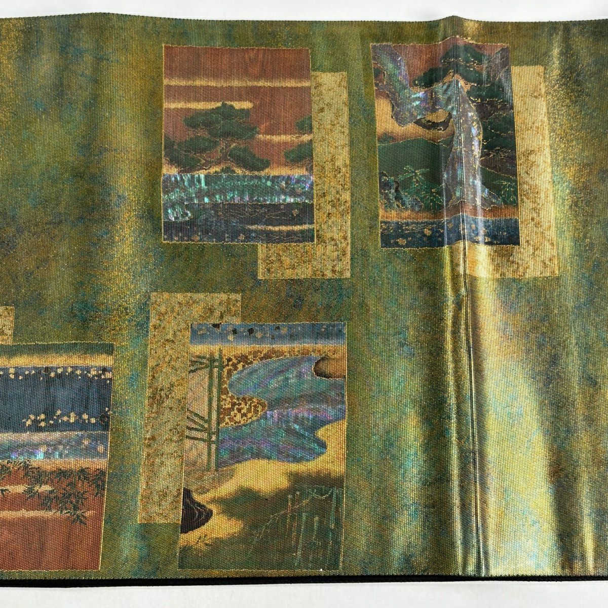 30%OFF 【美品】 袋帯 秀品 山並み 箔 青緑 正絹 K30