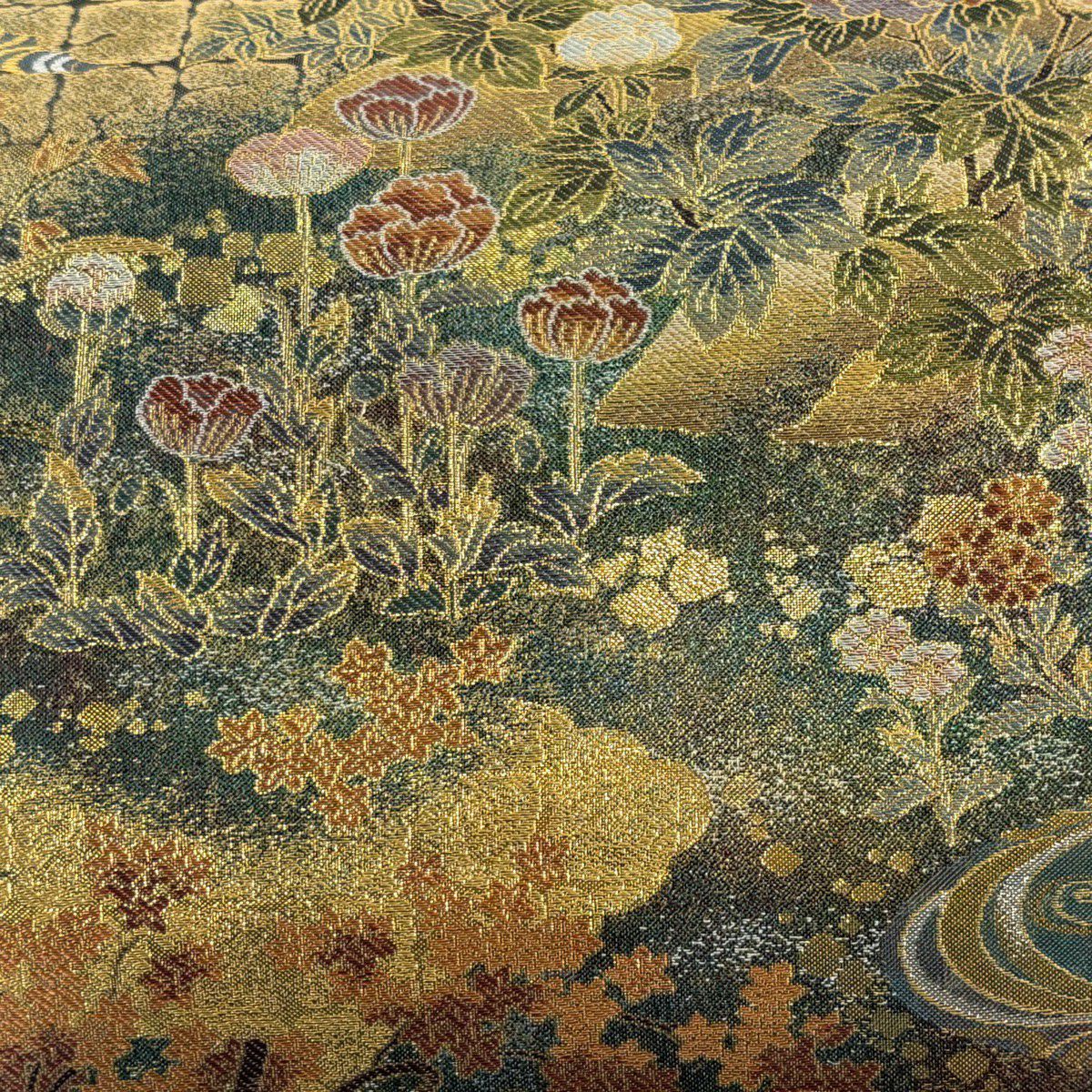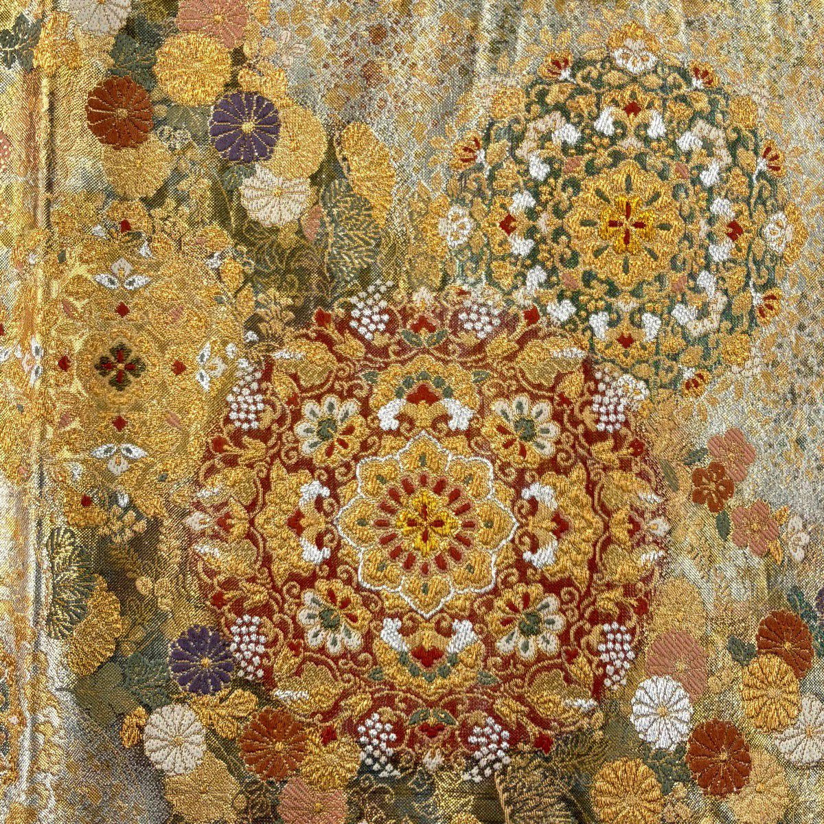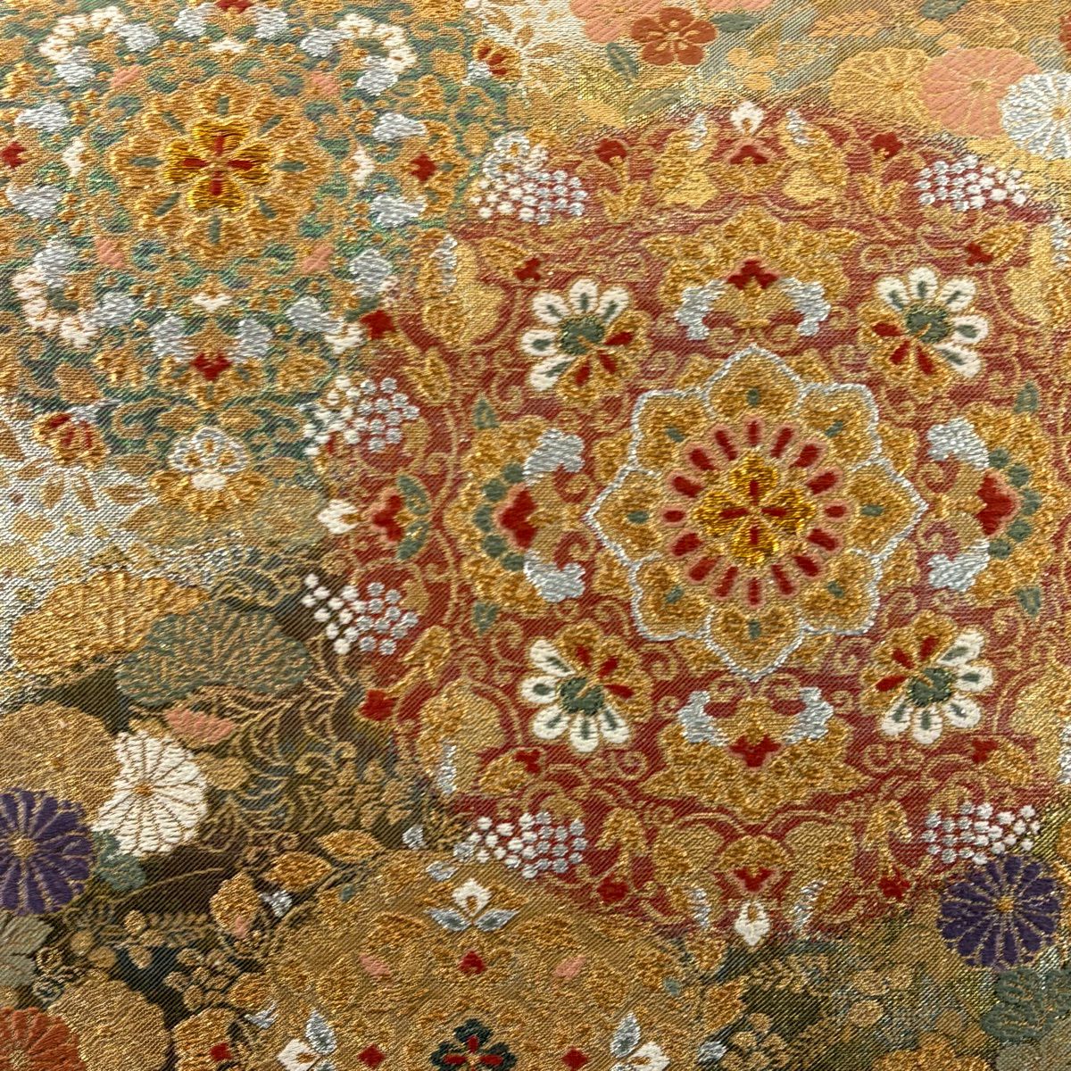 30%OFF 袋帯 秀品 菊 芝 金彩 黄土色 全通 正絹 K30