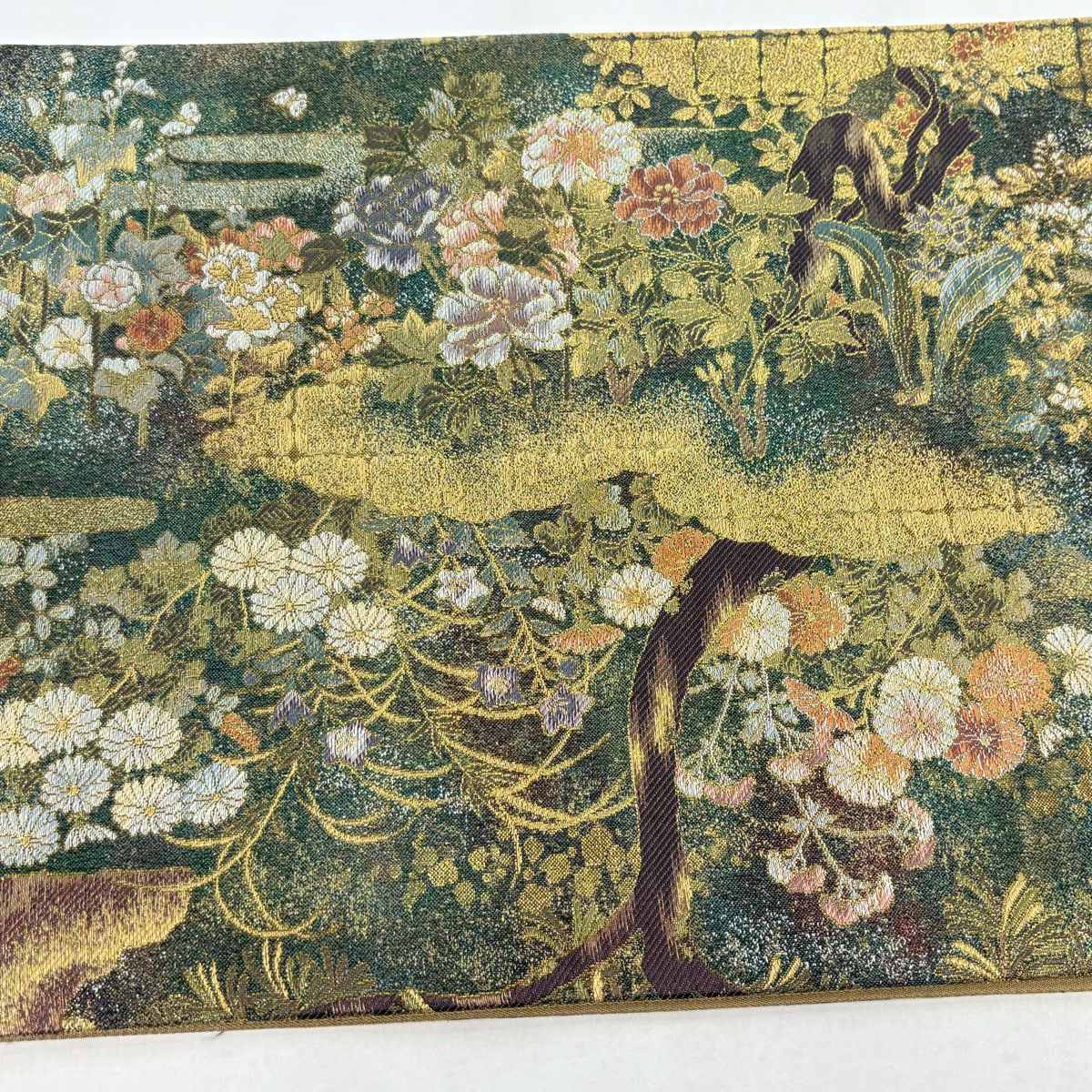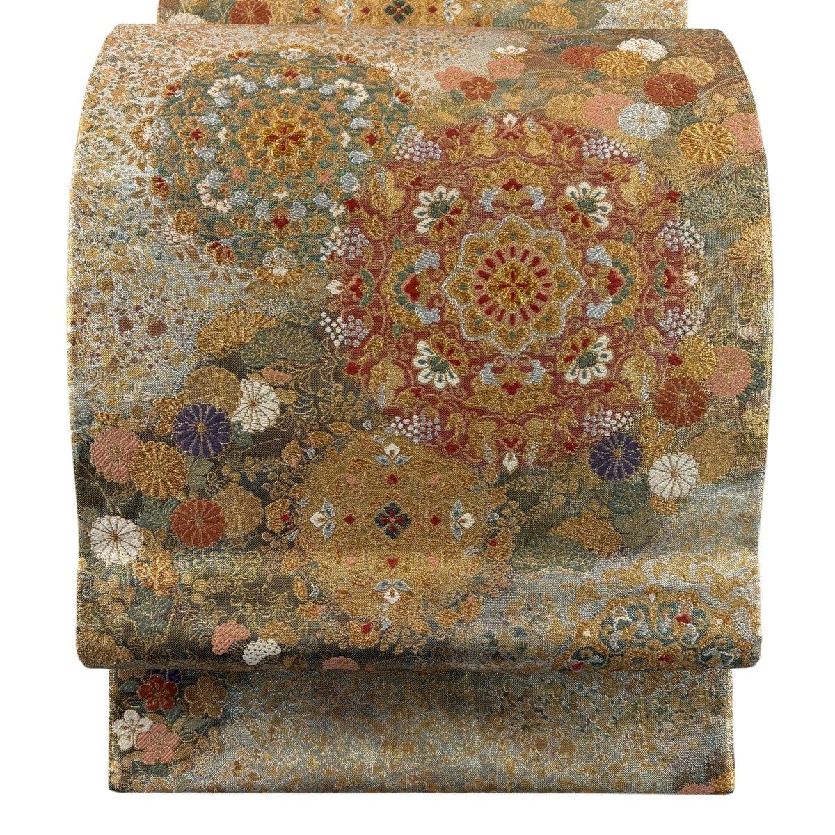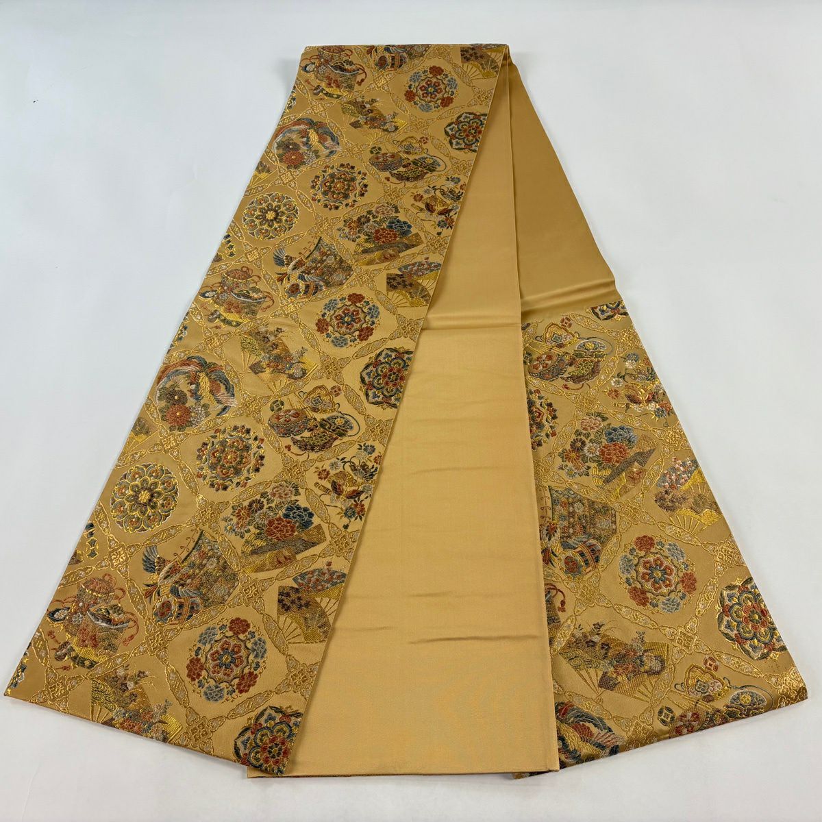 30%OFF 袋帯 秀品 菊 芝 金彩 黄土色 全通 正絹 K30