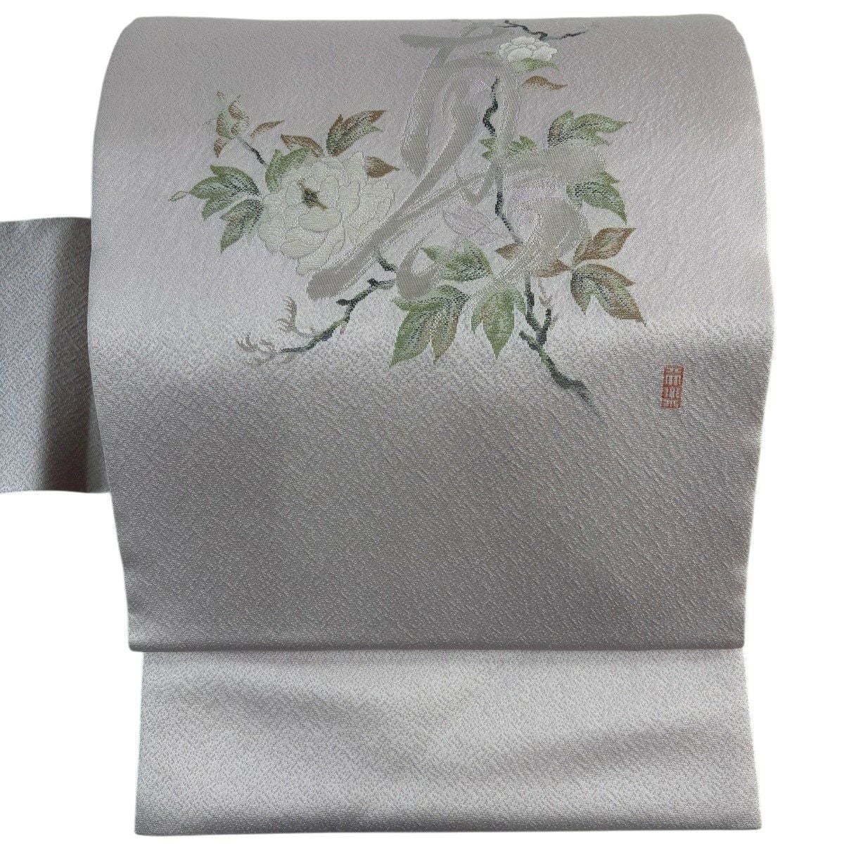 30%OFF 【美品】 名古屋帯 秀品 草花 青灰色 正絹 K30