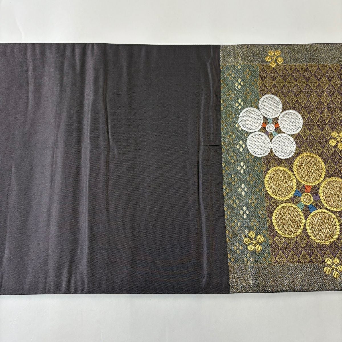 30%OFF 袋帯 秀品 華文 金糸 箔 灰色 六通 正絹 K30