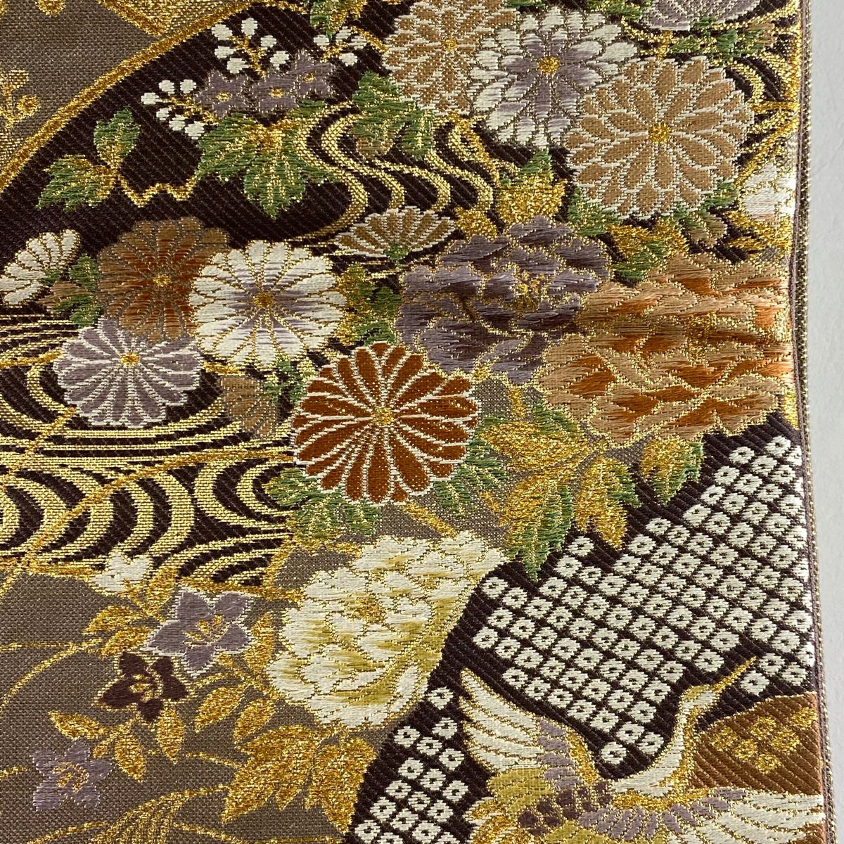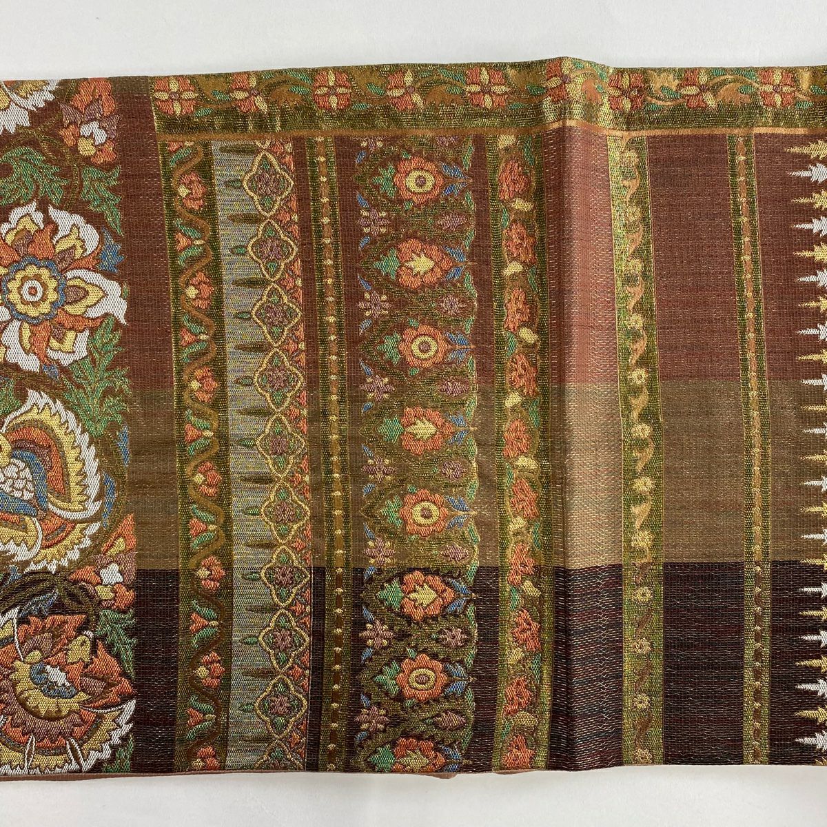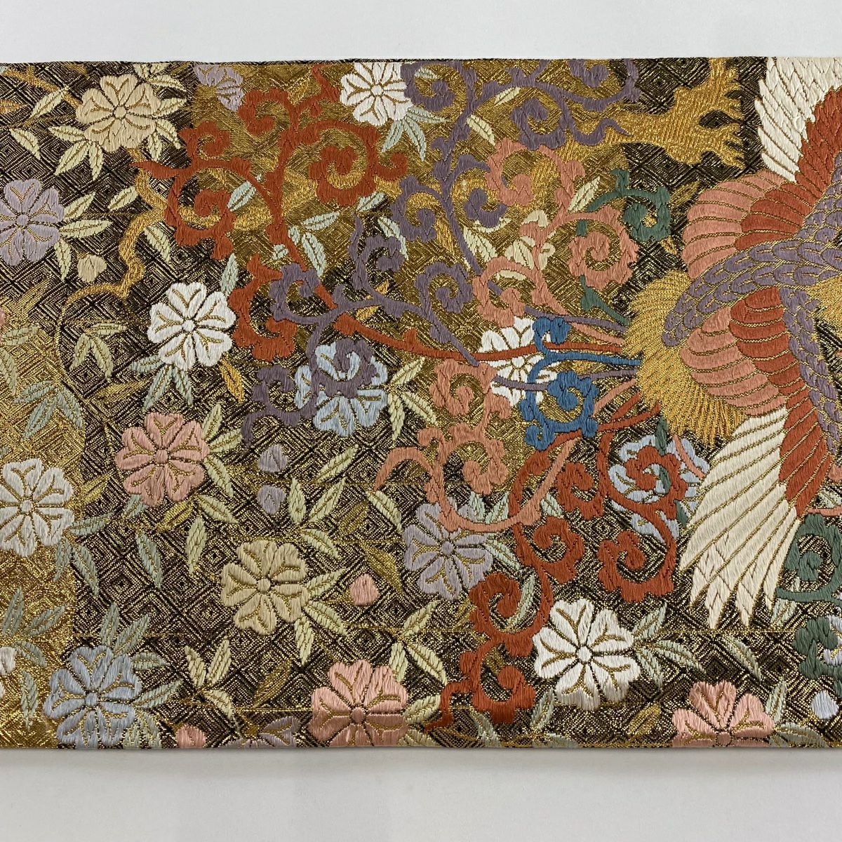 【在庫一掃】 袋帯 秀品 鴛鴦 華文 金糸 唐織 茶色 六通 正絹
