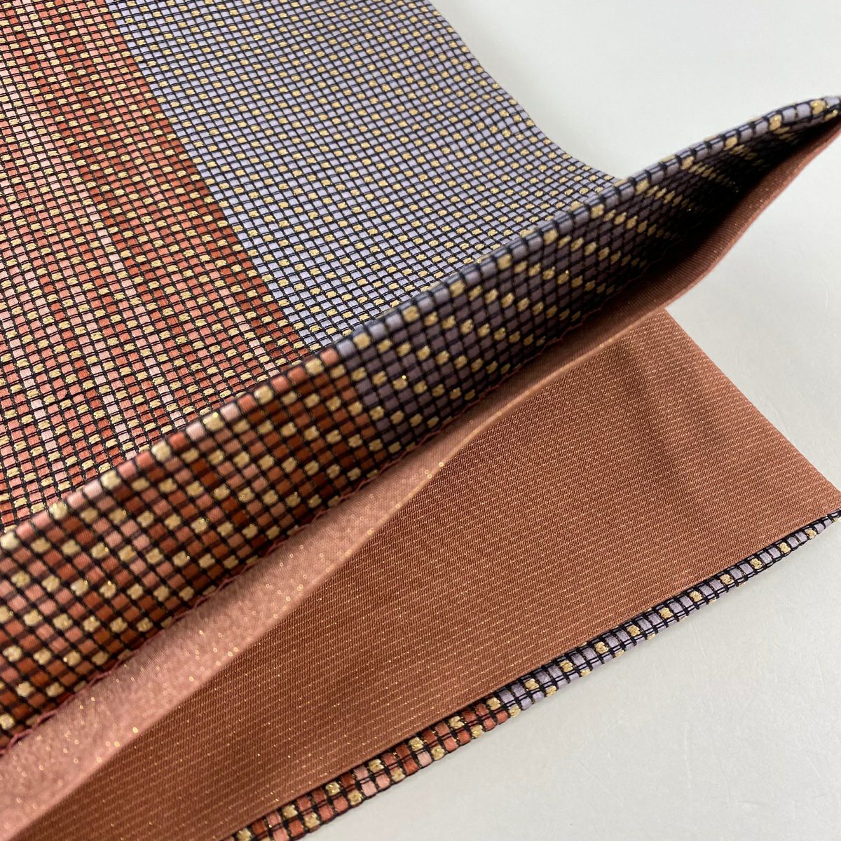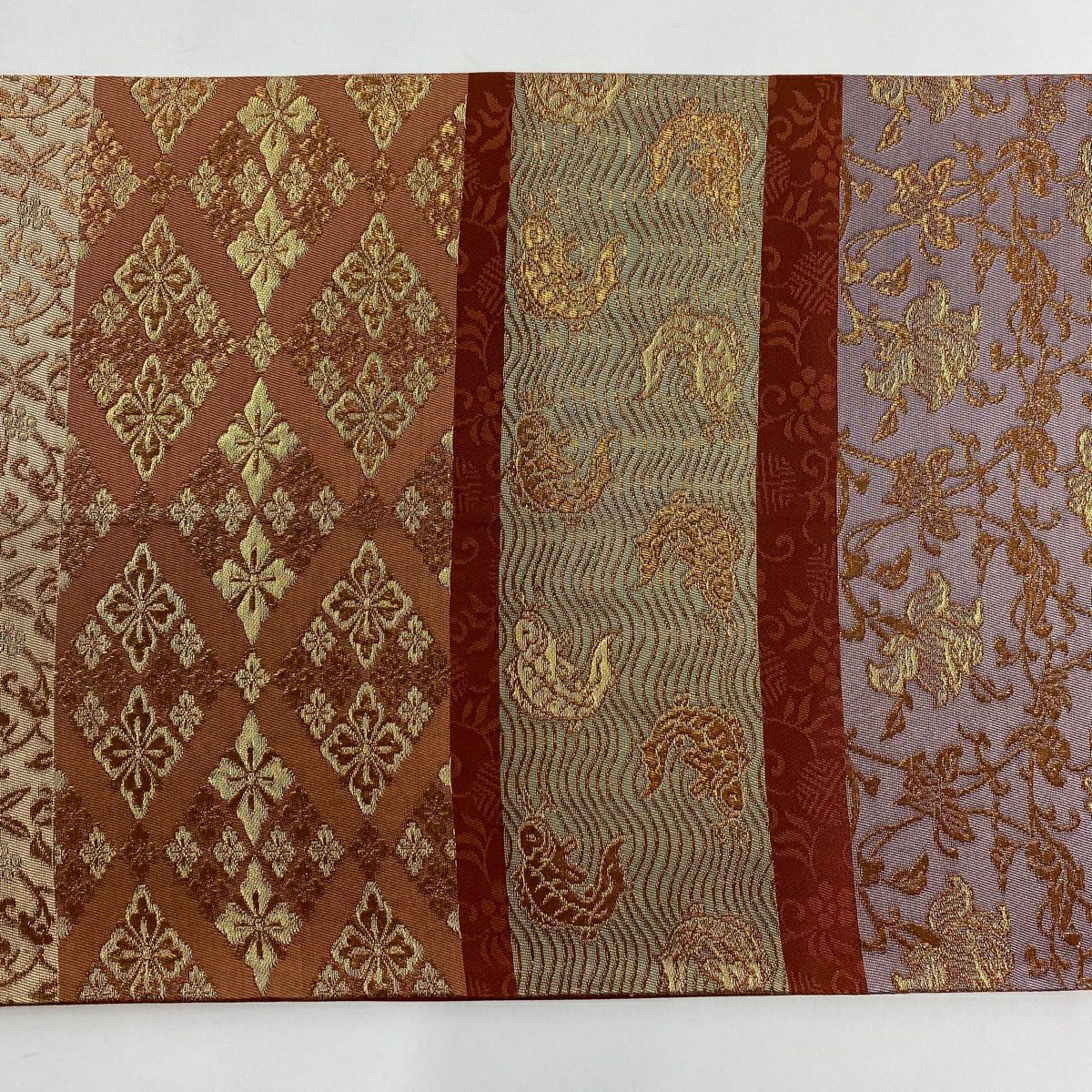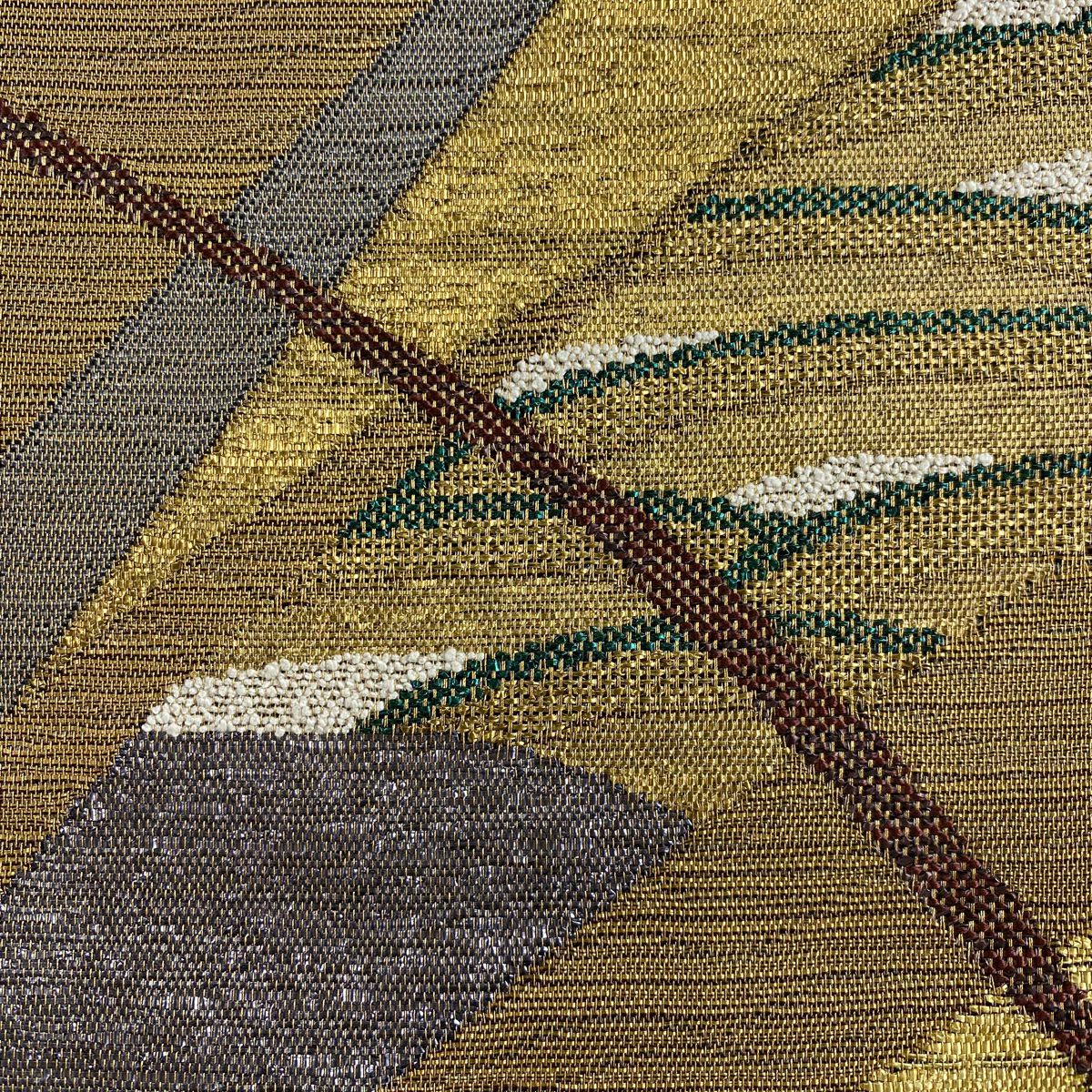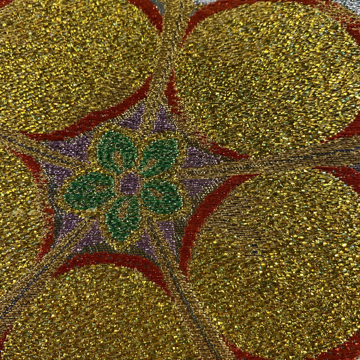 【在庫一掃】 【美品】 袋帯 秀品 幾何学 金糸 箔 金茶 六通 正絹