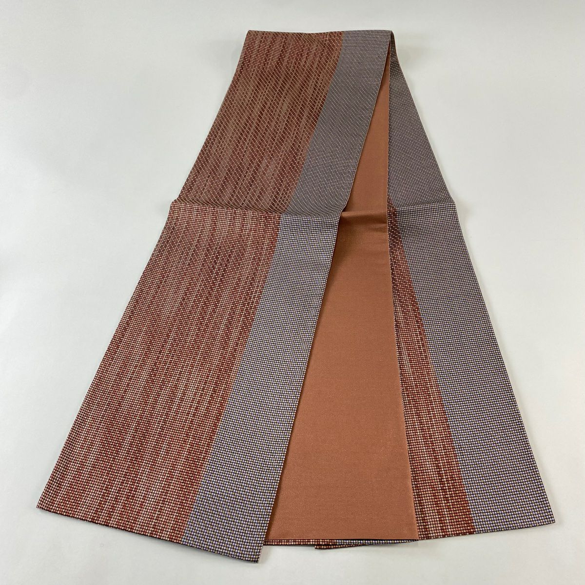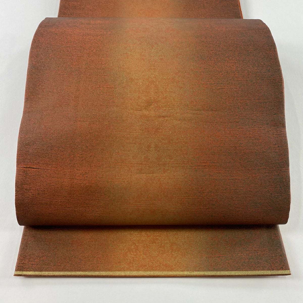 【在庫一掃】 袋帯 秀品 紬地 関西仕立て 金彩 赤茶 全通 正絹