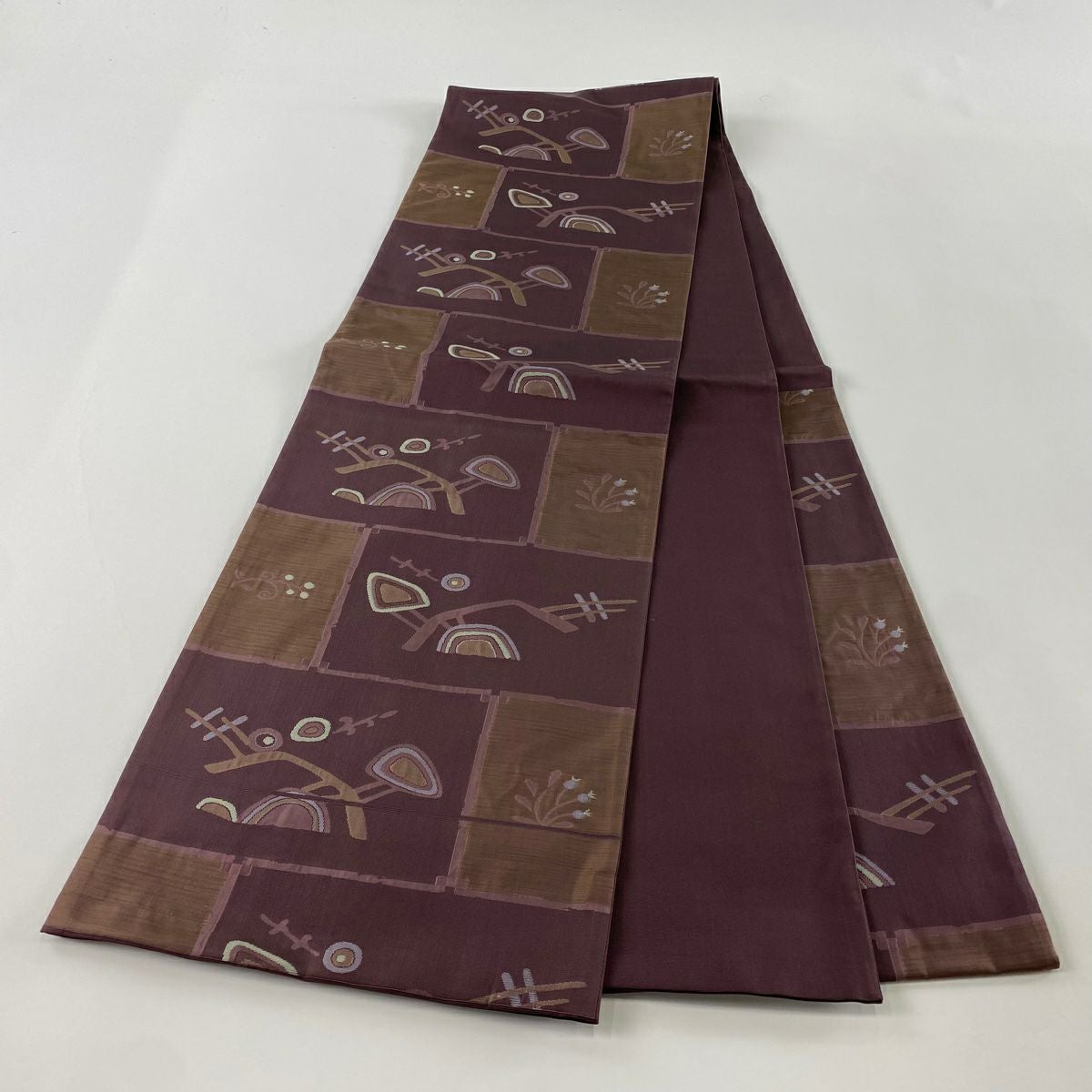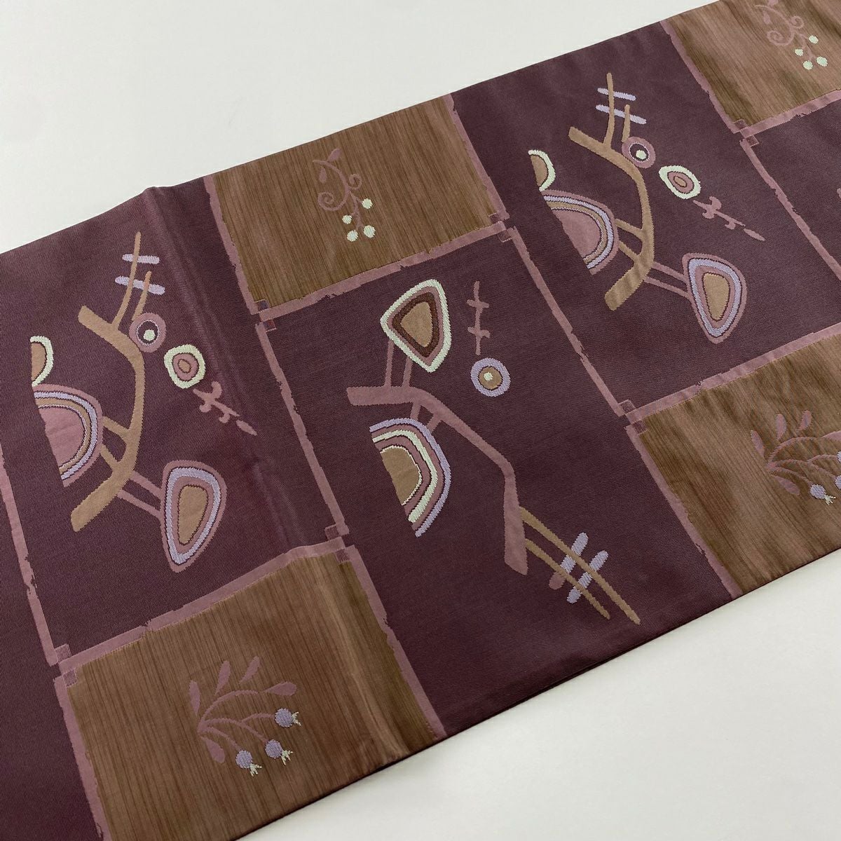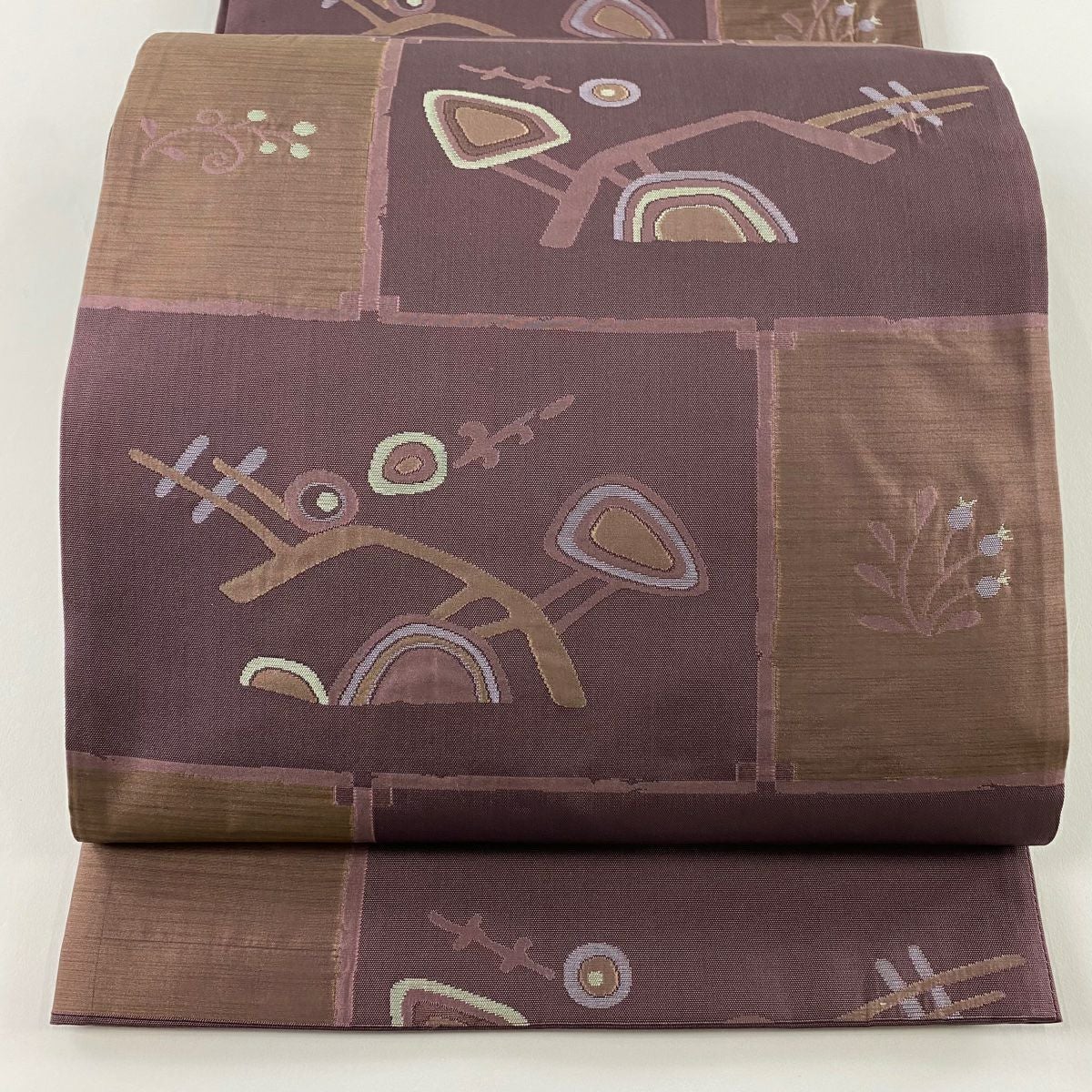 【在庫一掃】 【美品】 袋帯 秀品 草花 幾何学模様 紫 六通 正絹