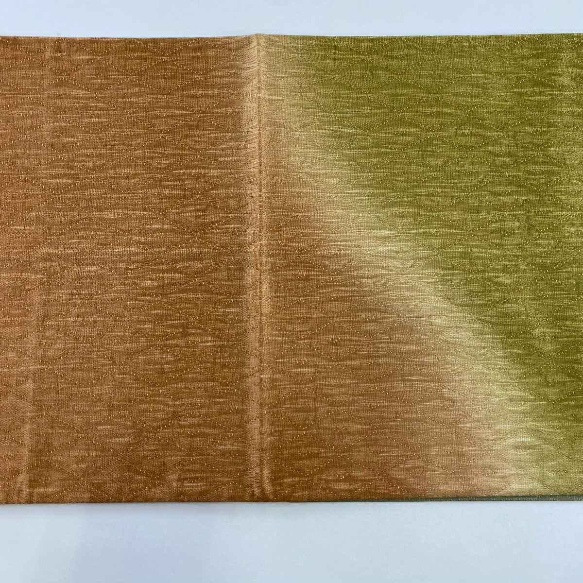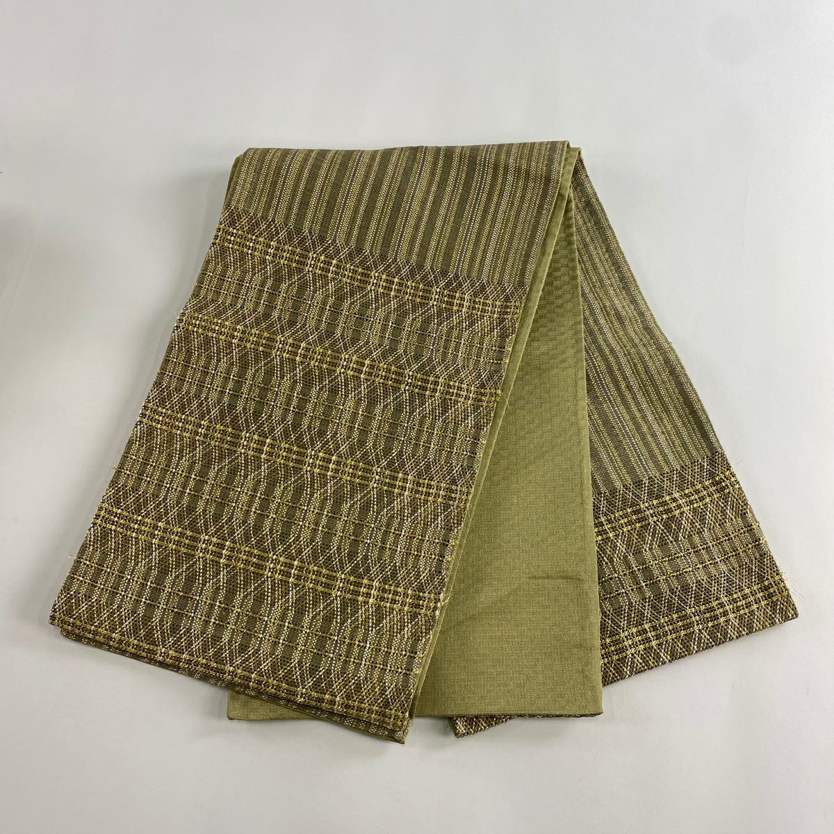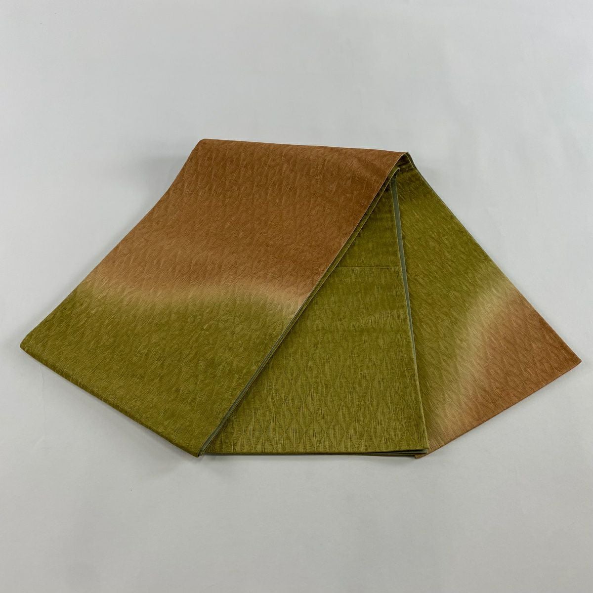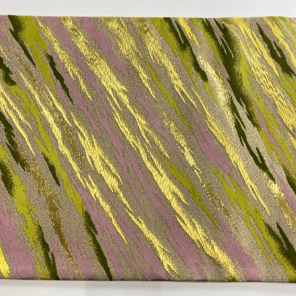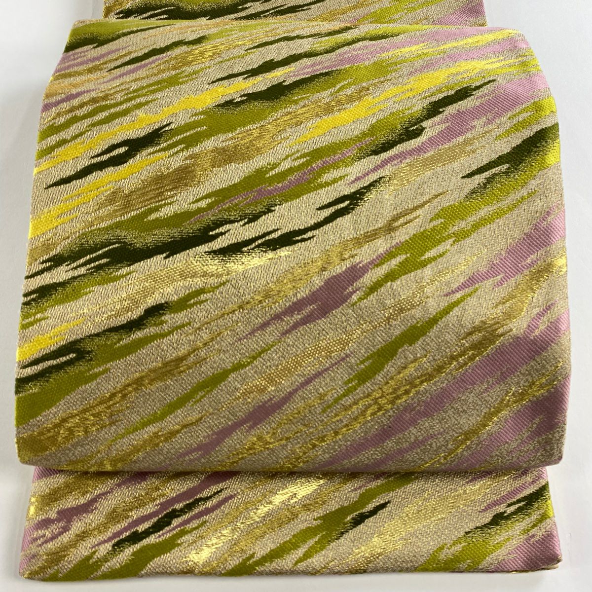 【在庫一掃】 【美品】 袋帯 秀品 霞 金糸 箔 茶緑色 六通 正絹