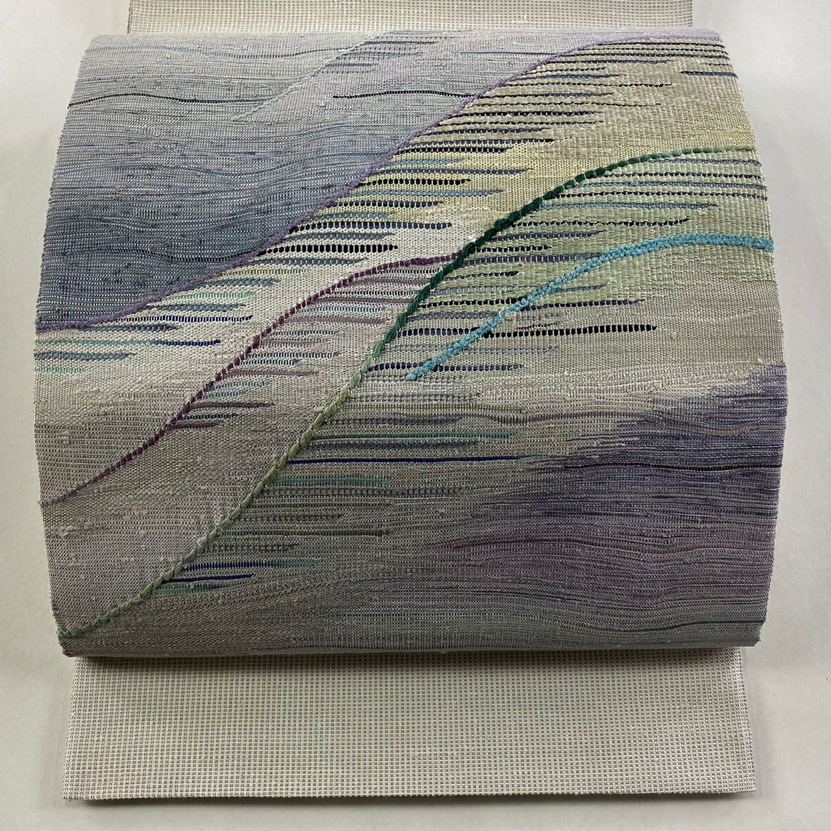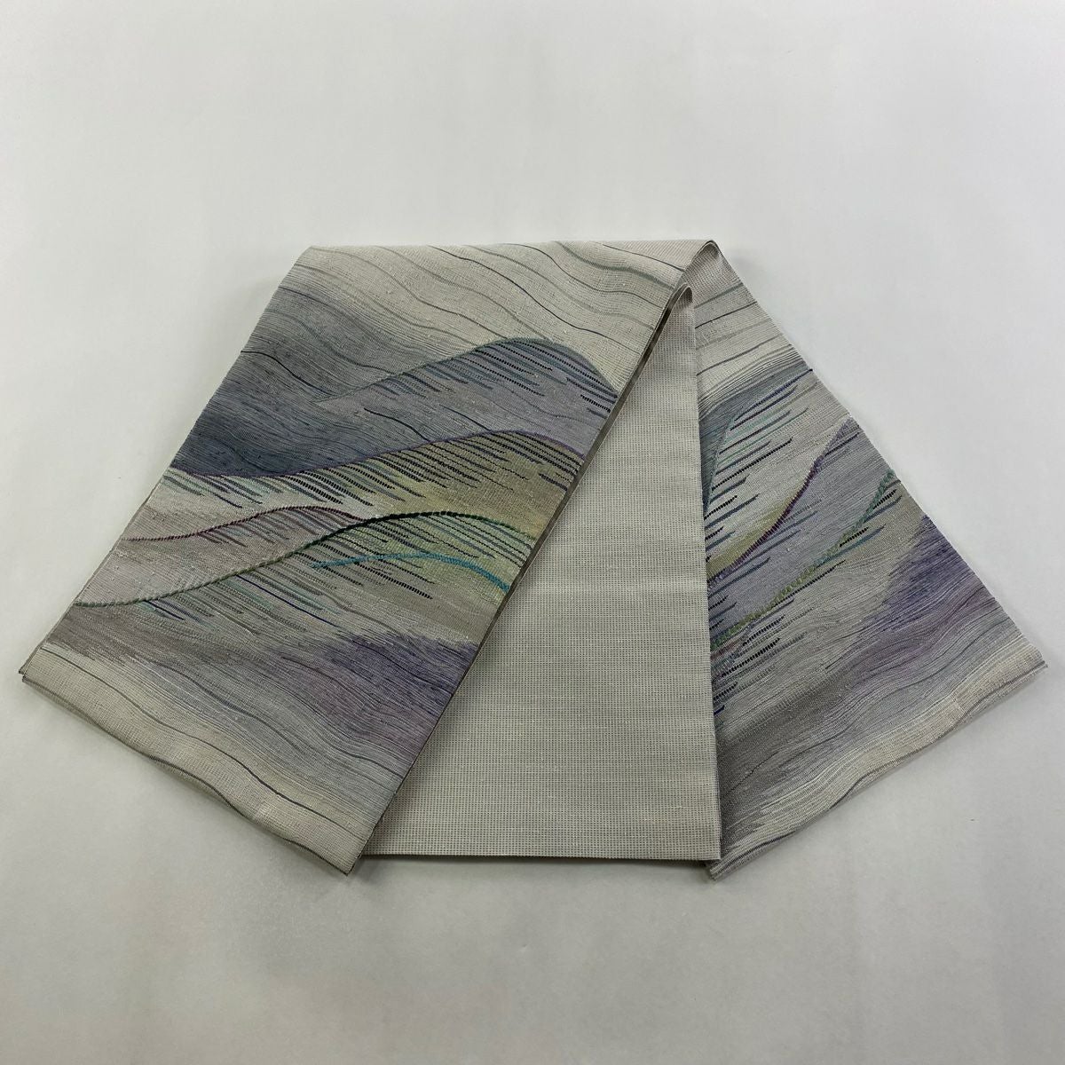 【在庫一掃】 【美品】 袋帯 秀品 山並み 霞 薄紫 お太鼓柄 正絹